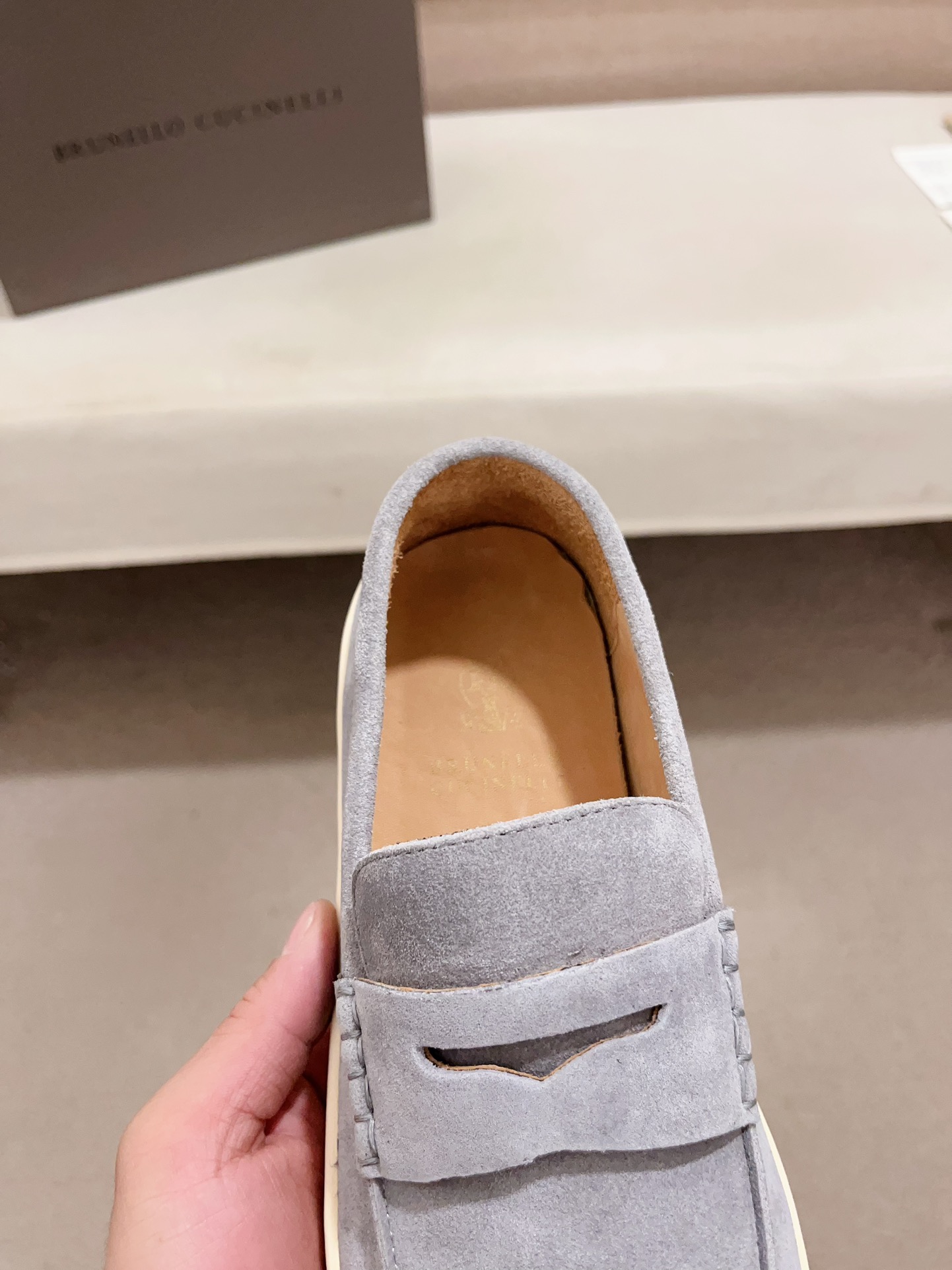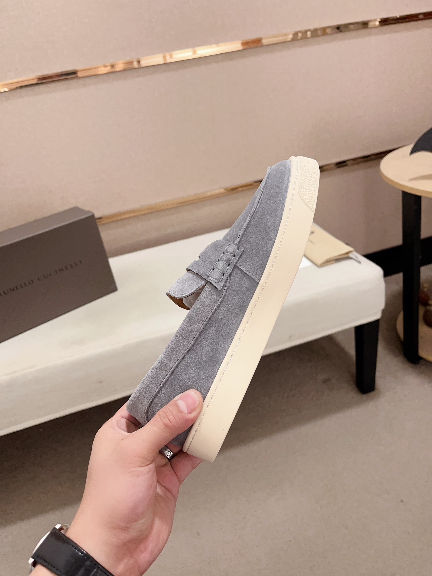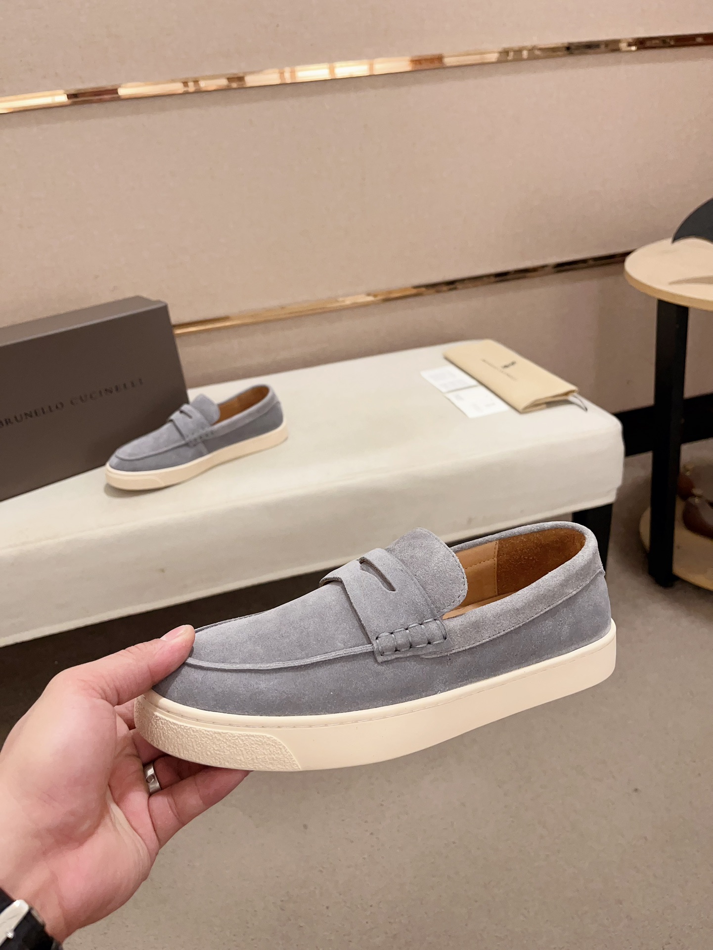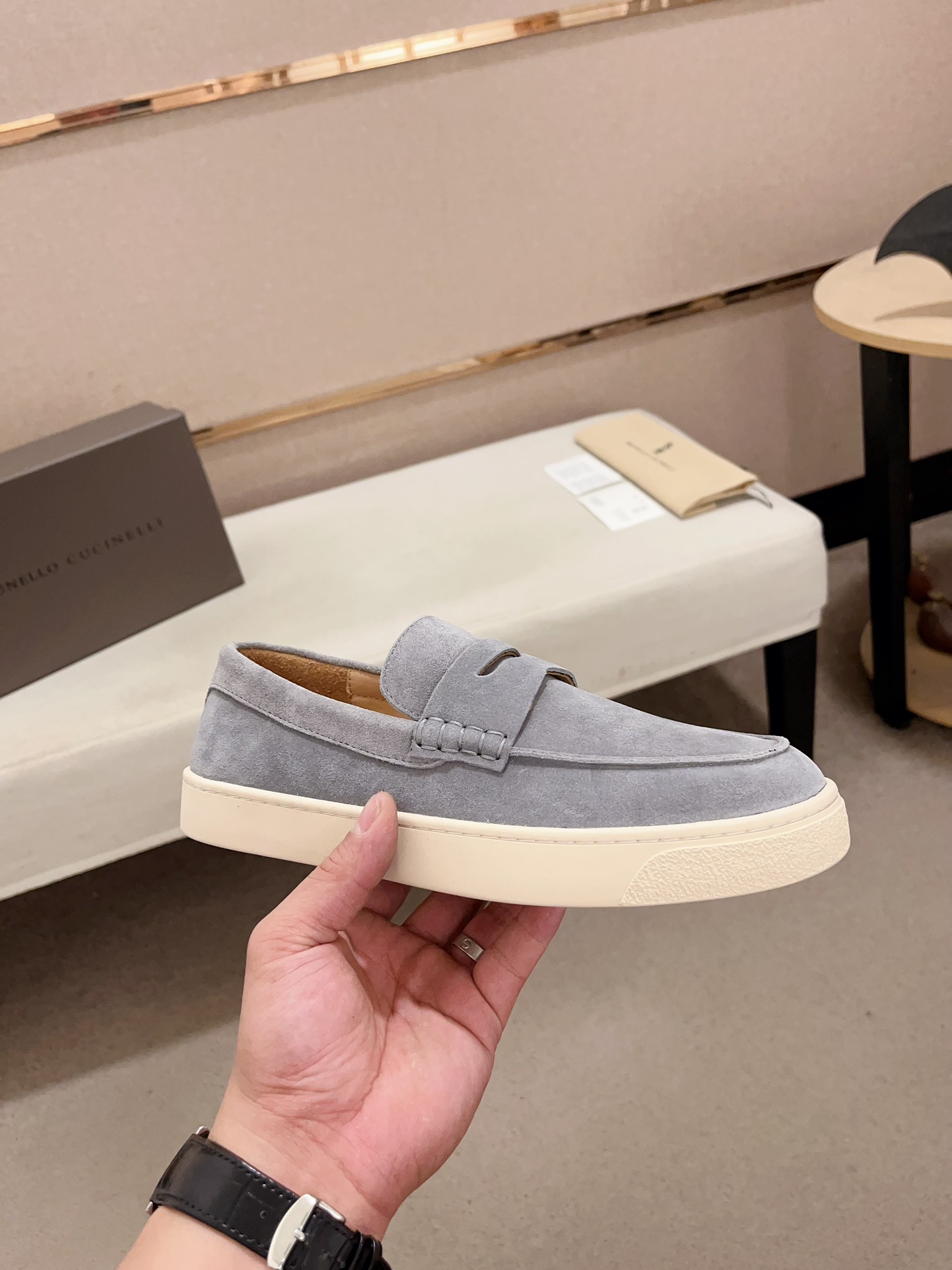 This shoes is AAAAA 1:1 quality (superb). Materials used are identical to the original ones. Brunello Cucinelli trademark marks are indistinguishable to the authentic. Photos take by actual shoes, what you receive will be 100% same with our photos.