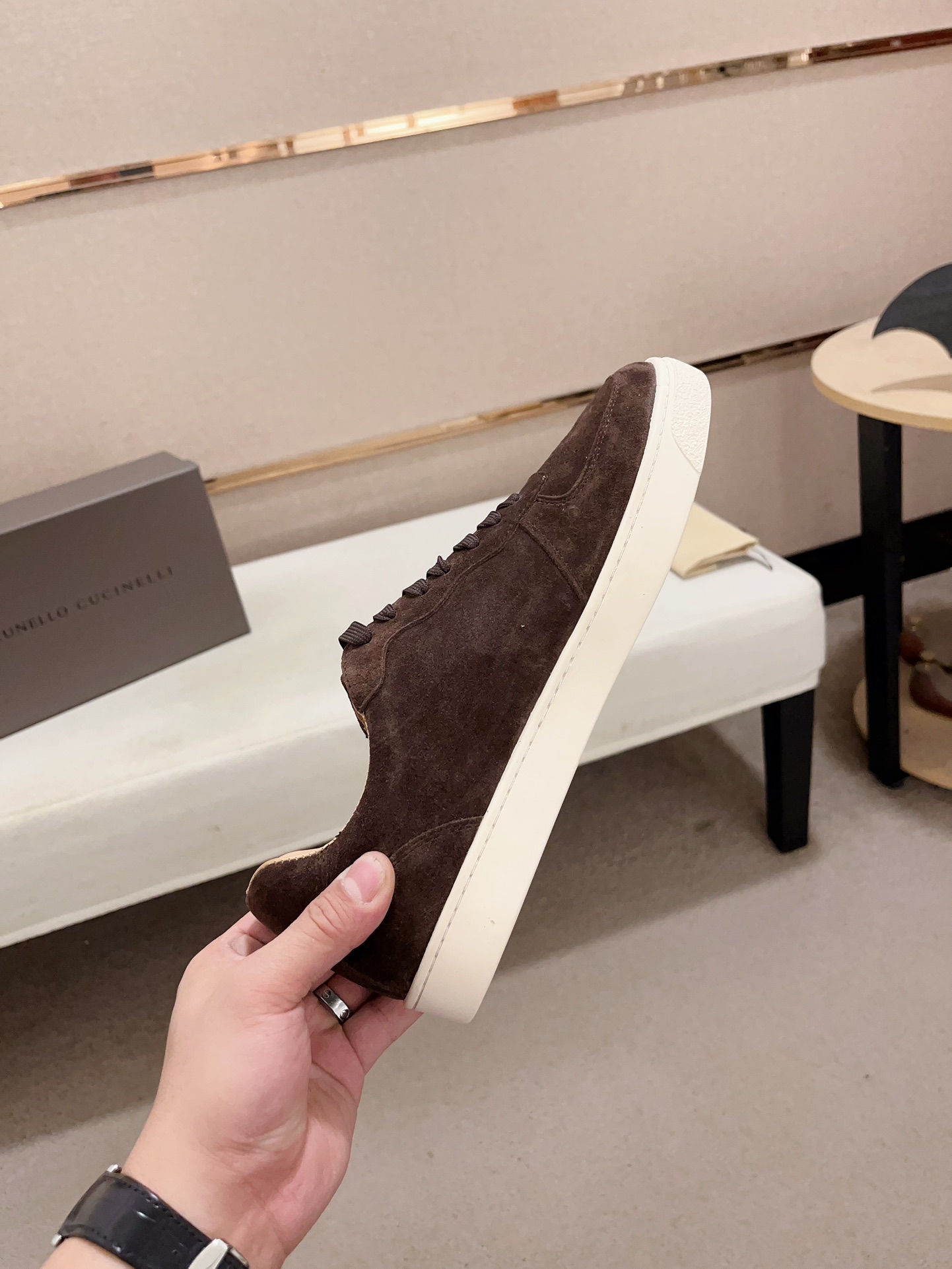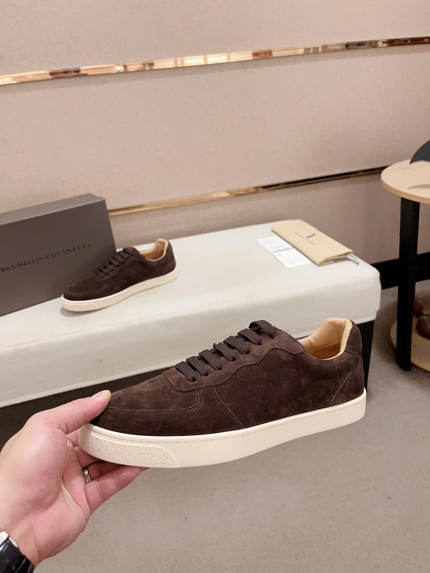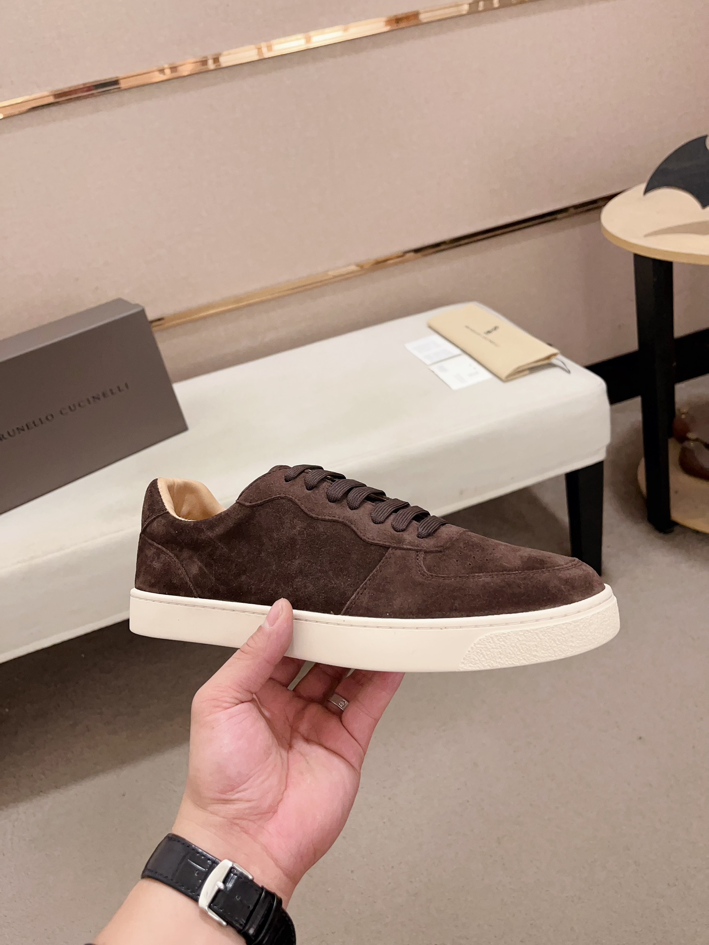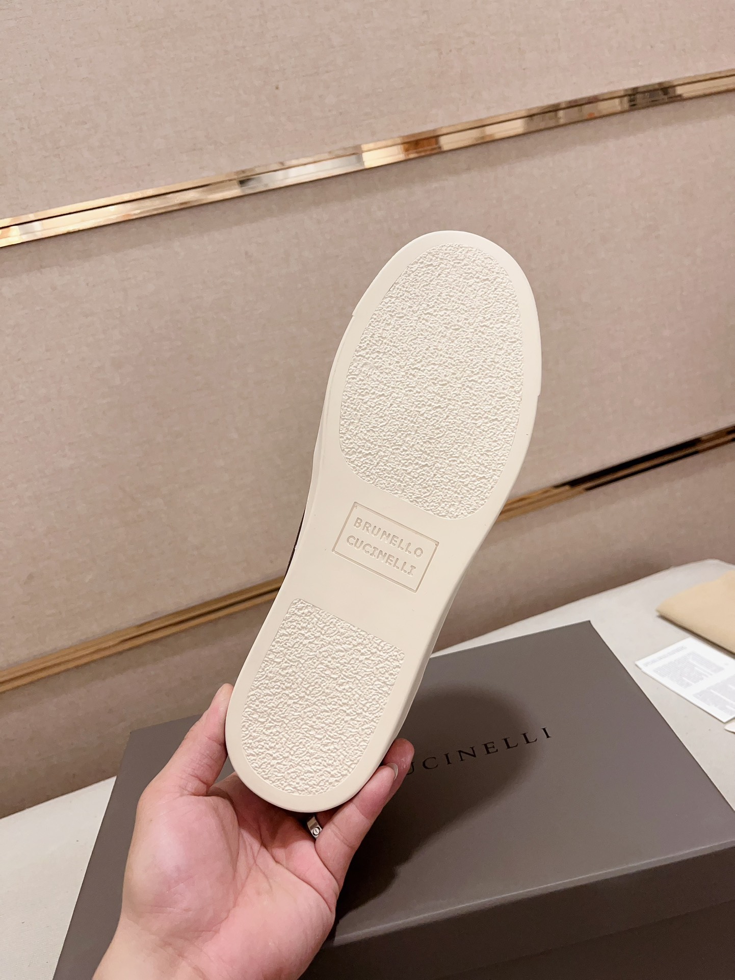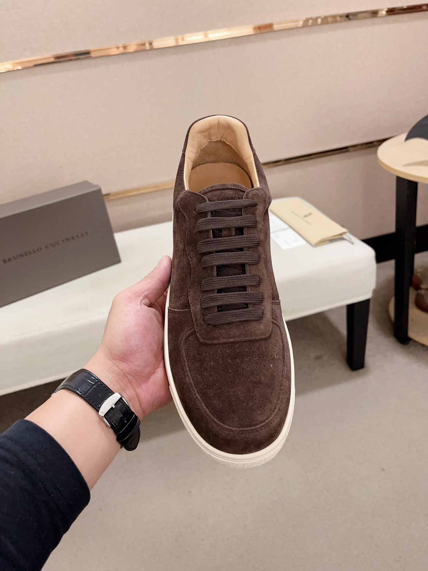 This shoes is AAAAA 1:1 quality (superb). Materials used are identical to the original ones. Brunello Cucinelli trademark marks are indistinguishable to the authentic. Photos take by actual shoes, what you receive will be 100% same with our photos.