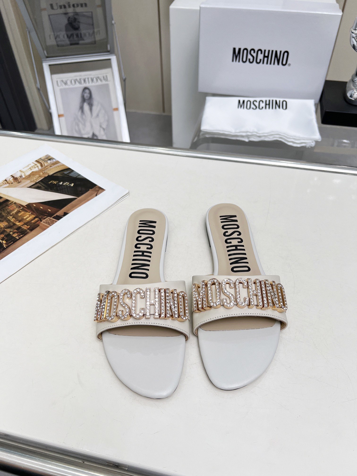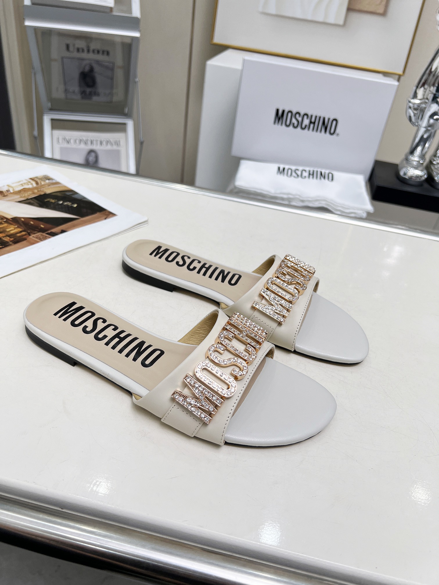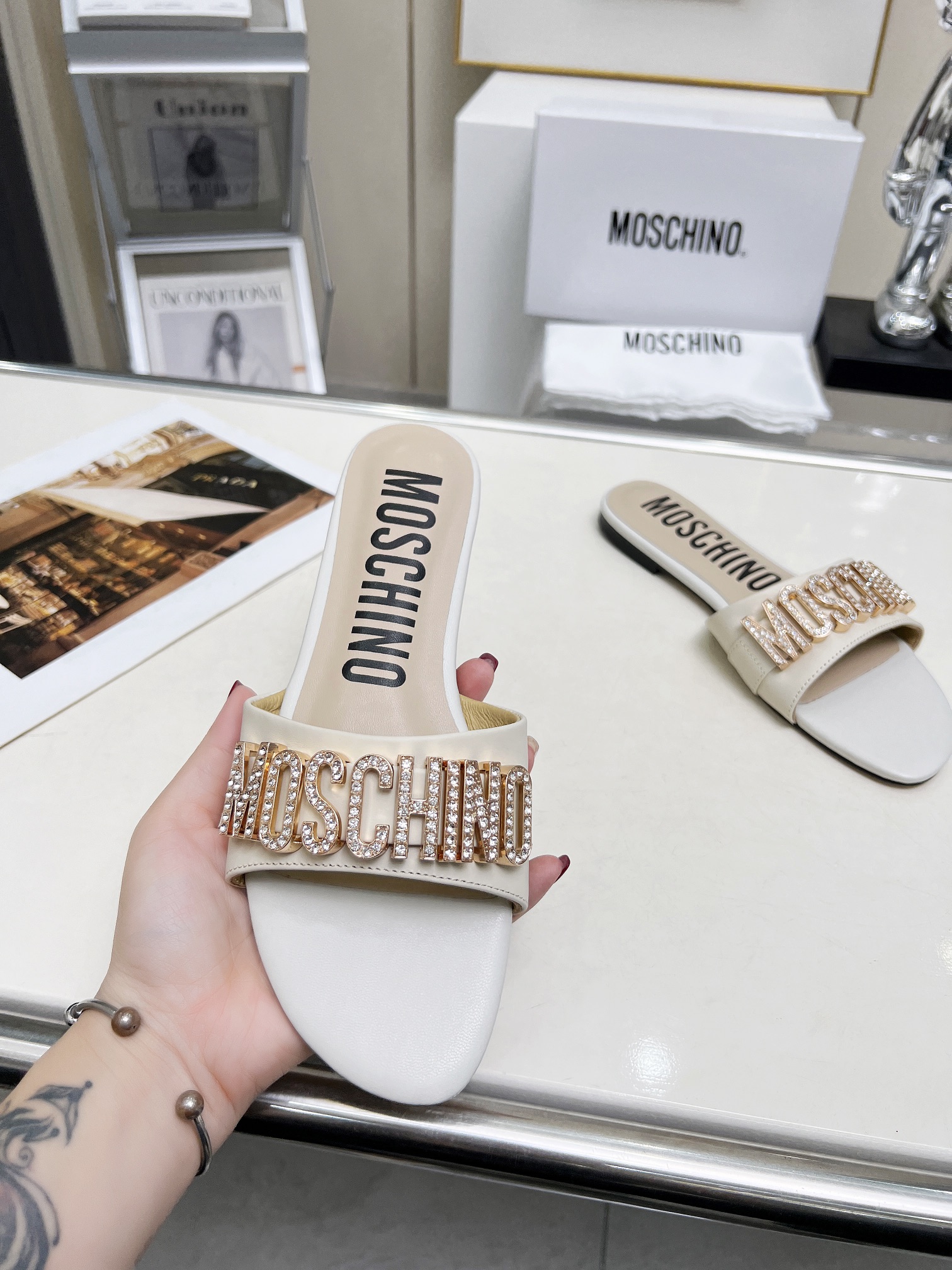 This shoes is AAAAA 1:1 quality (superb). Materials used are identical to the original ones. Moschino trademark marks are indistinguishable to the authentic. Photos take by actual shoes, what you receive will be 100% same with our photos.