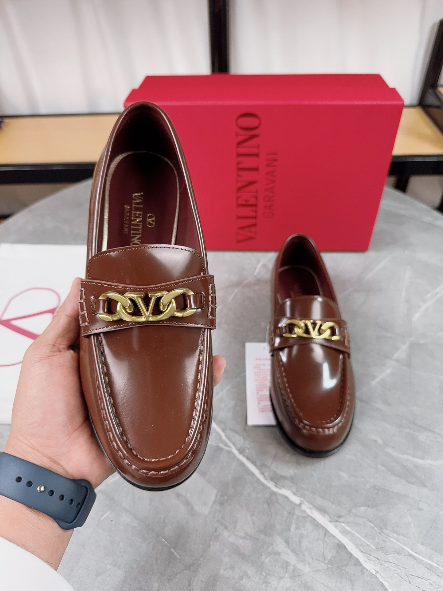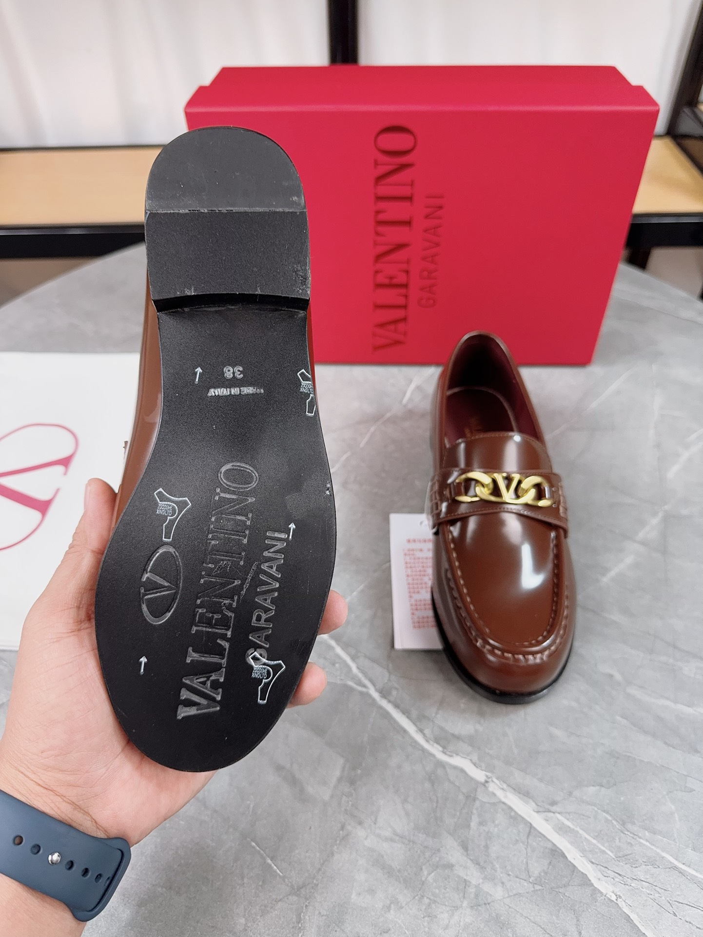 This shoes is AAAAA 1:1 quality (superb). Materials used are identical to the original ones. Valentino trademark marks are indistinguishable to the authentic. Photos take by actual shoes, what you receive will be 100% same with our photos.