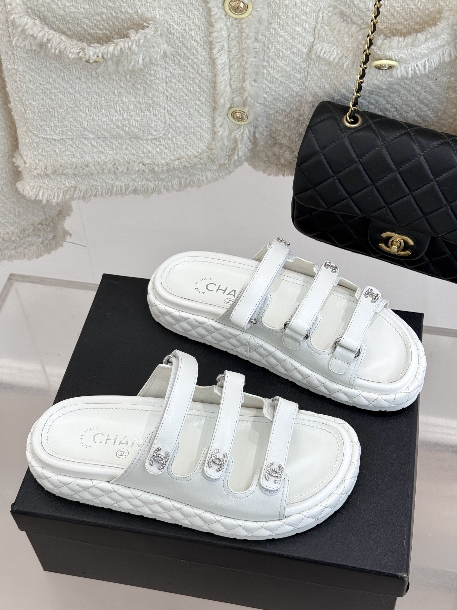 This shoes is AAAAA 1:1 quality (superb). Materials used are identical to the original ones. Chanel trademark marks are indistinguishable to the authentic. Photos take by actual shoes, what you receive will be 100% same with our photos.