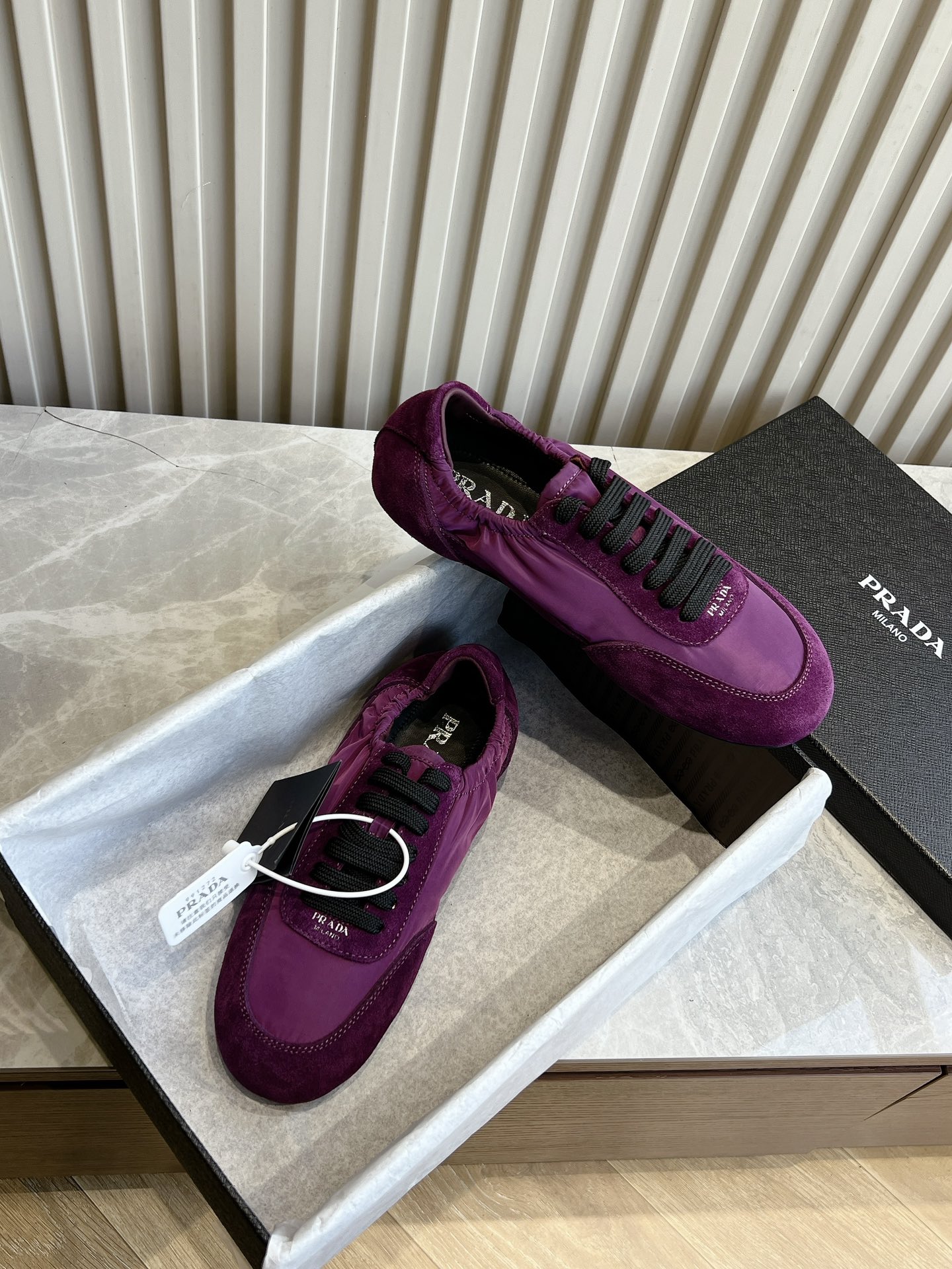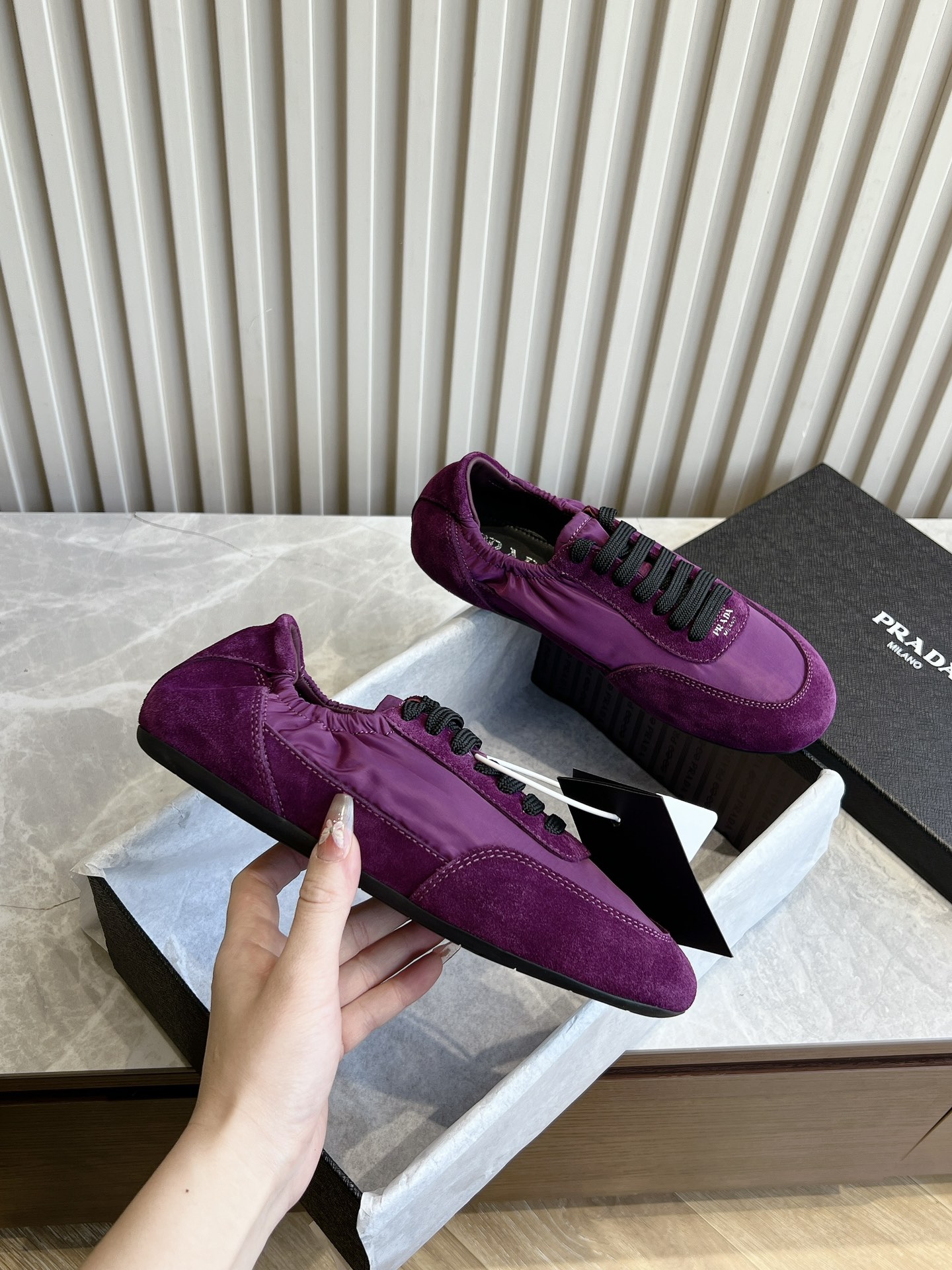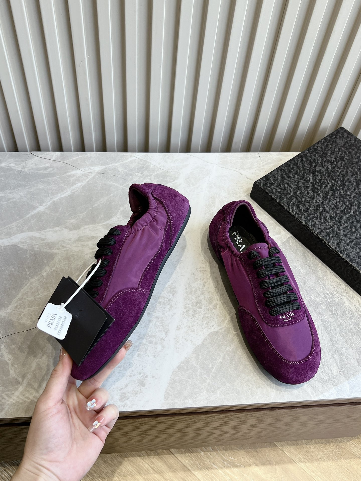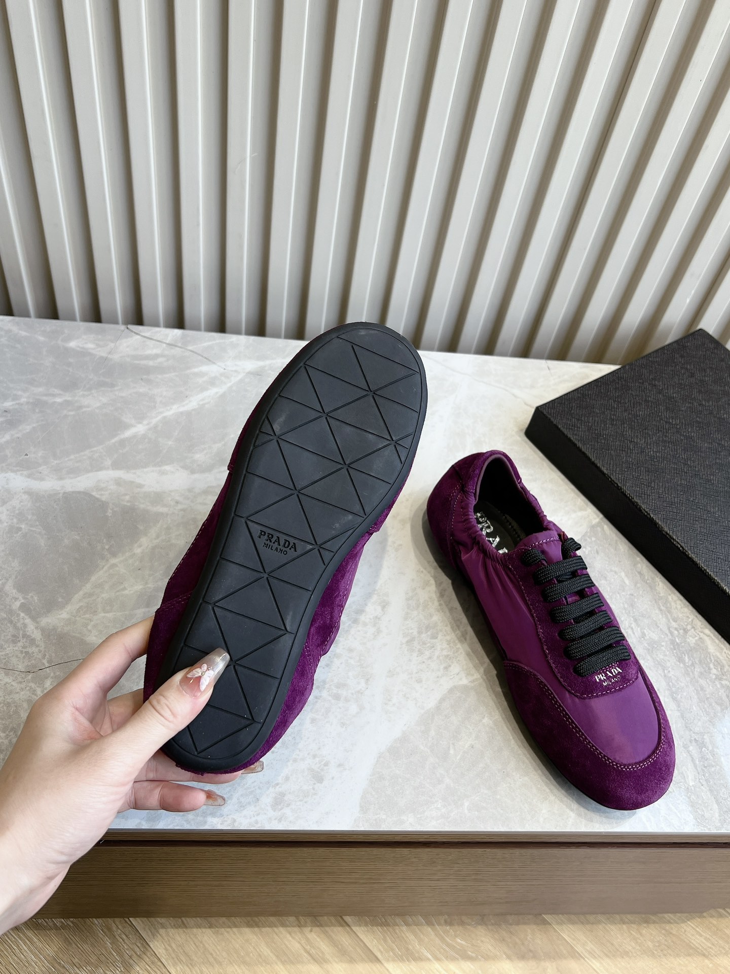 This shoes is AAAAA 1:1 quality (superb). Materials used are identical to the original ones. Prada trademark marks are indistinguishable to the authentic. Photos take by actual shoes, what you receive will be 100% same with our photos.