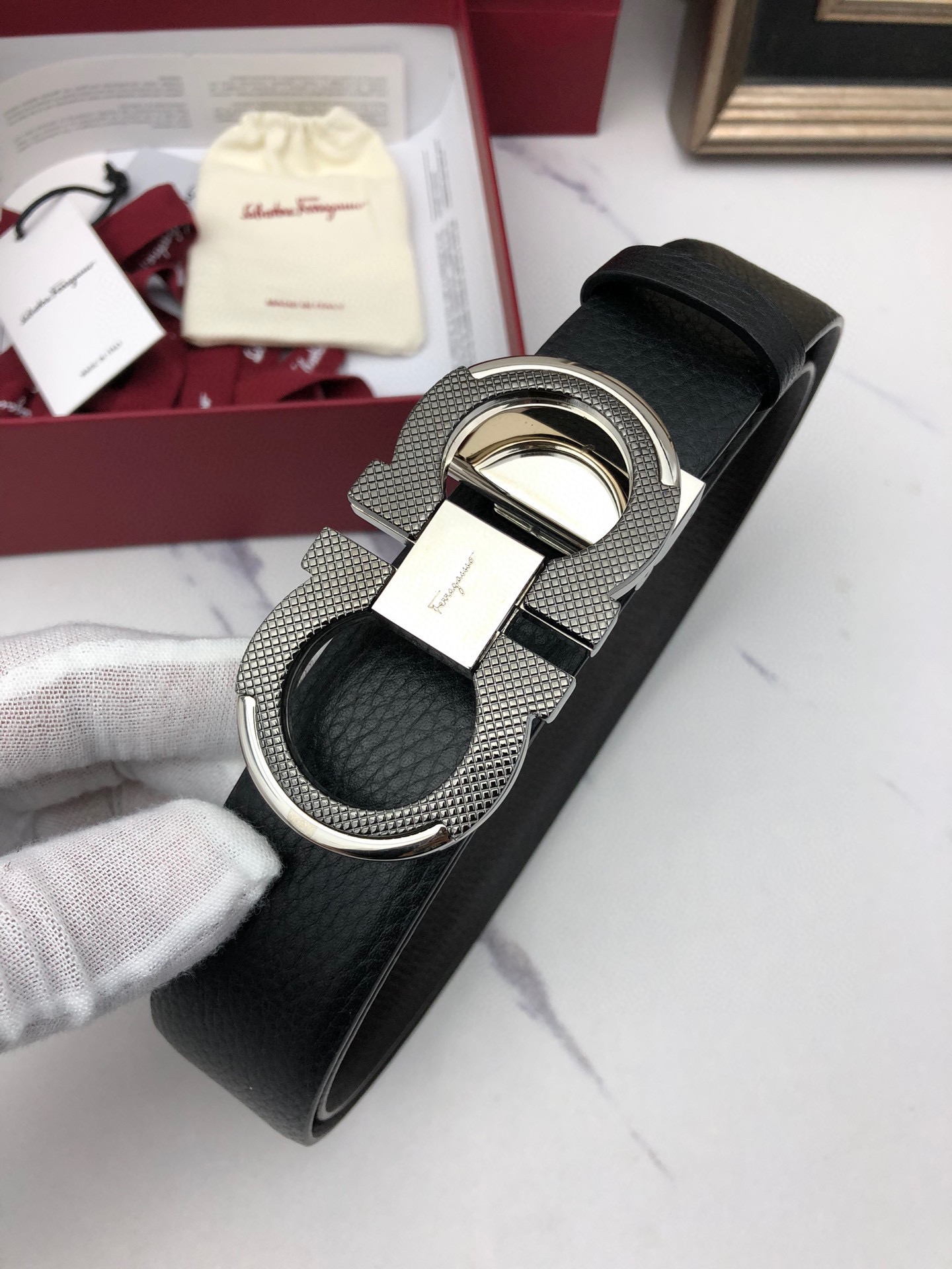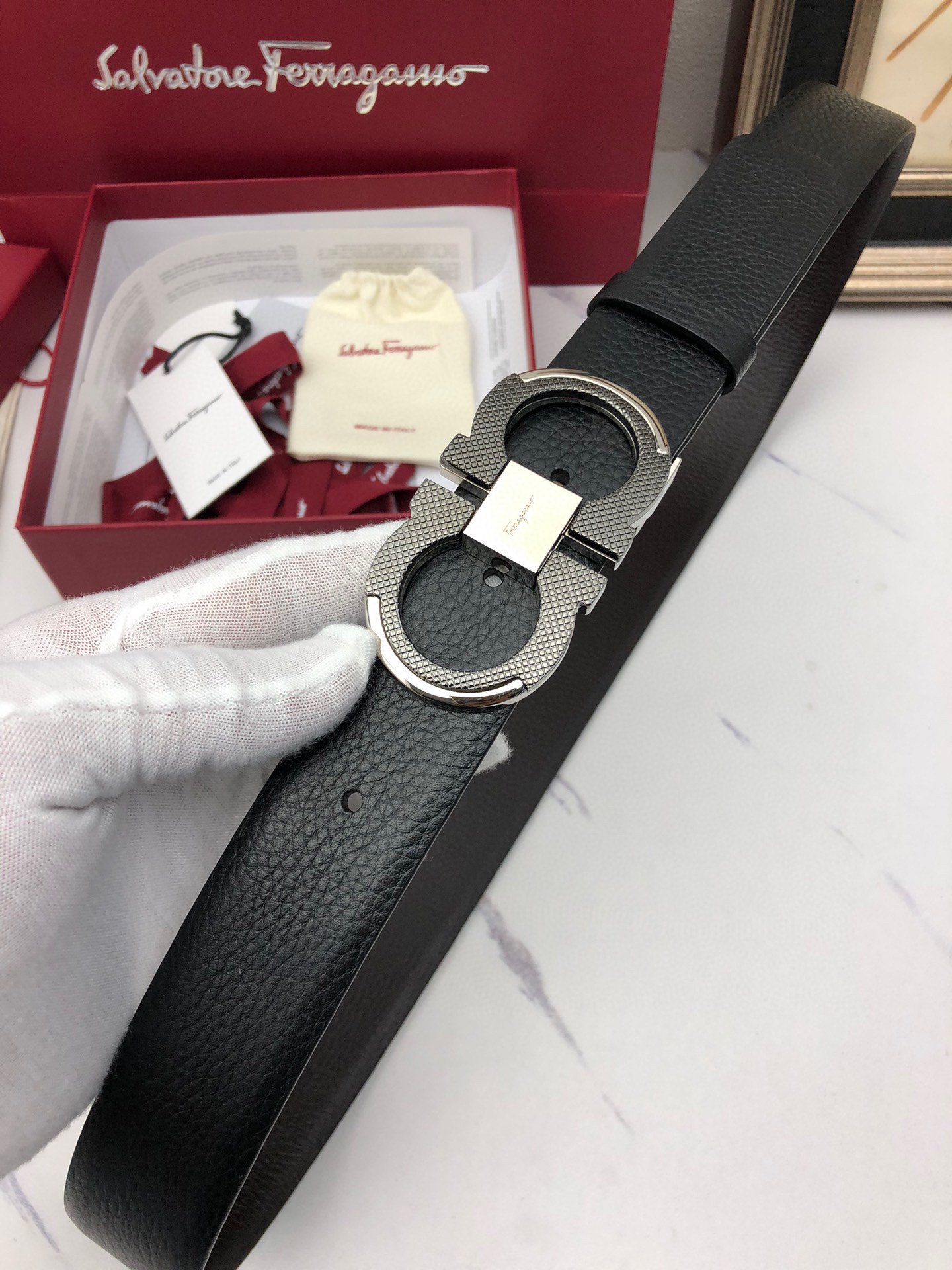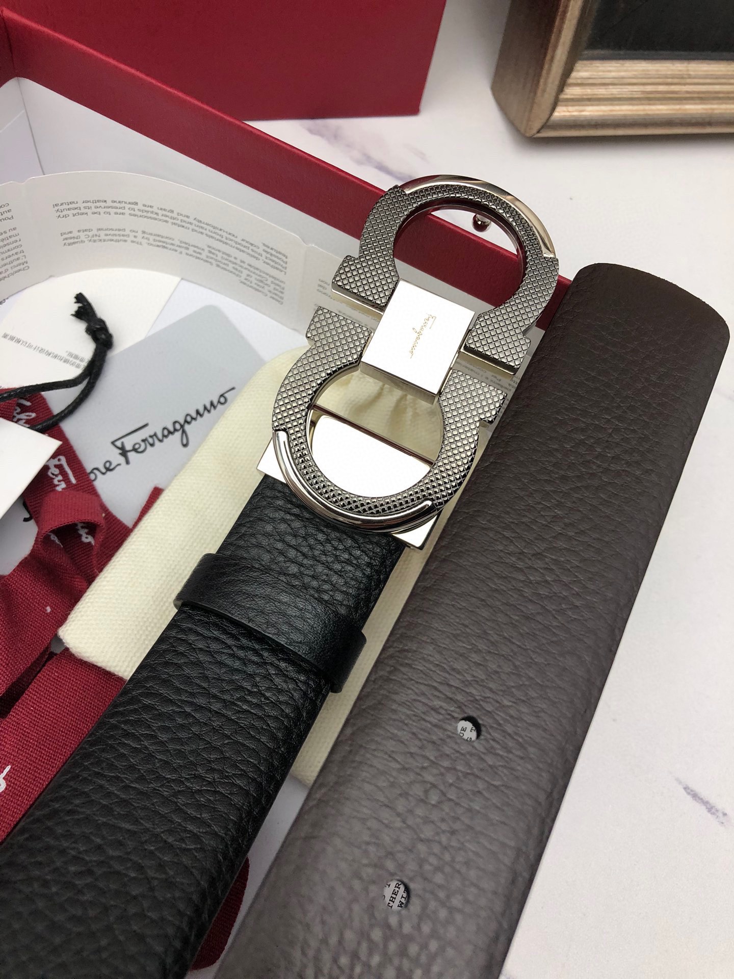 This belt is AAAAA 1:1 quality (superb). Materials used are identical to the original ones. Salvatore Ferragamo trademark marks are indistinguishable to the authentic. Photos take by actual belt, what you receive will be 100% same with our photos.