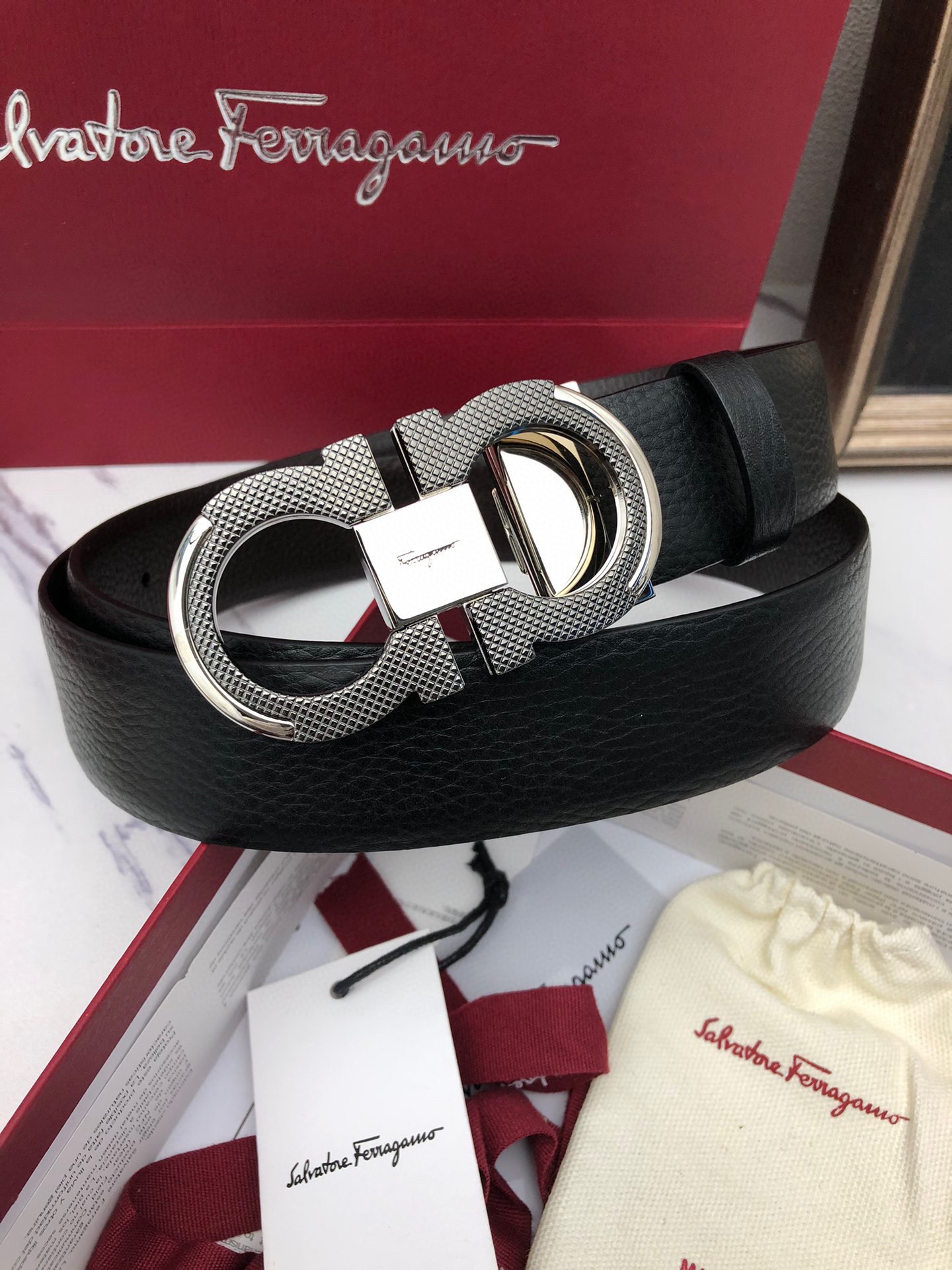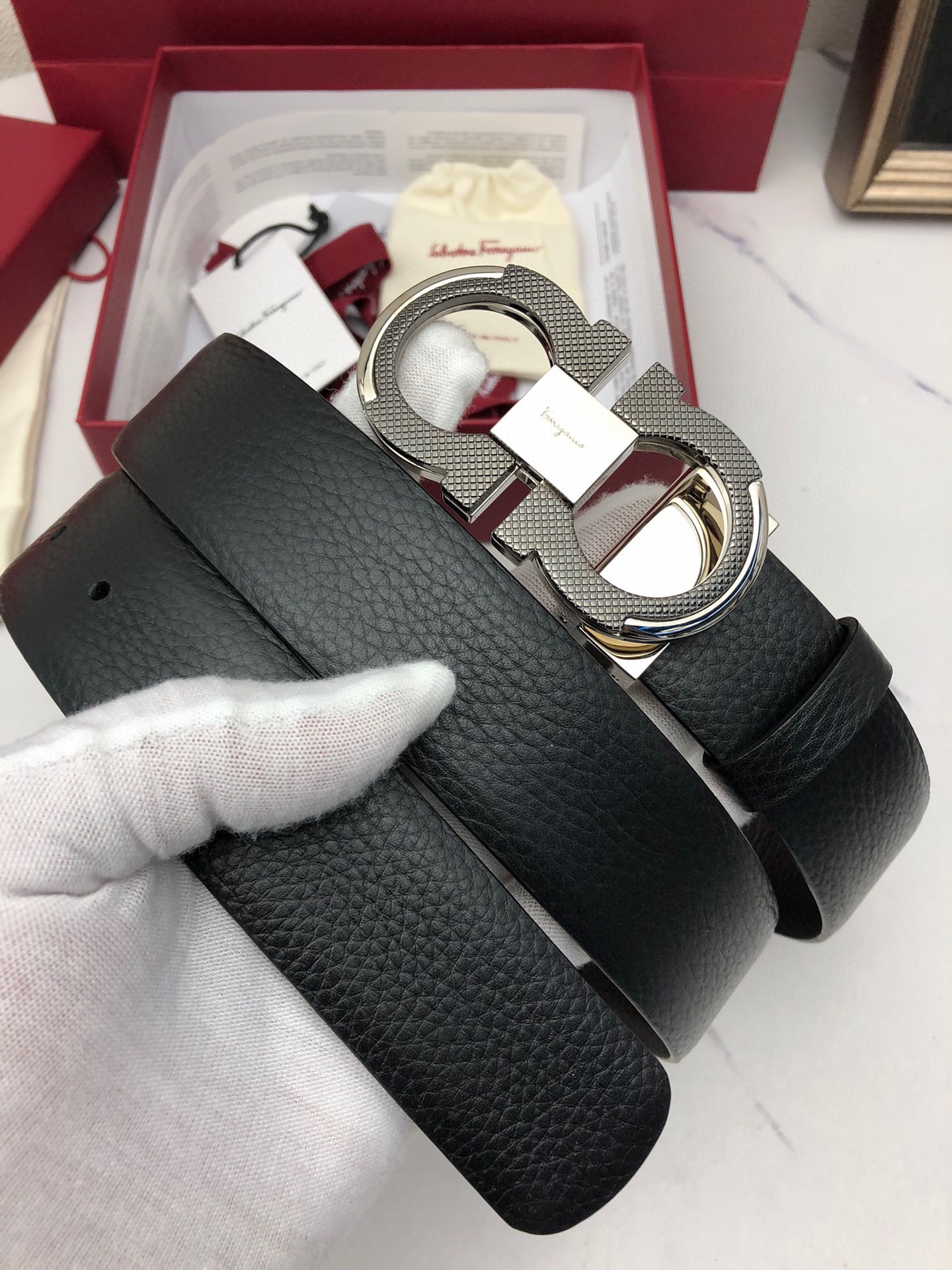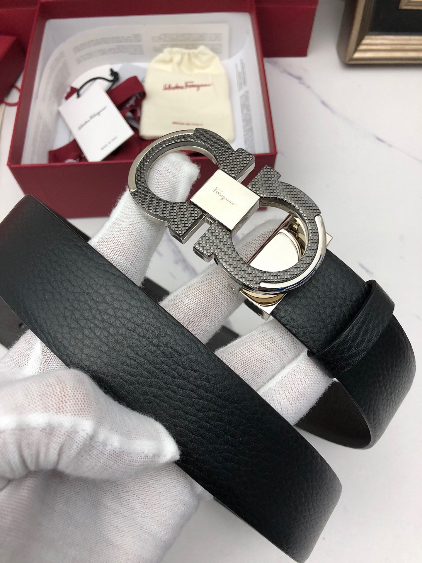 This belt is AAAAA 1:1 quality (superb). Materials used are identical to the original ones. Salvatore Ferragamo trademark marks are indistinguishable to the authentic. Photos take by actual belt, what you receive will be 100% same with our photos.