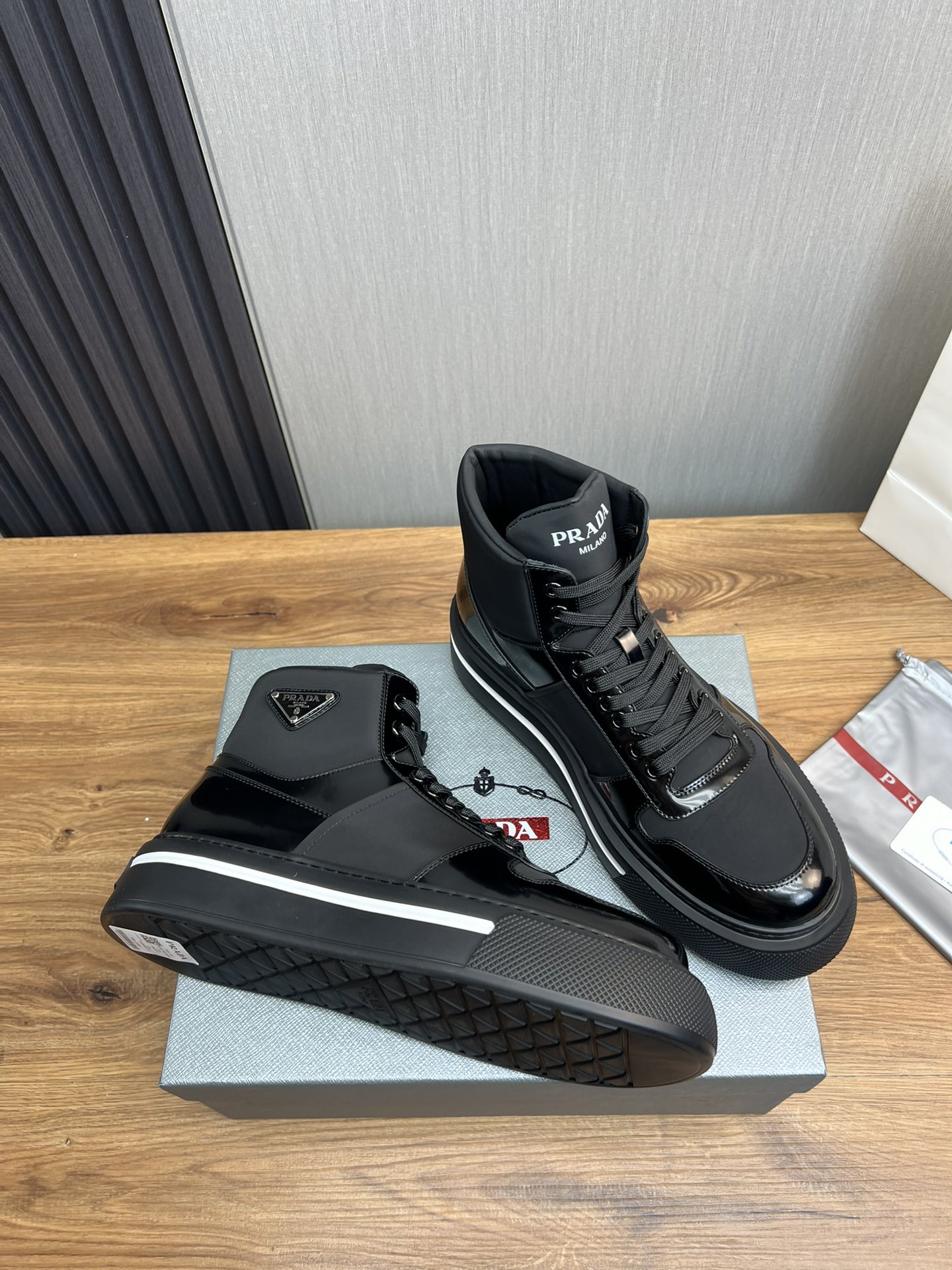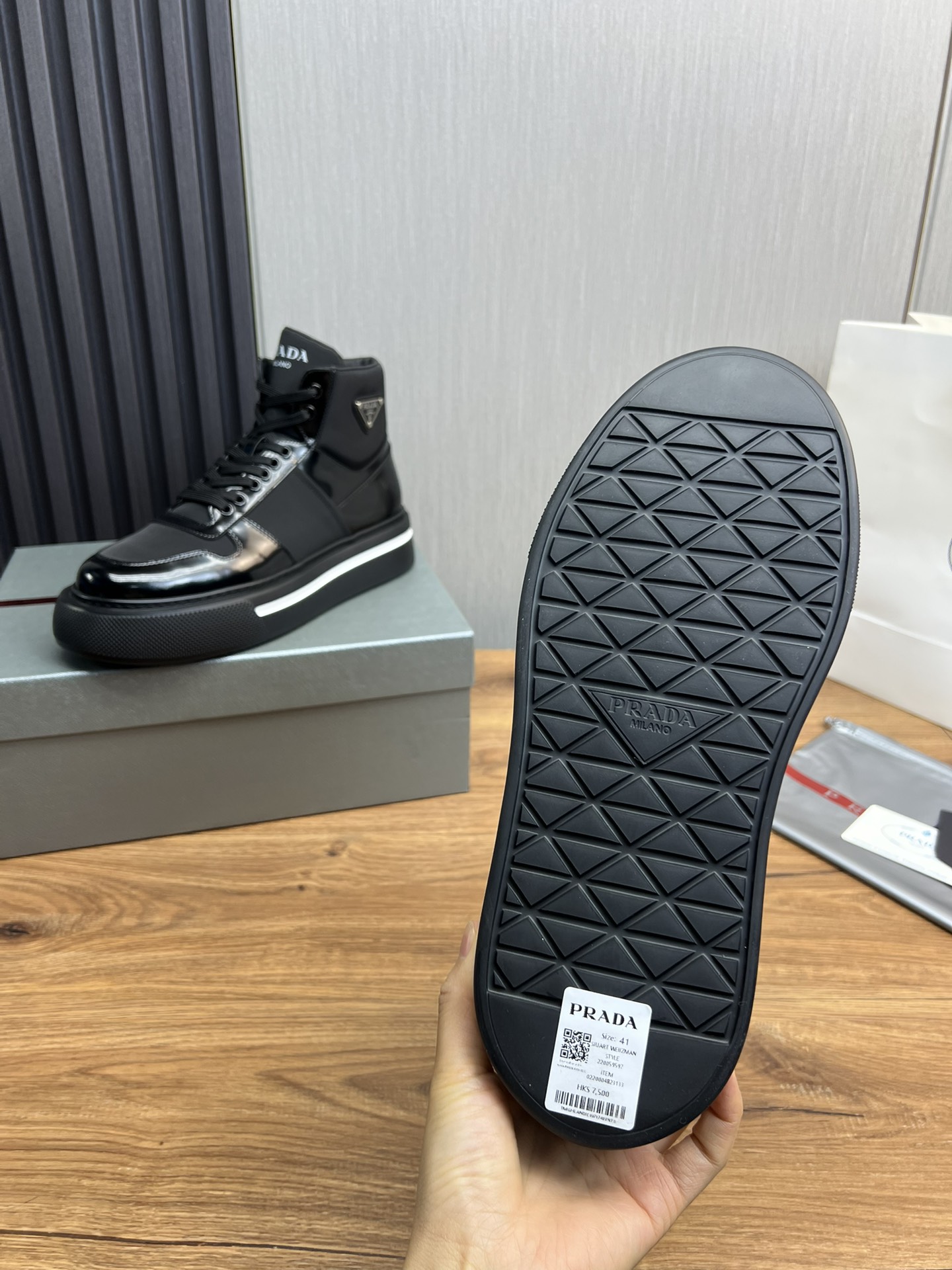 This shoes is AAAAA 1:1 quality (superb). Materials used are identical to the original ones. Prada trademark marks are indistinguishable to the authentic. Photos take by actual shoes, what you receive will be 100% same with our photos.