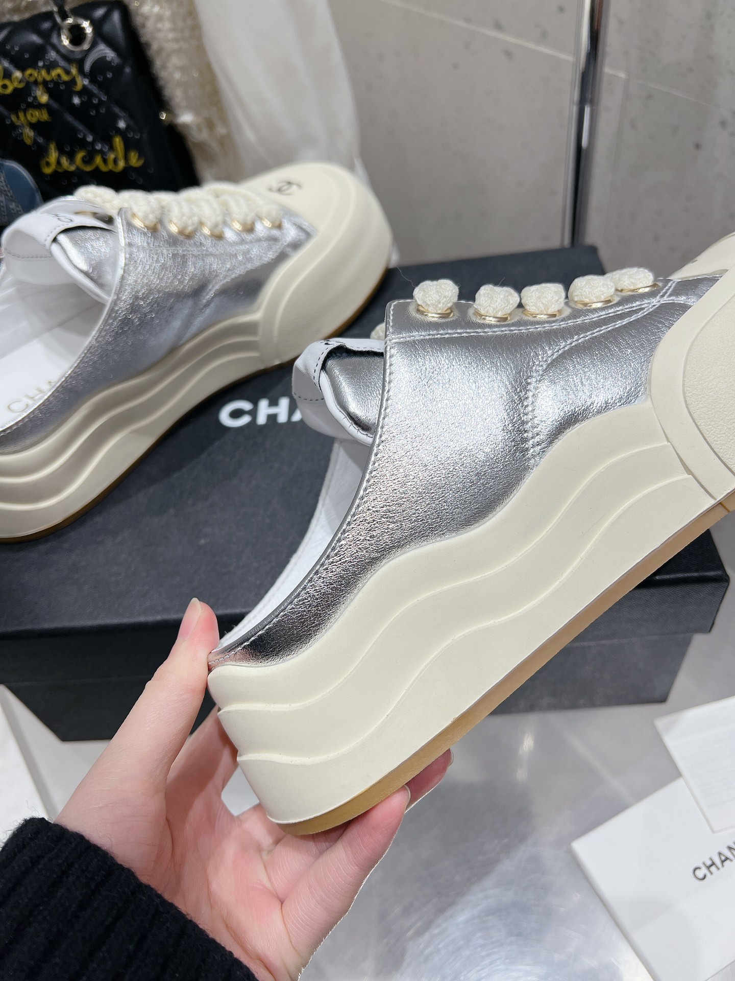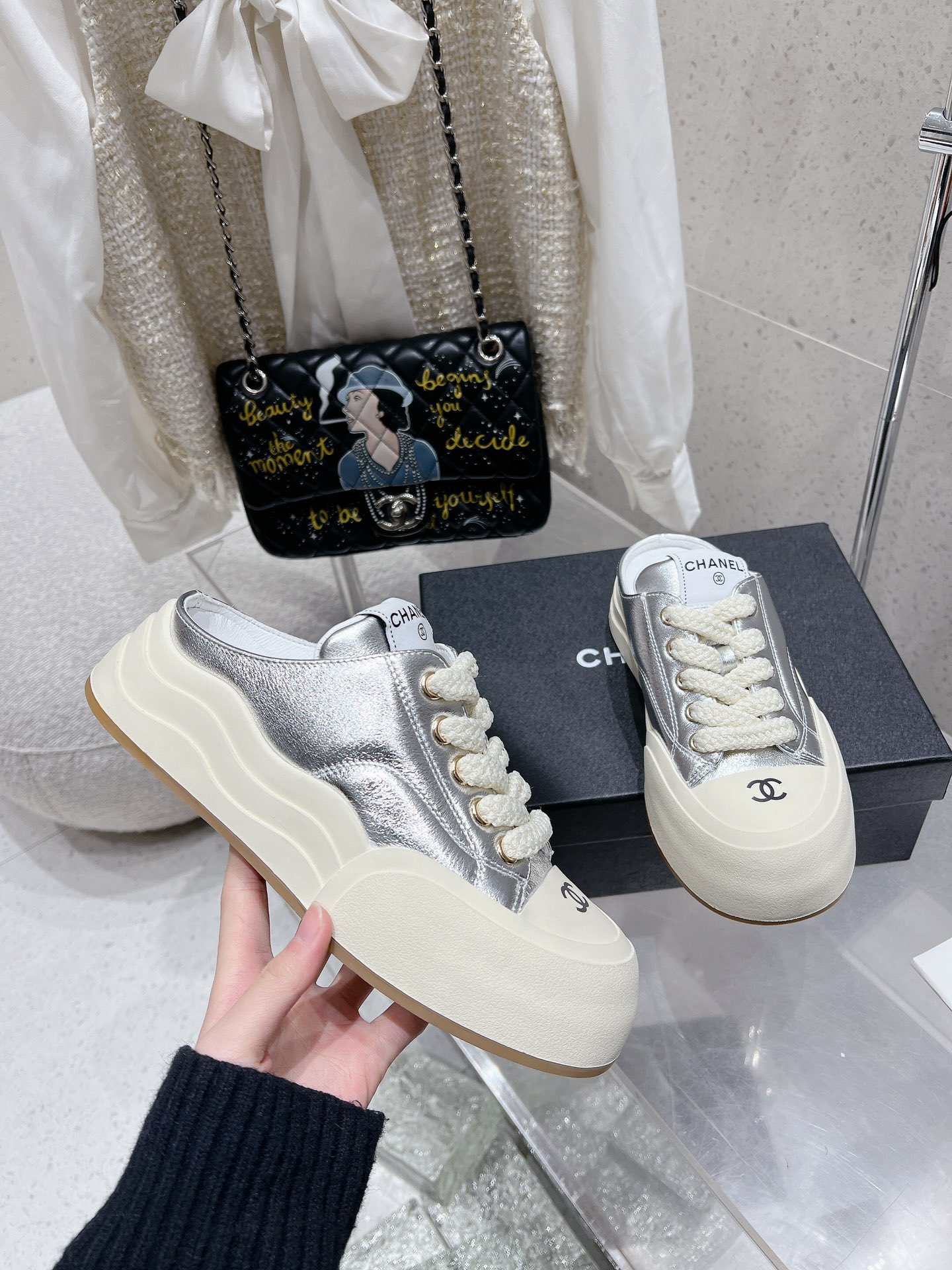 This shoes is AAAAA 1:1 quality (superb). Materials used are identical to the original ones. Chanel trademark marks are indistinguishable to the authentic. Photos take by actual shoes, what you receive will be 100% same with our photos.