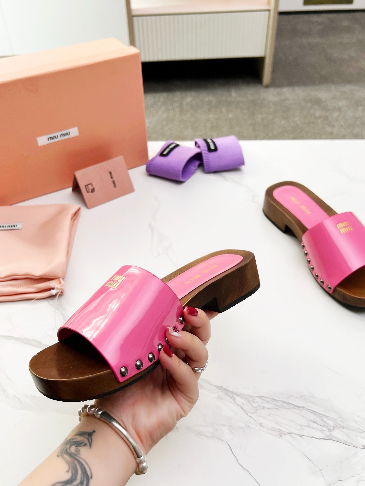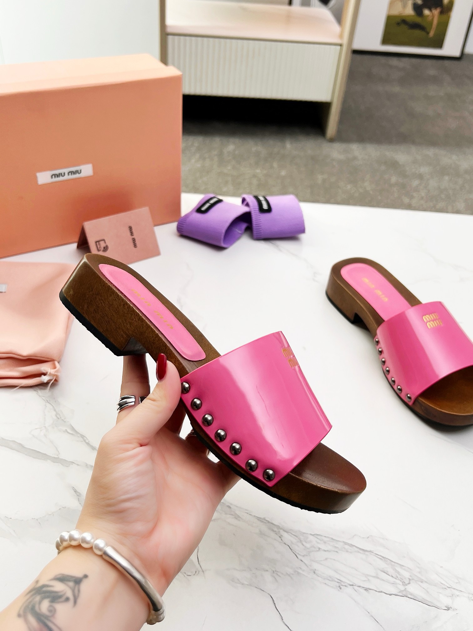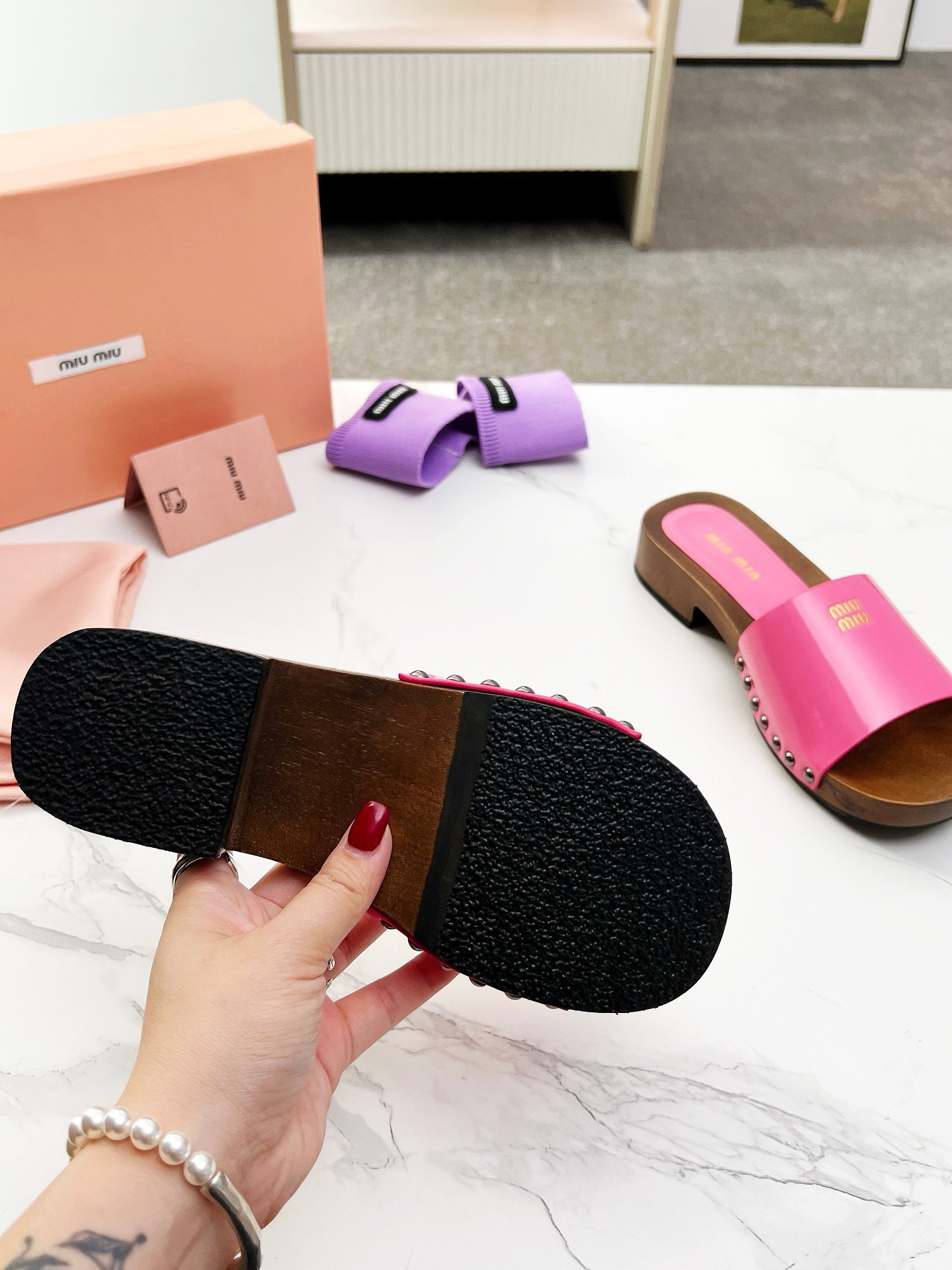 This shoes is AAAAA 1:1 quality (superb). Materials used are identical to the original ones. Miu Miu trademark marks are indistinguishable to the authentic. Photos take by actual shoes, what you receive will be 100% same with our photos.