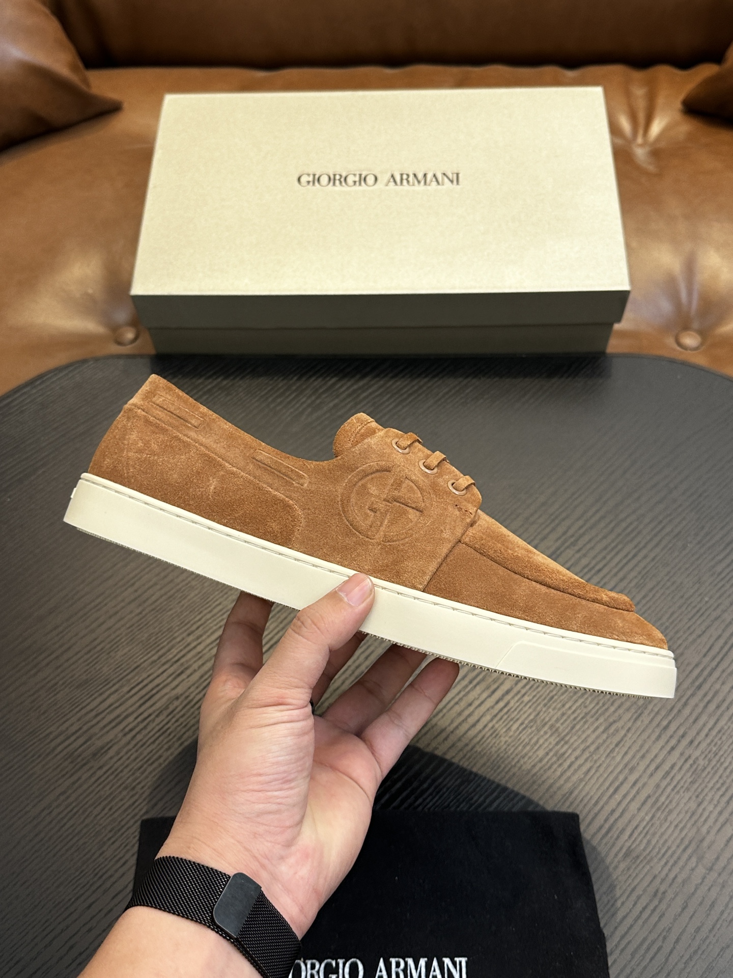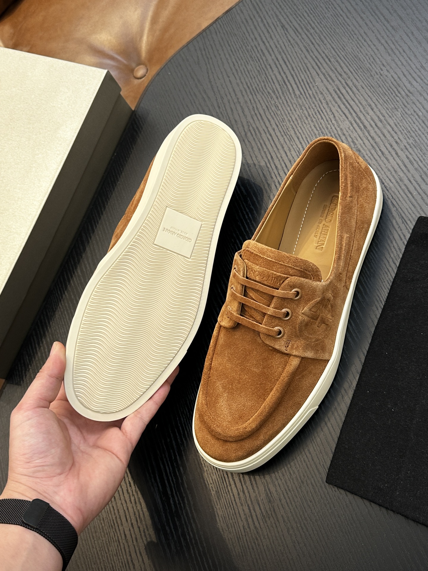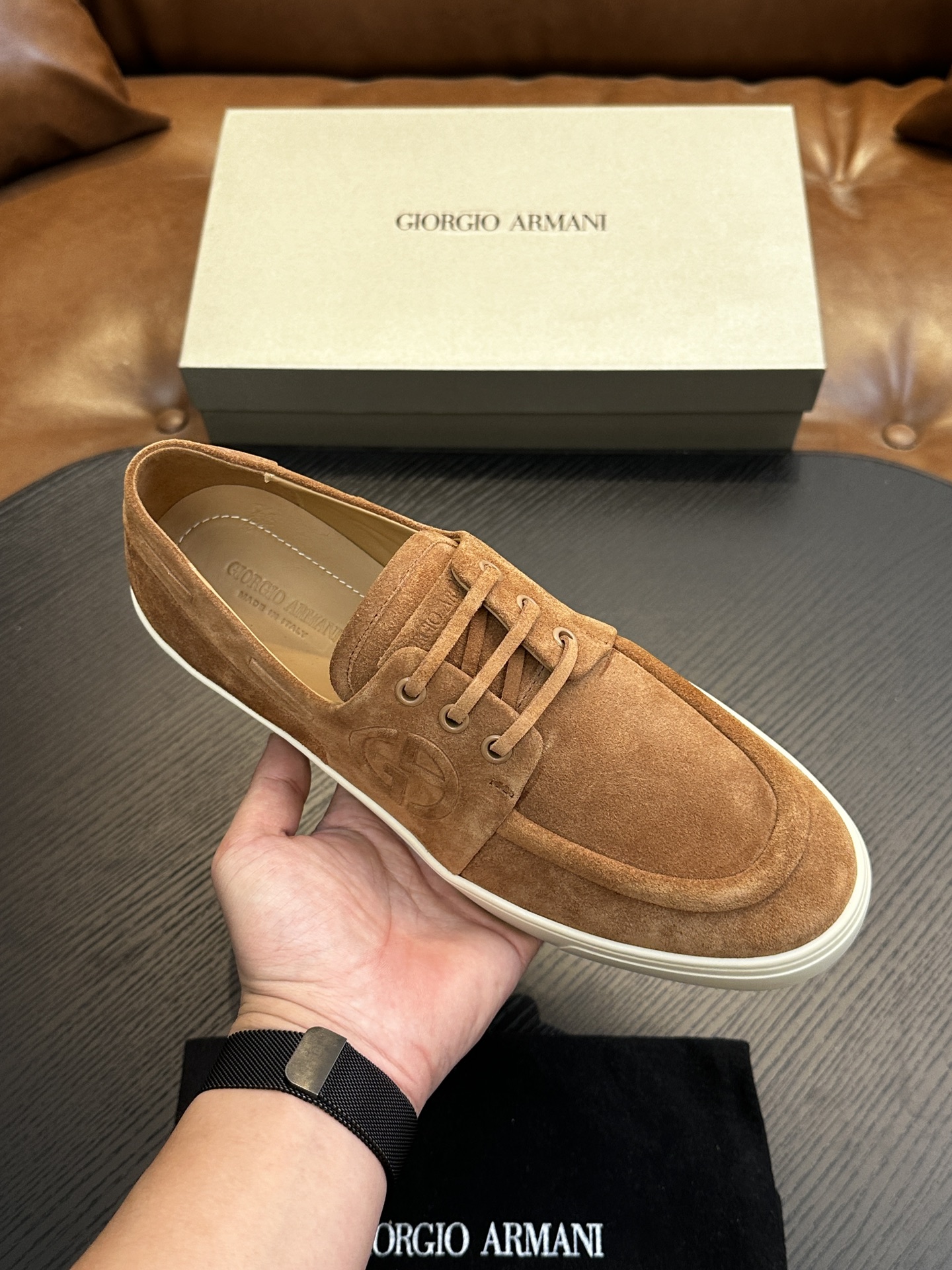This shoes is AAAAA 1:1 quality (superb). Materials used are identical to the original ones. Armani trademark marks are indistinguishable to the authentic. Photos take by actual shoes, what you receive will be 100% same with our photos.