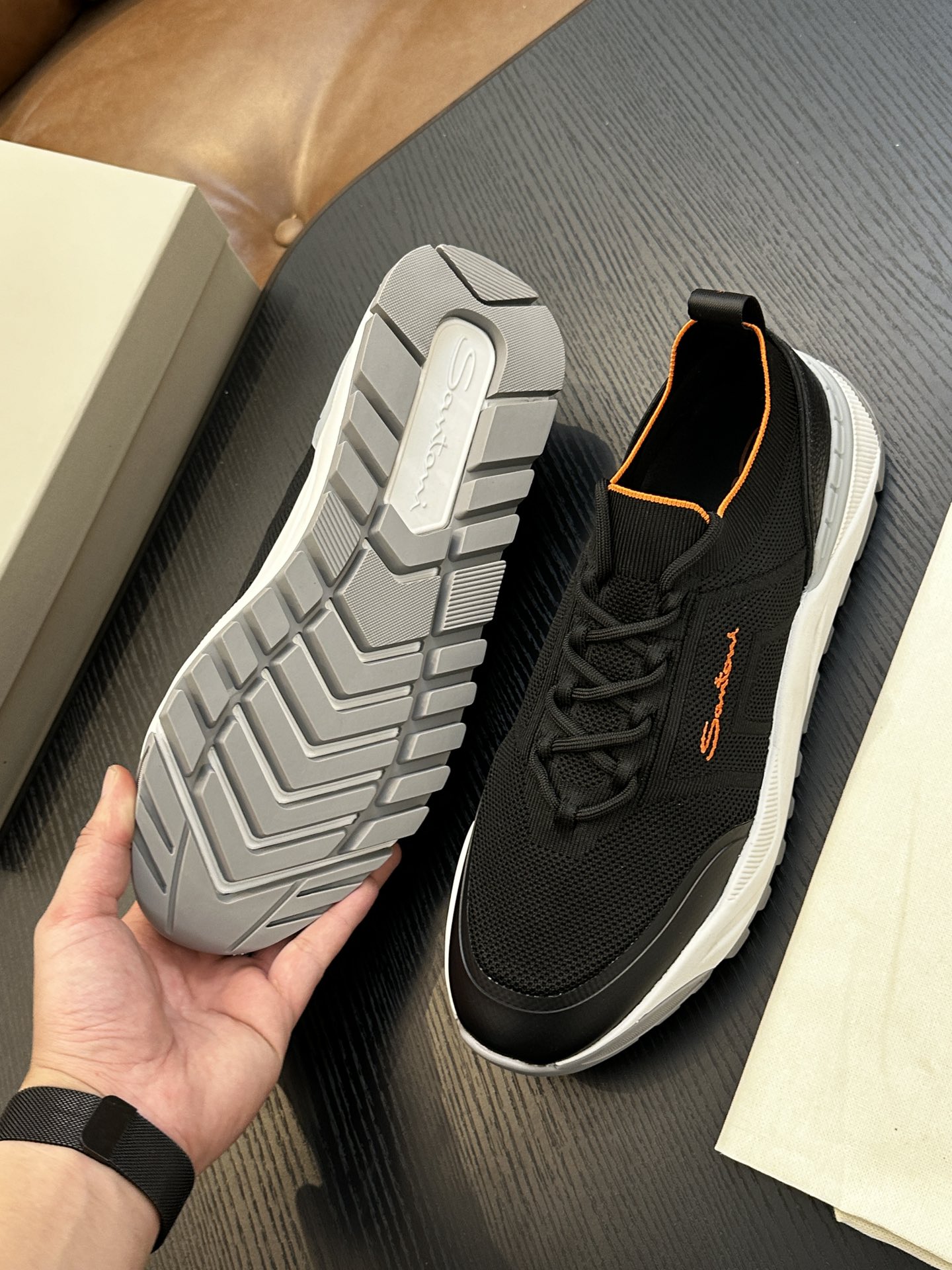 This shoes is AAAAA 1:1 quality (superb). Materials used are identical to the original ones. Santoni trademark marks are indistinguishable to the authentic. Photos take by actual shoes, what you receive will be 100% same with our photos.