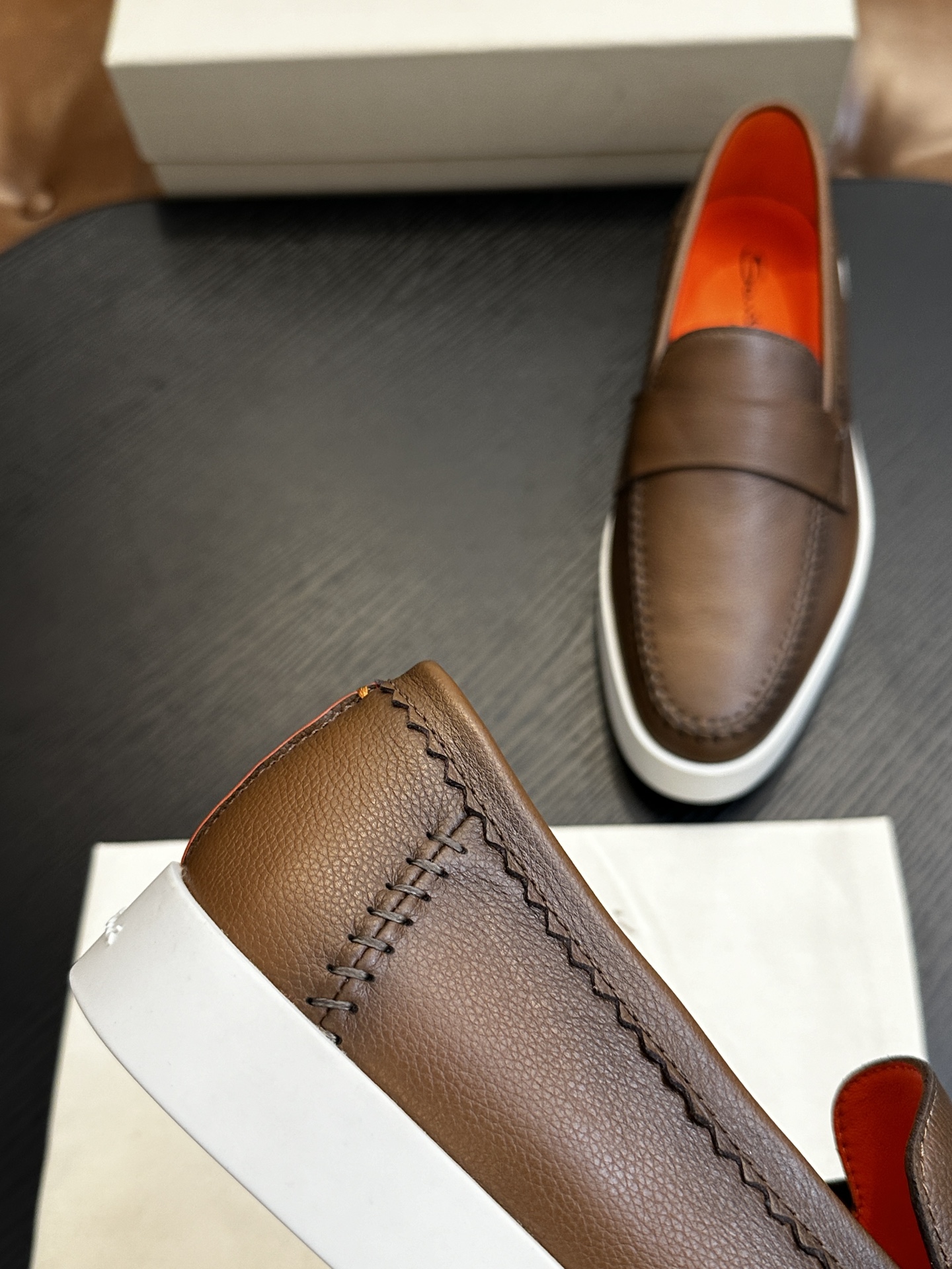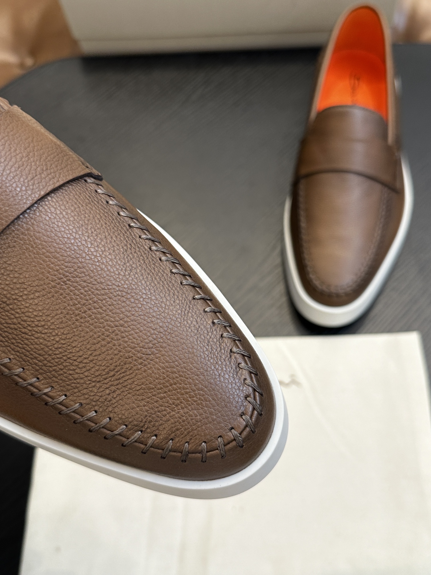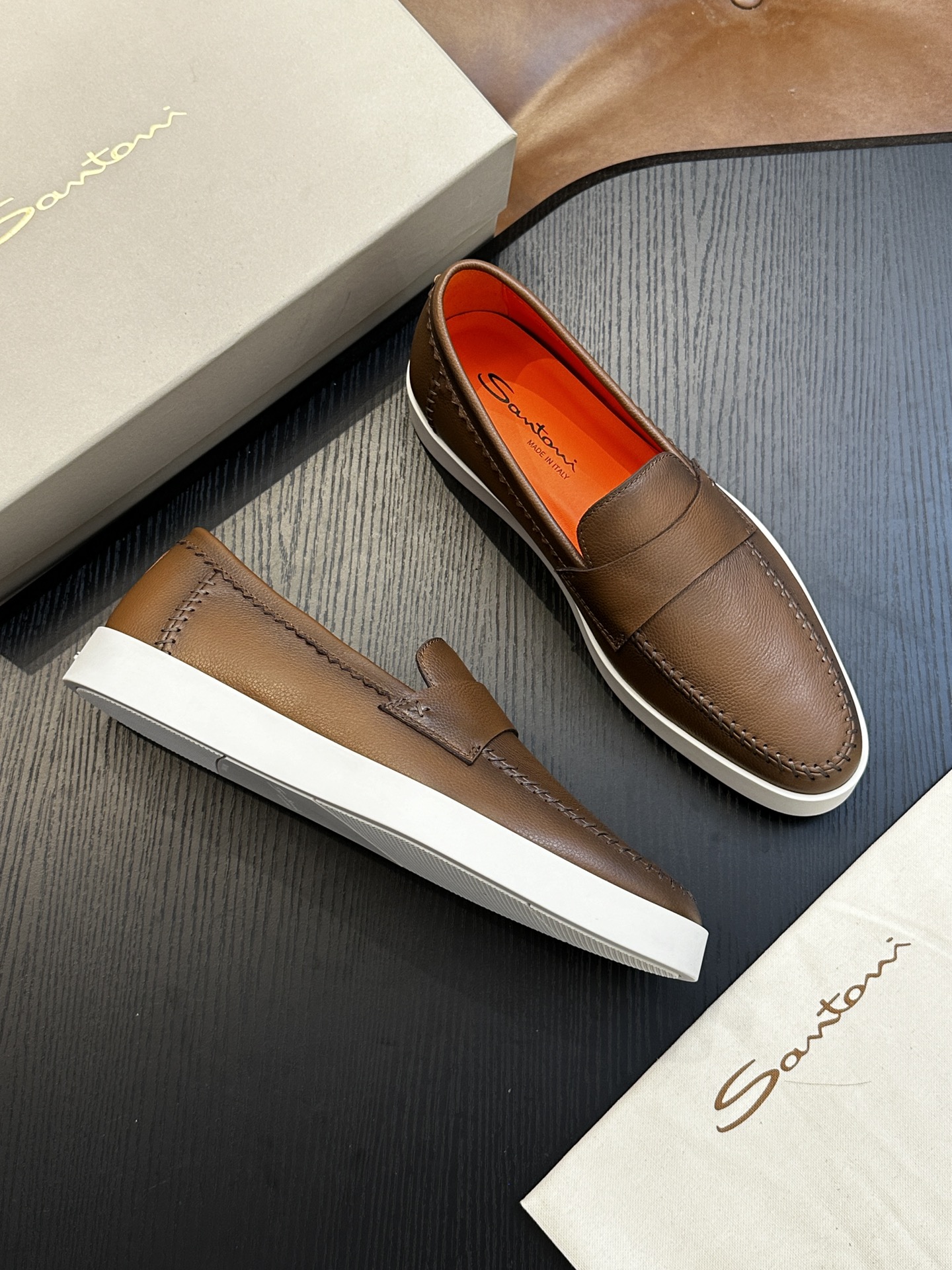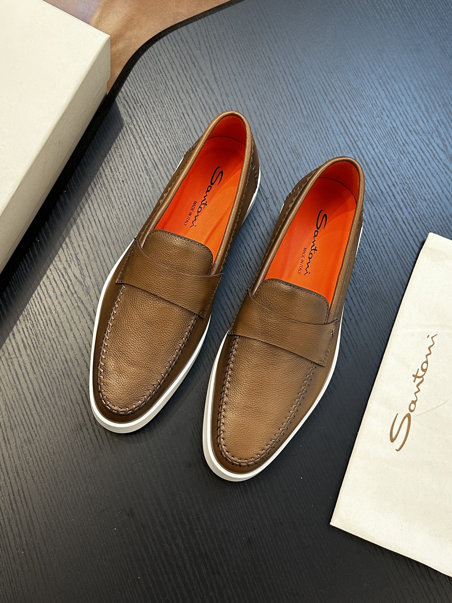 This shoes is AAAAA 1:1 quality (superb). Materials used are identical to the original ones. Santoni trademark marks are indistinguishable to the authentic. Photos take by actual shoes, what you receive will be 100% same with our photos.