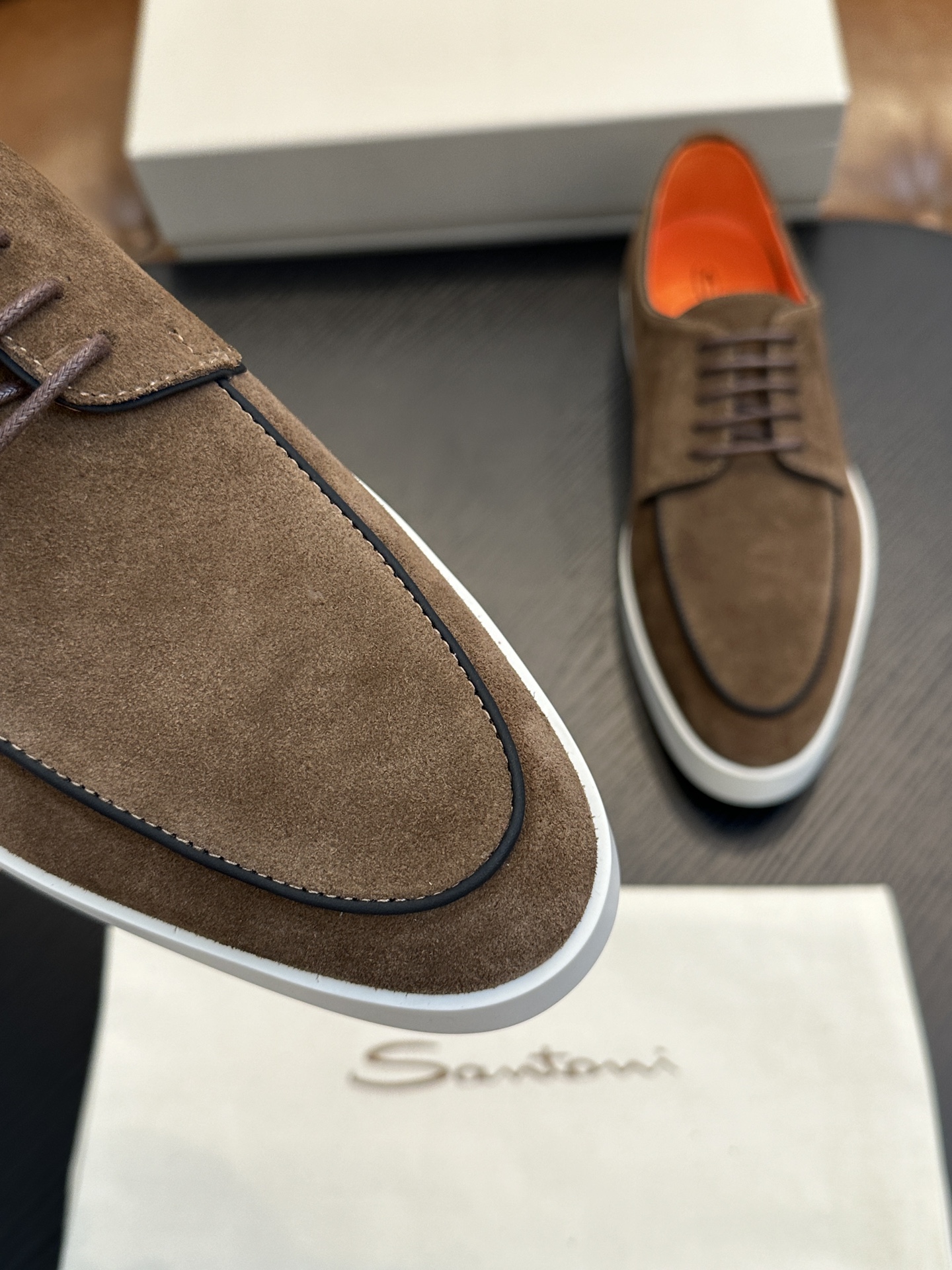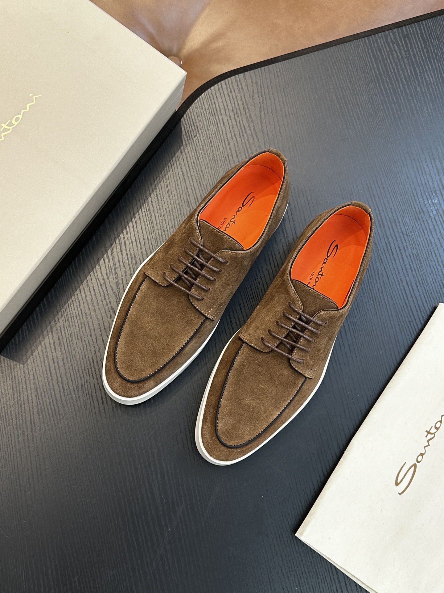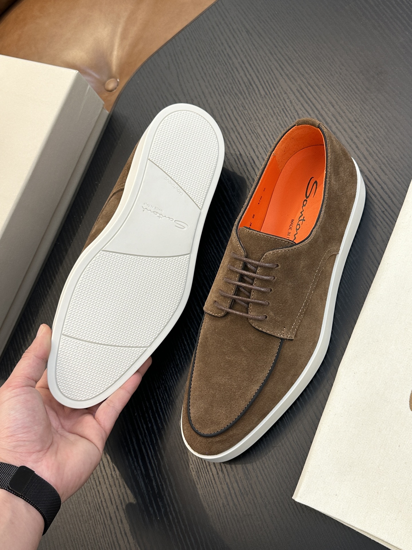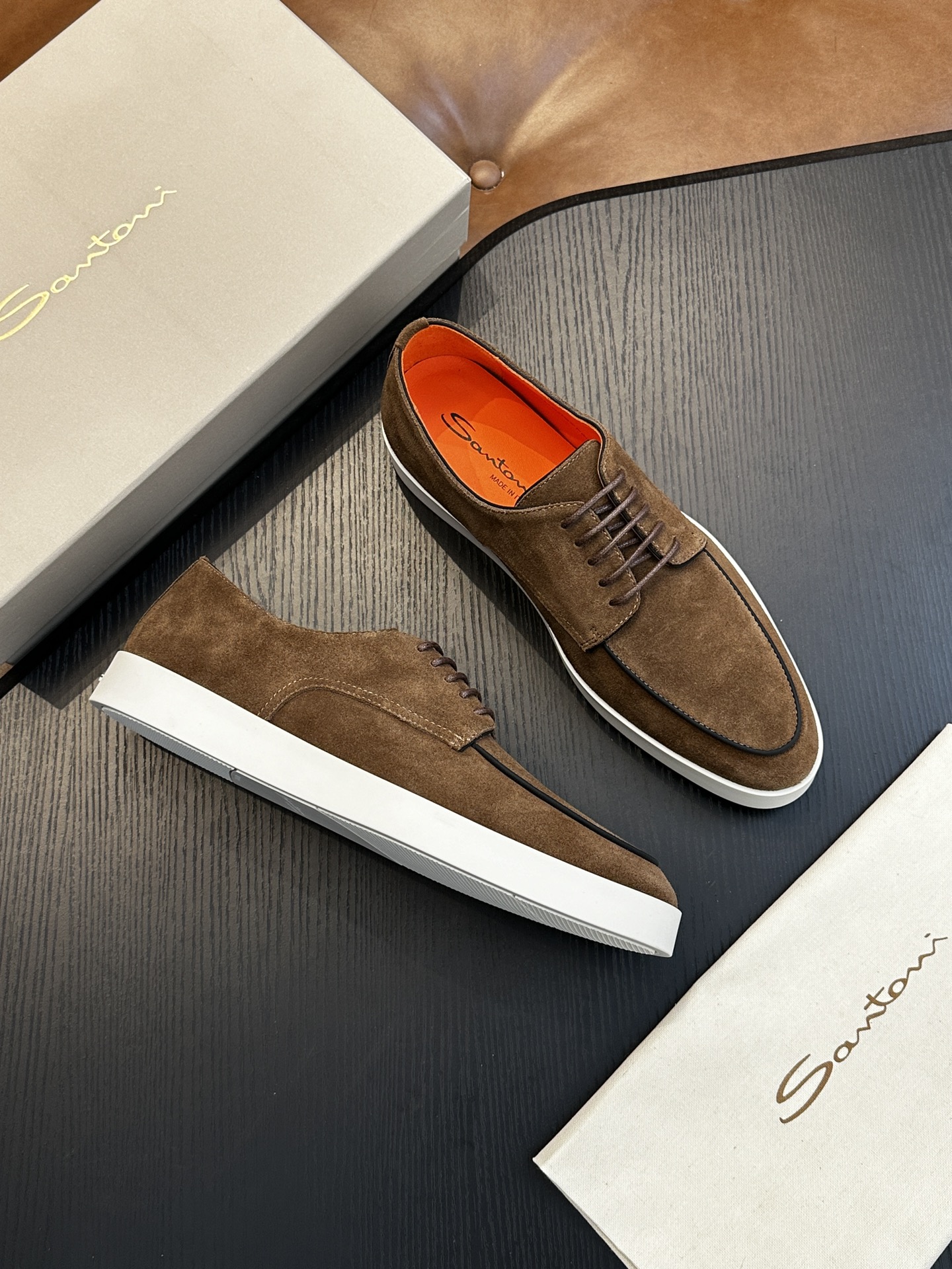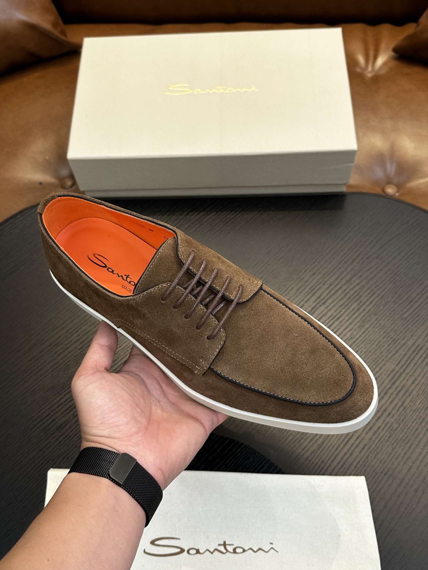 This shoes is AAAAA 1:1 quality (superb). Materials used are identical to the original ones. Santoni trademark marks are indistinguishable to the authentic. Photos take by actual shoes, what you receive will be 100% same with our photos.