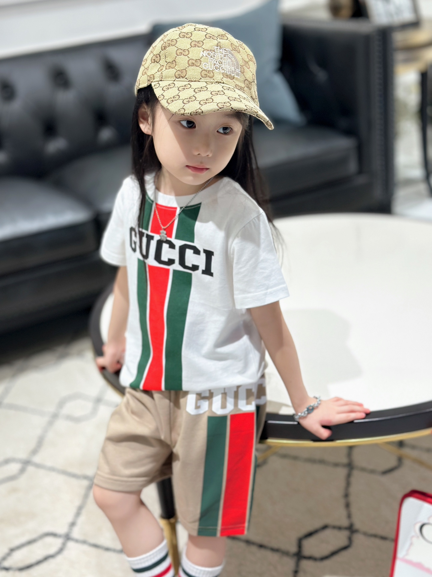 This children's clothes is AAAAA 1:1 quality (superb). Materials used are identical to the original ones. trademark marks are indistinguishable to the authentic. Photos take by actual children's clothes, what you receive will be 100% same with our photos.