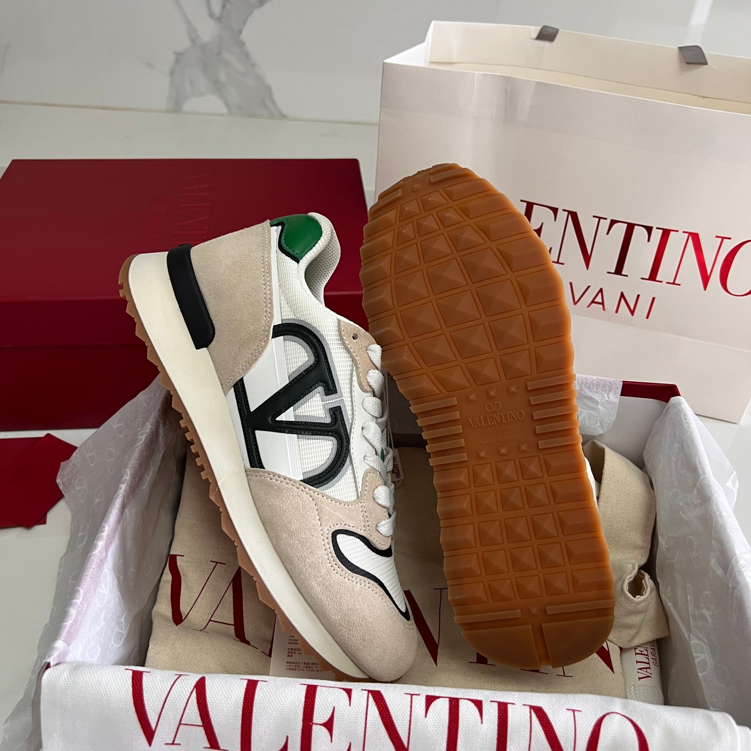 This shoes is AAAAA 1:1 quality (superb). Materials used are identical to the original ones. Valentino trademark marks are indistinguishable to the authentic. Photos take by actual shoes, what you receive will be 100% same with our photos.