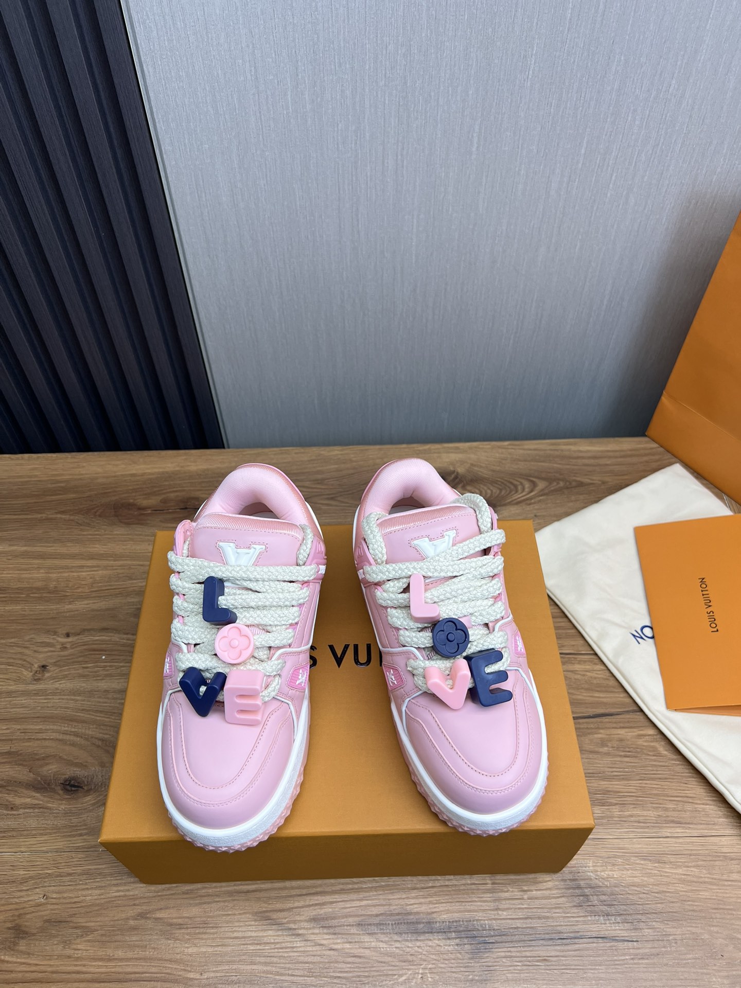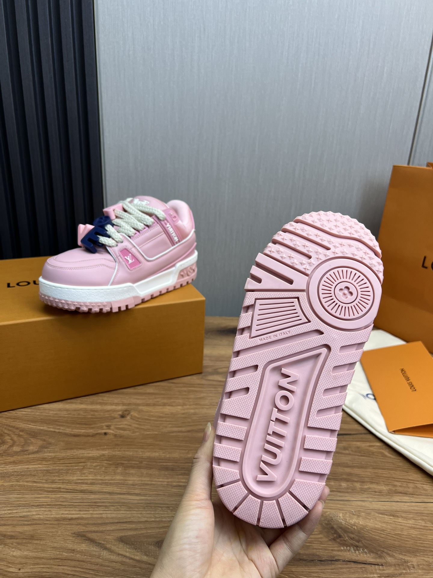This shoes is AAAAA 1:1 quality (superb). Materials used are identical to the original ones. Louis Vuitton trademark marks are indistinguishable to the authentic. Photos take by actual shoes, what you receive will be 100% same with our photos.