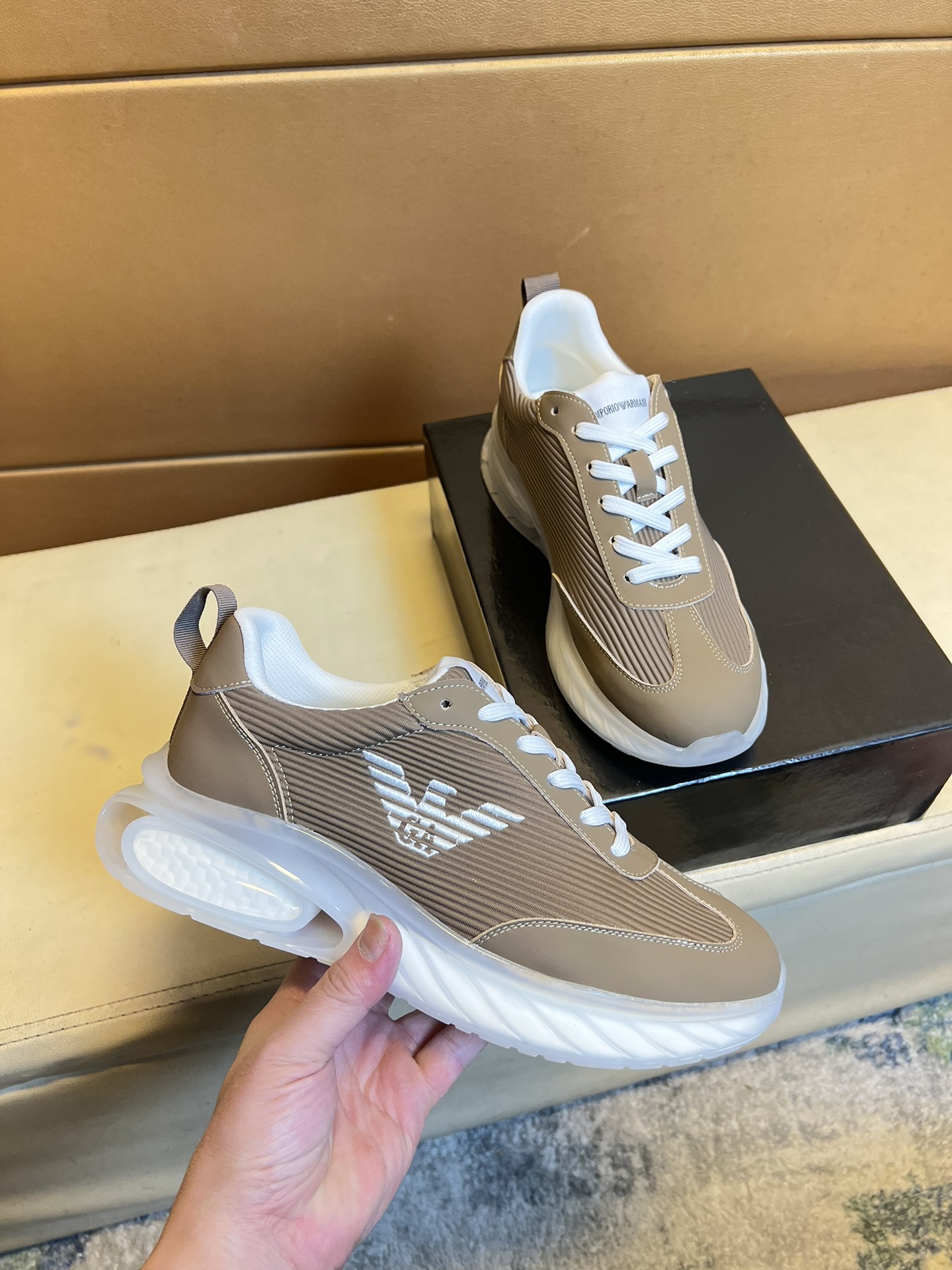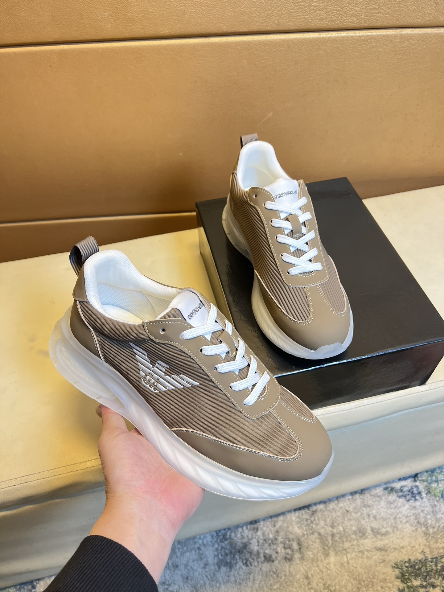 This shoes is AAAAA 1:1 quality (superb). Materials used are identical to the original ones. Armani trademark marks are indistinguishable to the authentic. Photos take by actual shoes, what you receive will be 100% same with our photos.