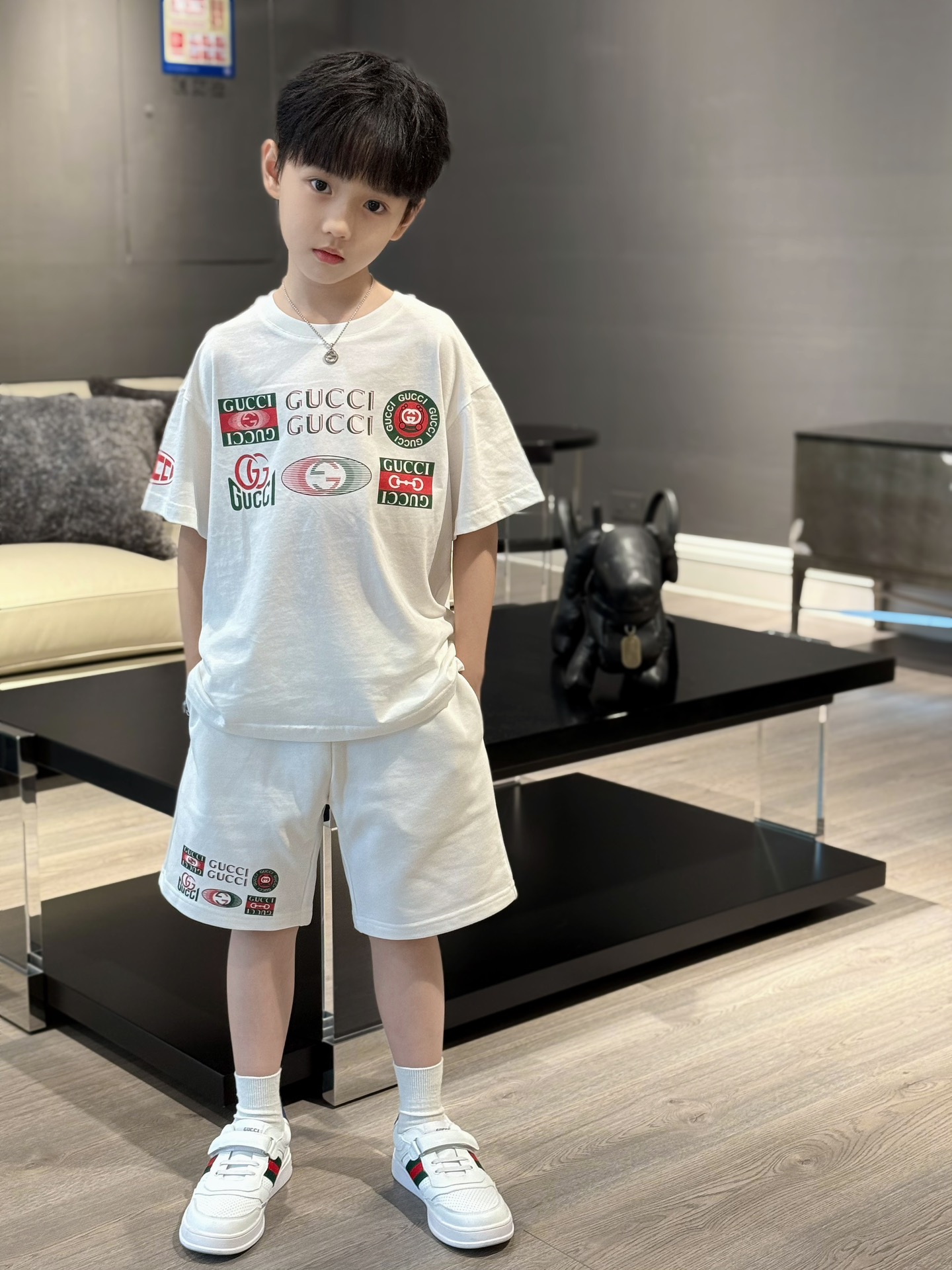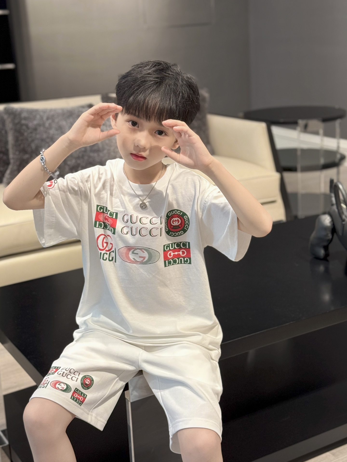 This children's clothes is AAAAA 1:1 quality (superb). Materials used are identical to the original ones. trademark marks are indistinguishable to the authentic. Photos take by actual children's clothes, what you receive will be 100% same with our photos.