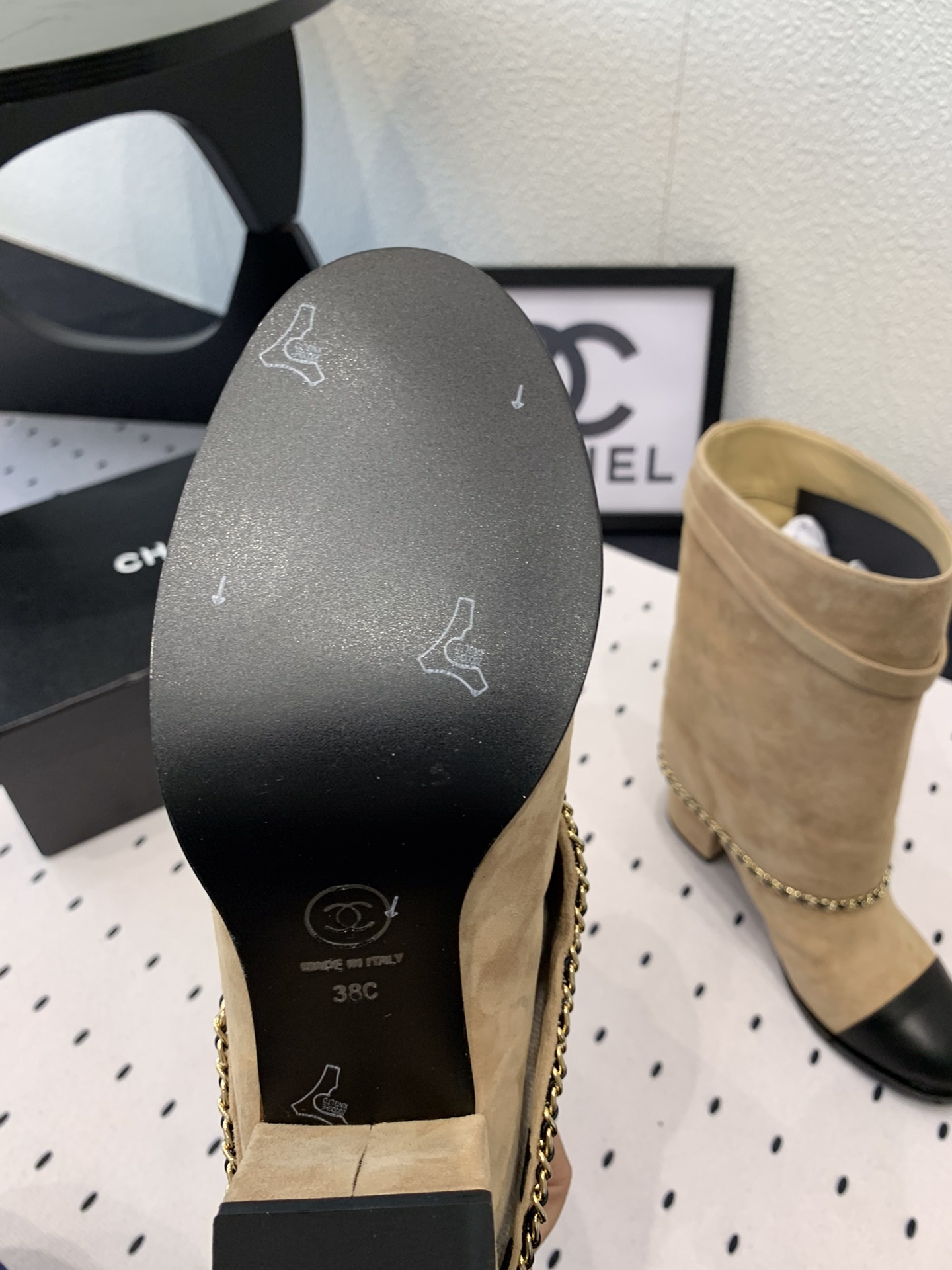 This shoes is AAAAA 1:1 quality (superb). Materials used are identical to the original ones. Chanel trademark marks are indistinguishable to the authentic. Photos take by actual shoes, what you receive will be 100% same with our photos.