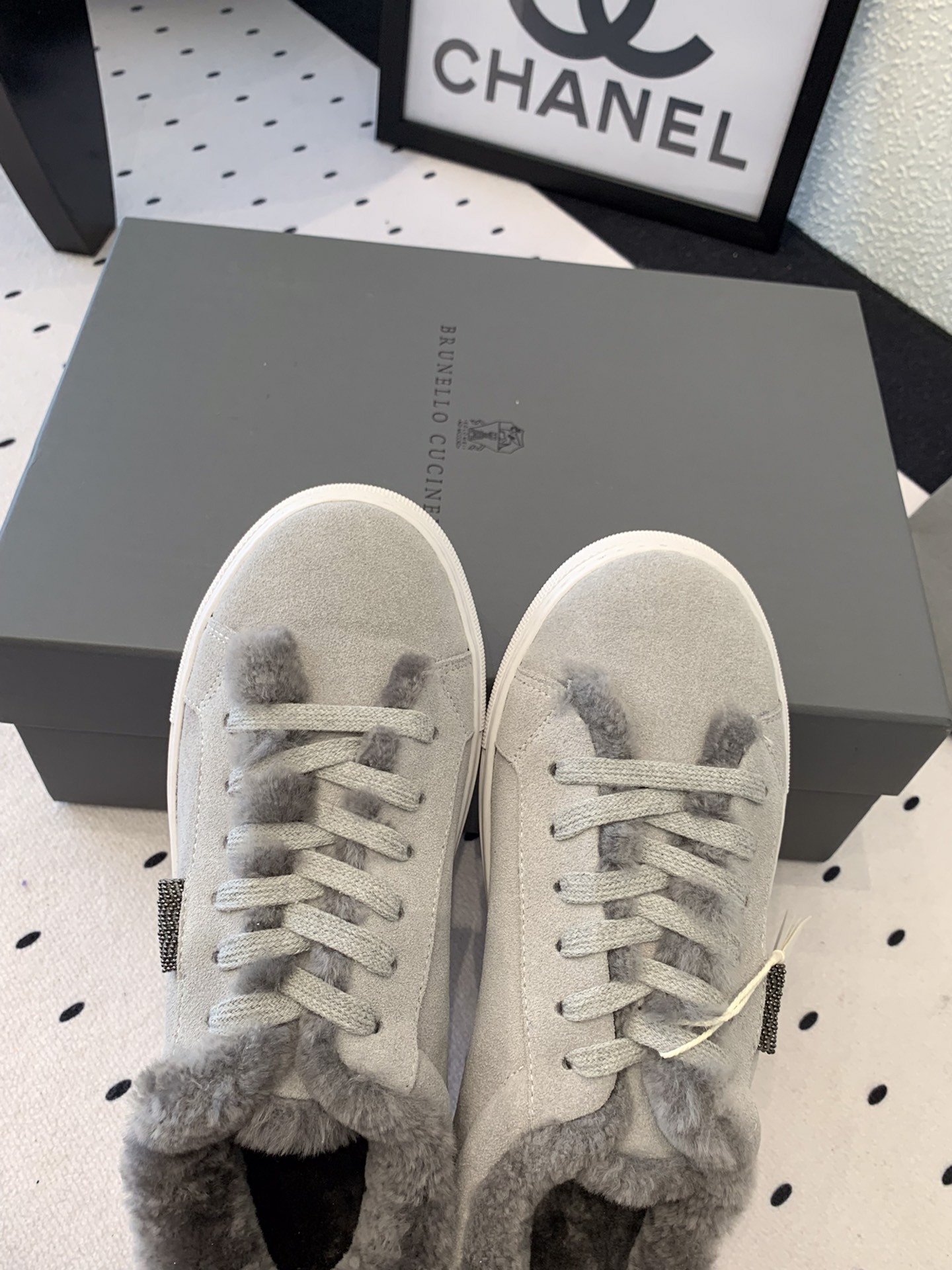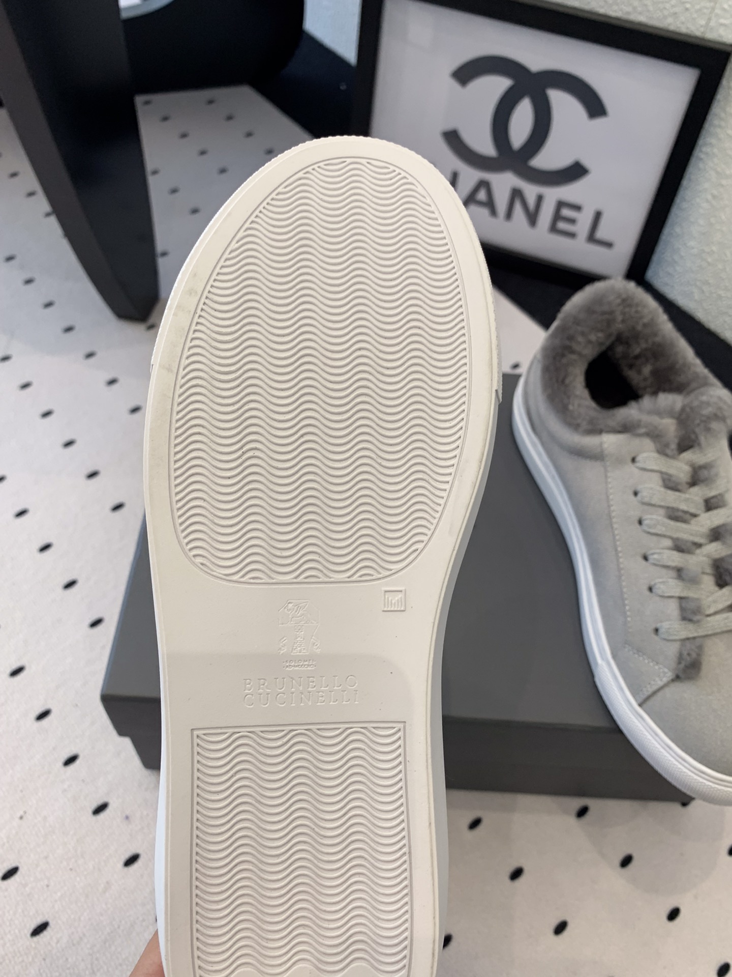 This shoes is AAAAA 1:1 quality (superb). Materials used are identical to the original ones. Brunello Cucinelli trademark marks are indistinguishable to the authentic. Photos take by actual shoes, what you receive will be 100% same with our photos.