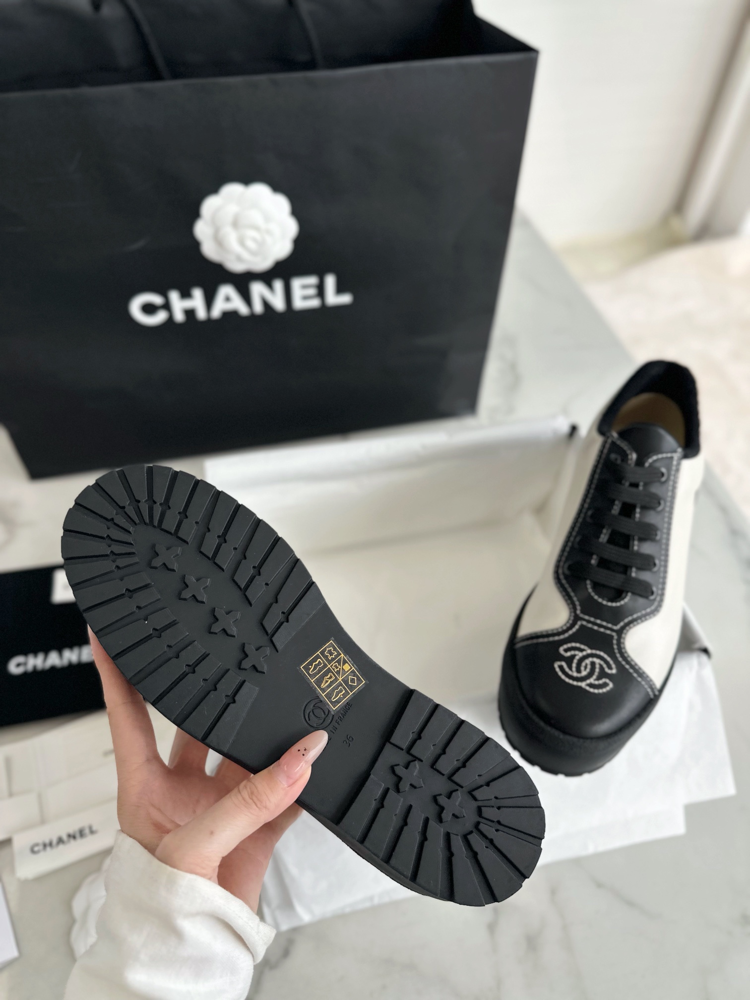 This shoes is AAAAA 1:1 quality (superb). Materials used are identical to the original ones. Chanel trademark marks are indistinguishable to the authentic. Photos take by actual shoes, what you receive will be 100% same with our photos.