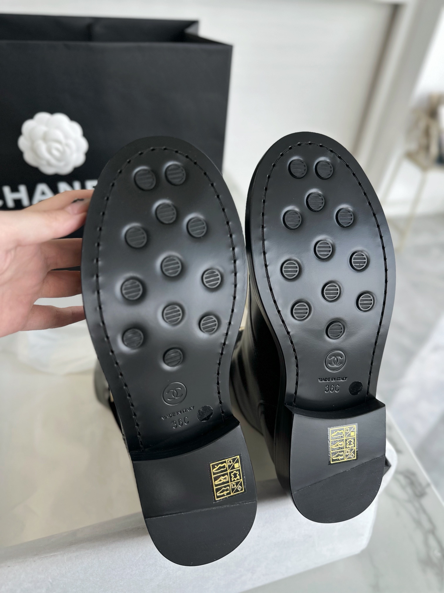 This shoes is AAAAA 1:1 quality (superb). Materials used are identical to the original ones. Chanel trademark marks are indistinguishable to the authentic. Photos take by actual shoes, what you receive will be 100% same with our photos.