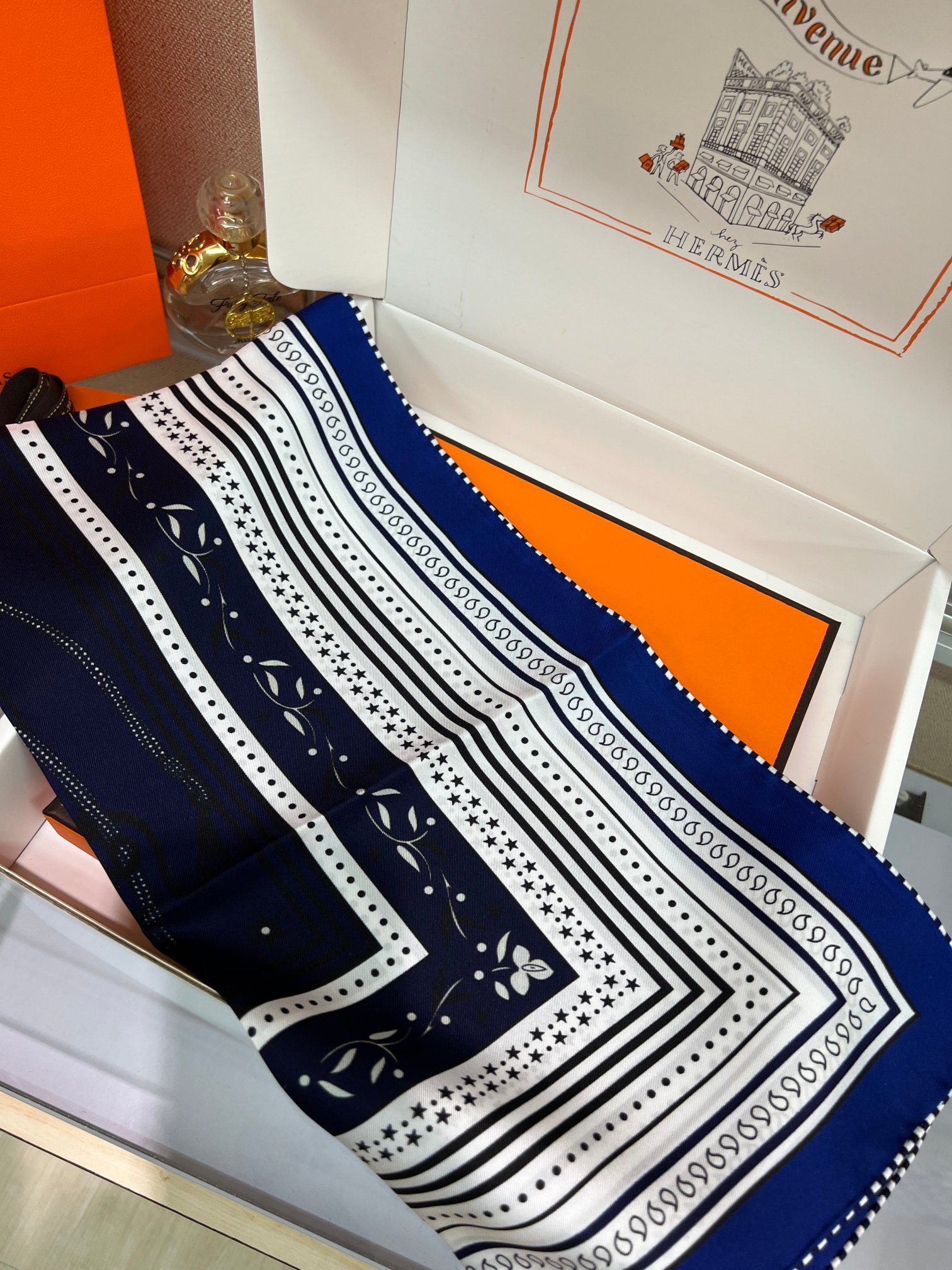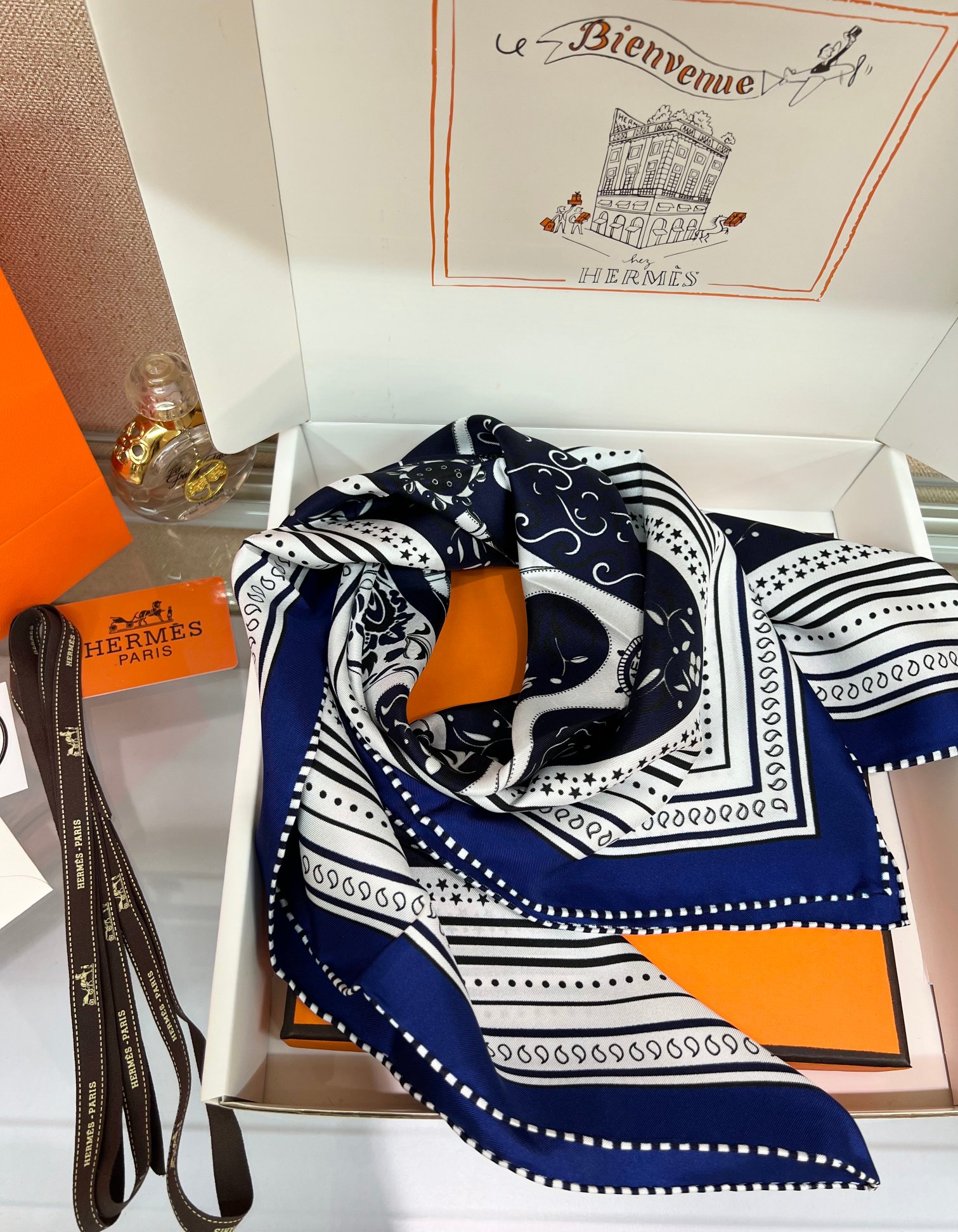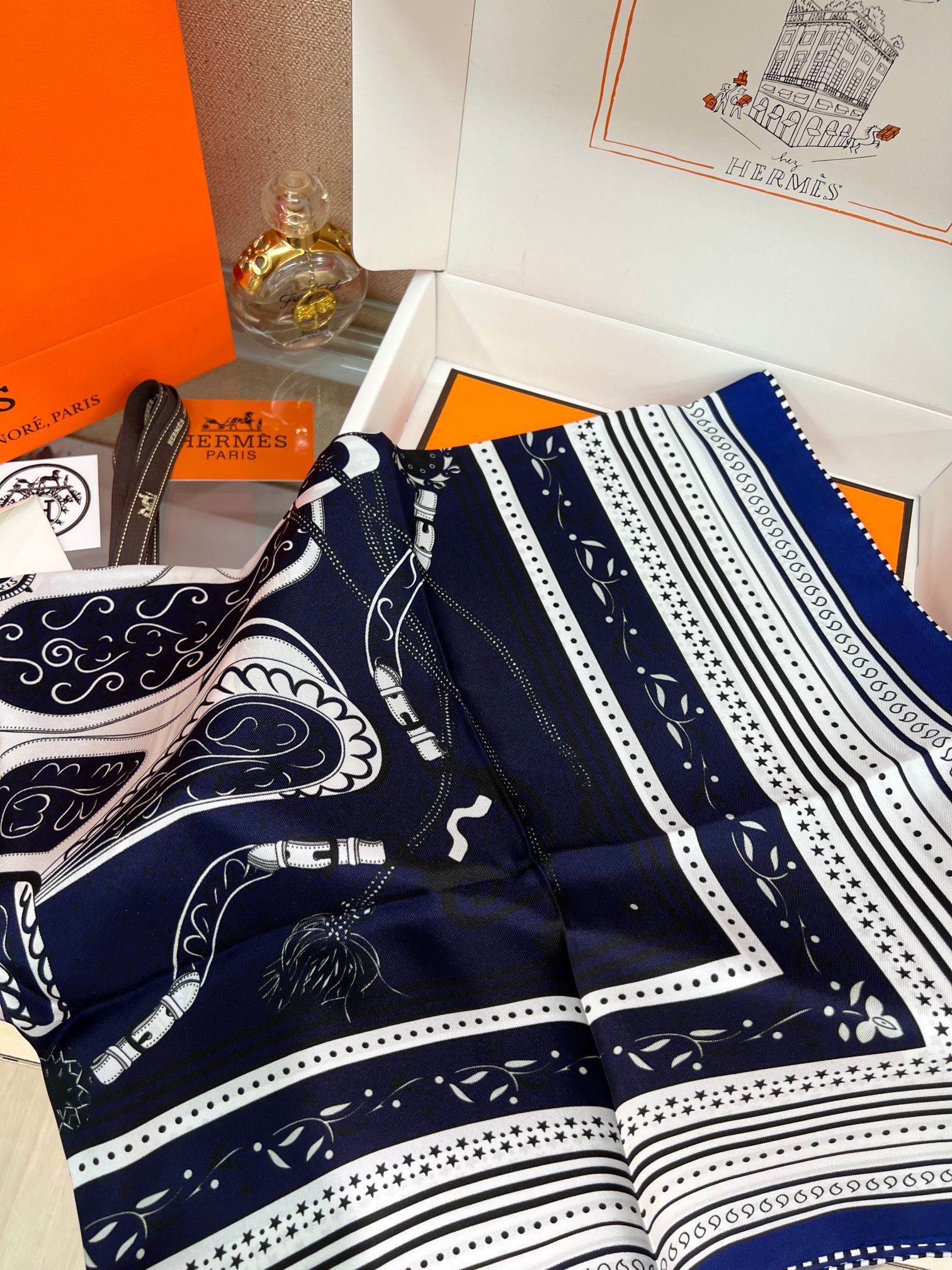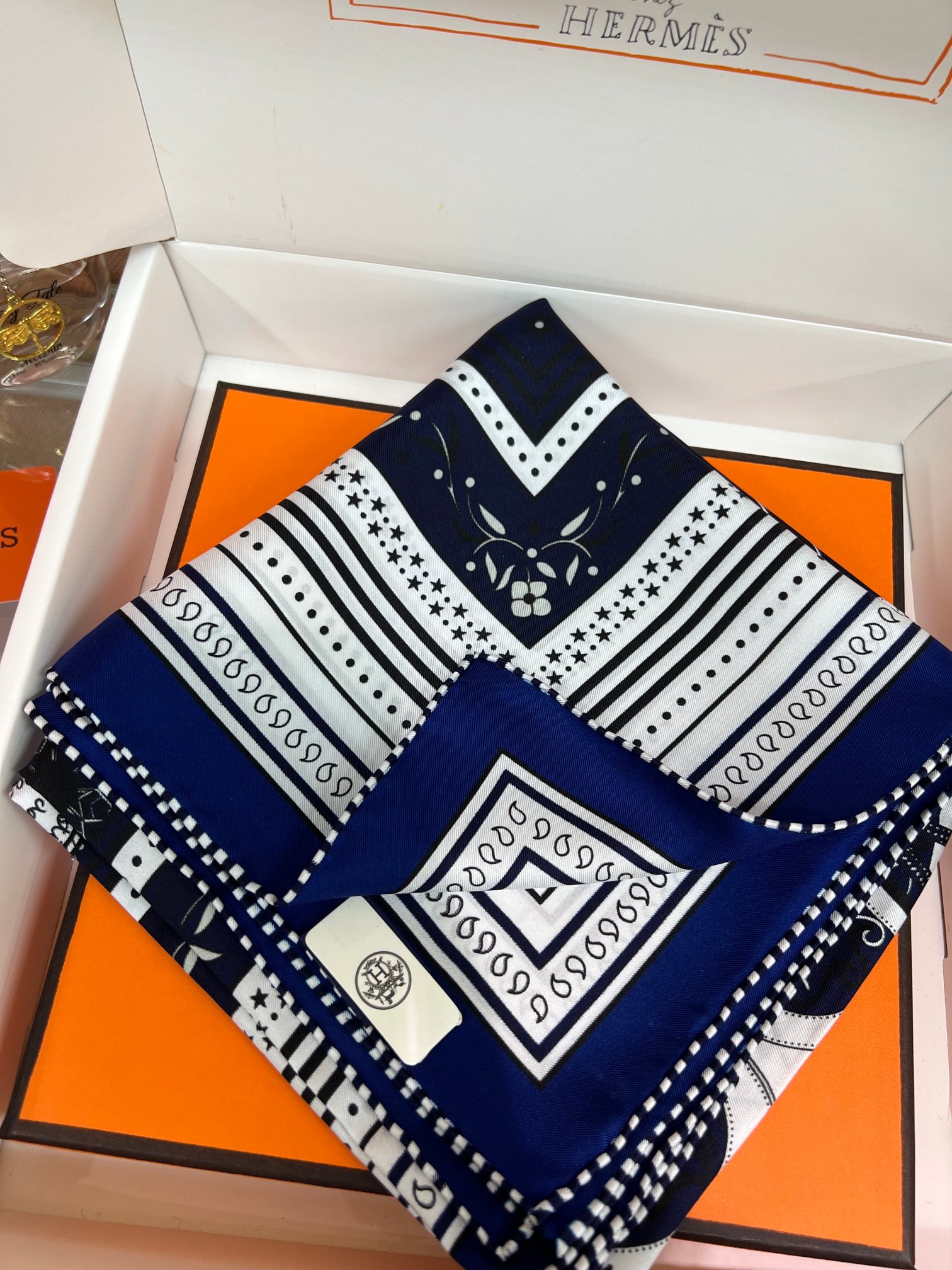 NO:2490682. The scarf is from Hermes designer.