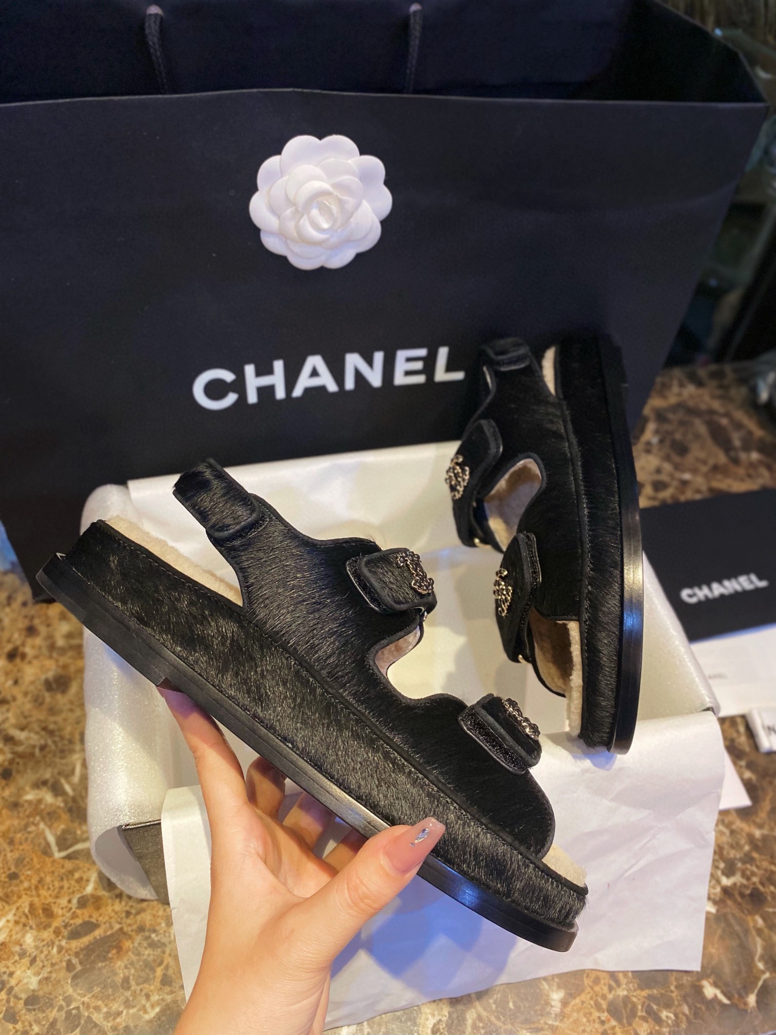 This shoes is AAAAA 1:1 quality (superb). Materials used are identical to the original ones. Chanel trademark marks are indistinguishable to the authentic. Photos take by actual shoes, what you receive will be 100% same with our photos.