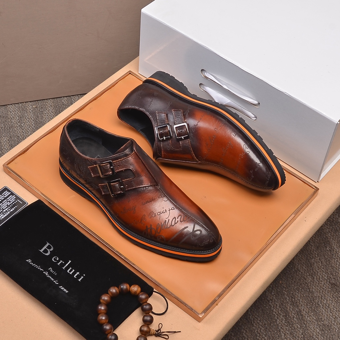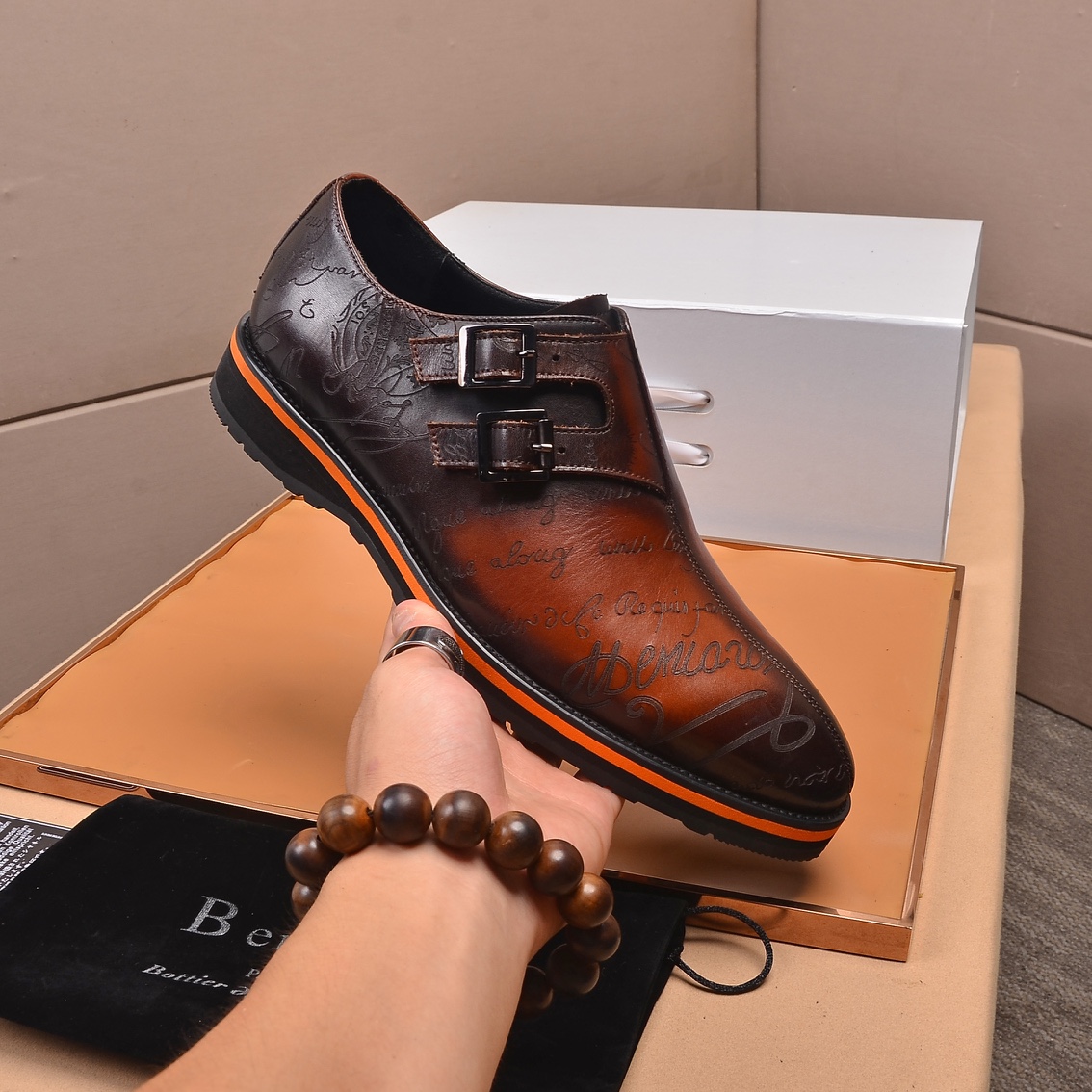 This shoes is AAAAA 1:1 quality (superb). Materials used are identical to the original ones. Berluti trademark marks are indistinguishable to the authentic. Photos take by actual shoes, what you receive will be 100% same with our photos.