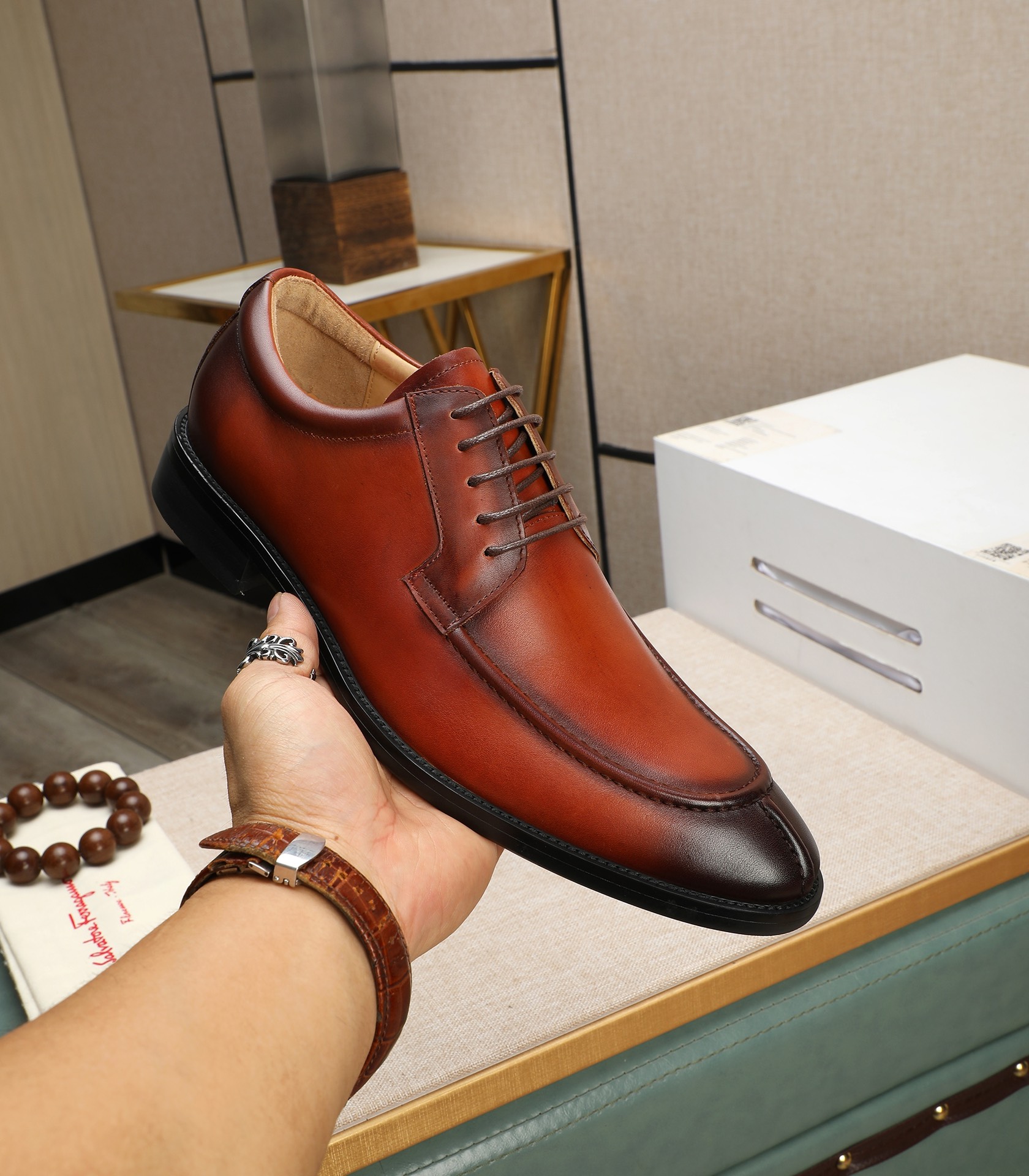 This shoes is AAAAA 1:1 quality (superb). Materials used are identical to the original ones. Salvatore Ferragamo trademark marks are indistinguishable to the authentic. Photos take by actual shoes, what you receive will be 100% same with our photos.