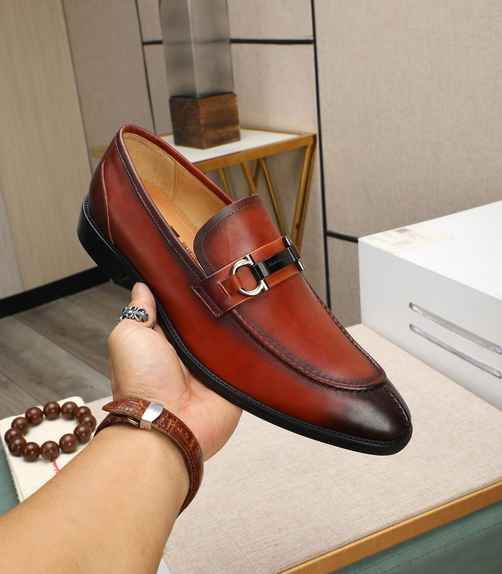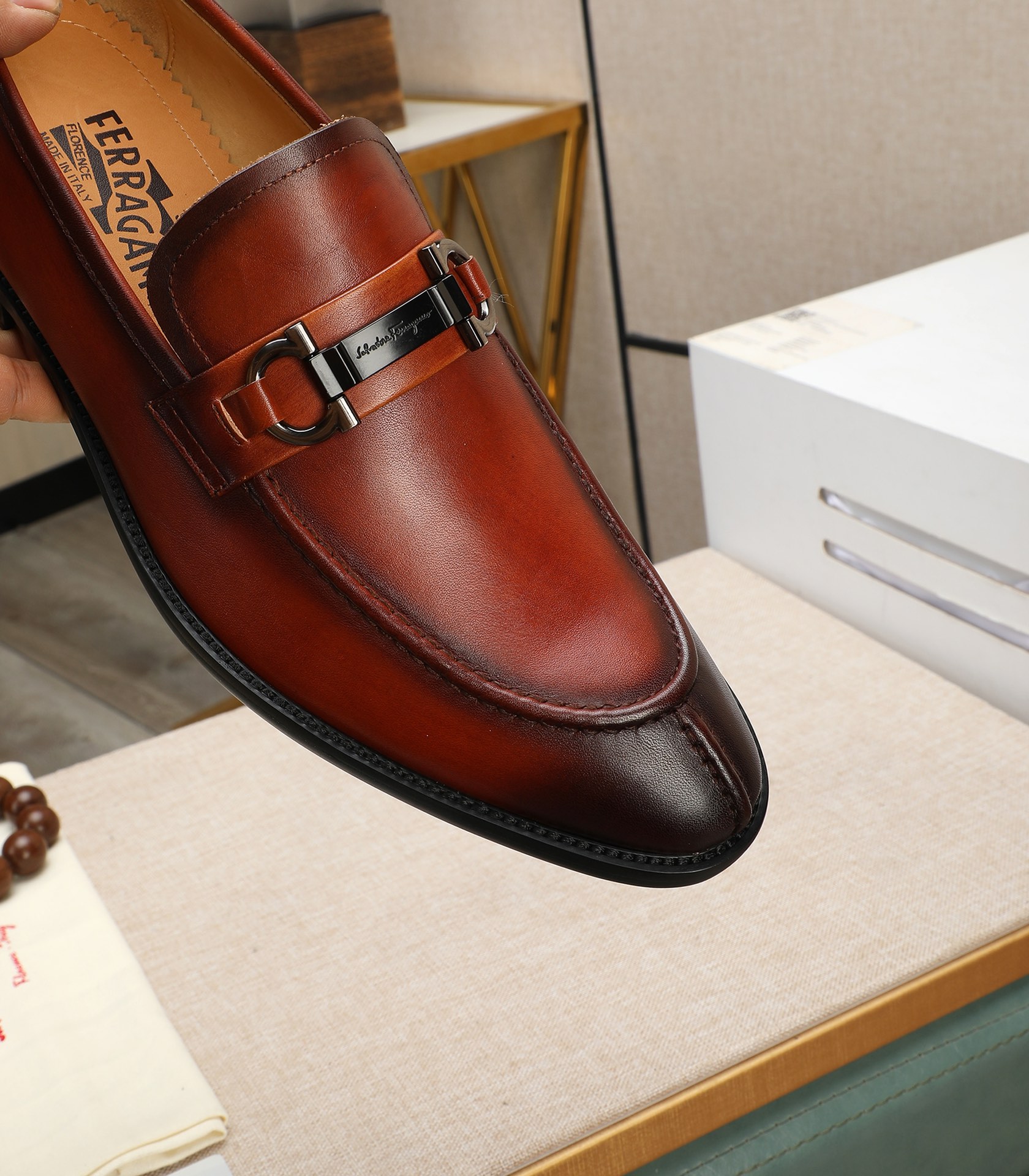 This shoes is AAAAA 1:1 quality (superb). Materials used are identical to the original ones. Salvatore Ferragamo trademark marks are indistinguishable to the authentic. Photos take by actual shoes, what you receive will be 100% same with our photos.