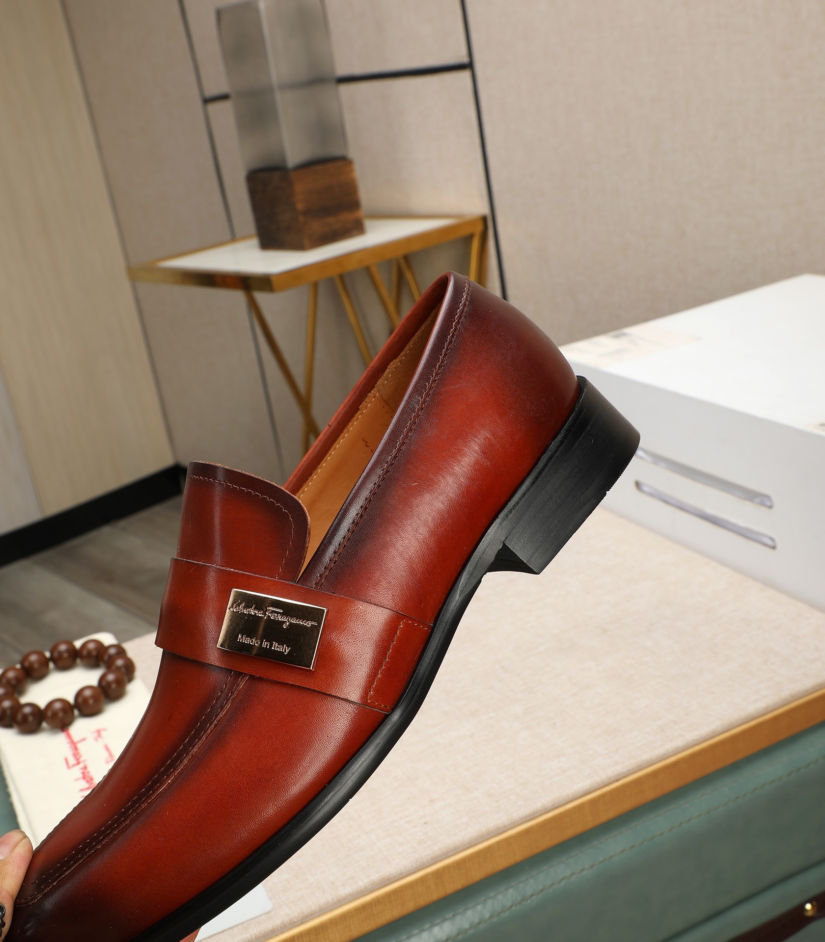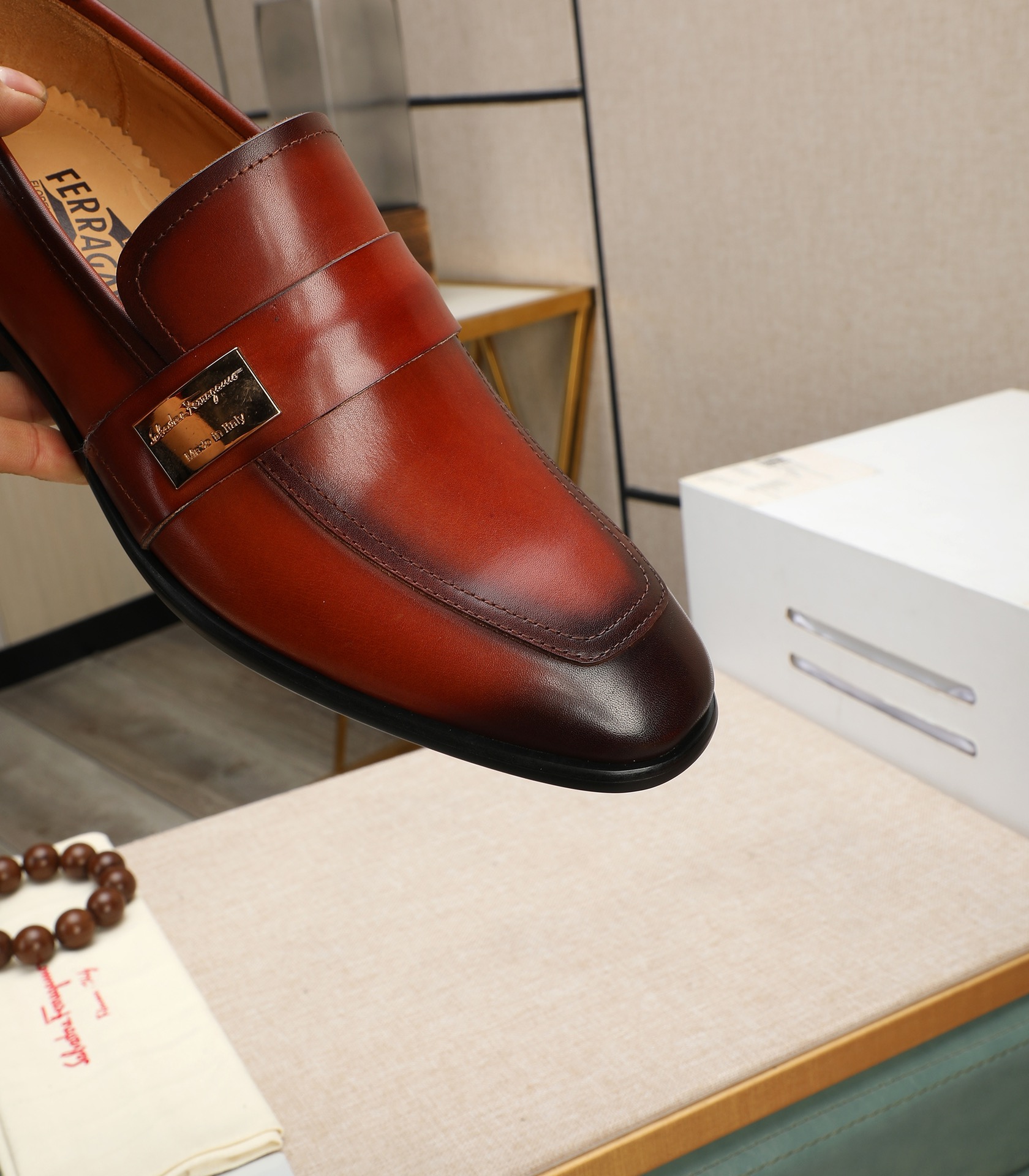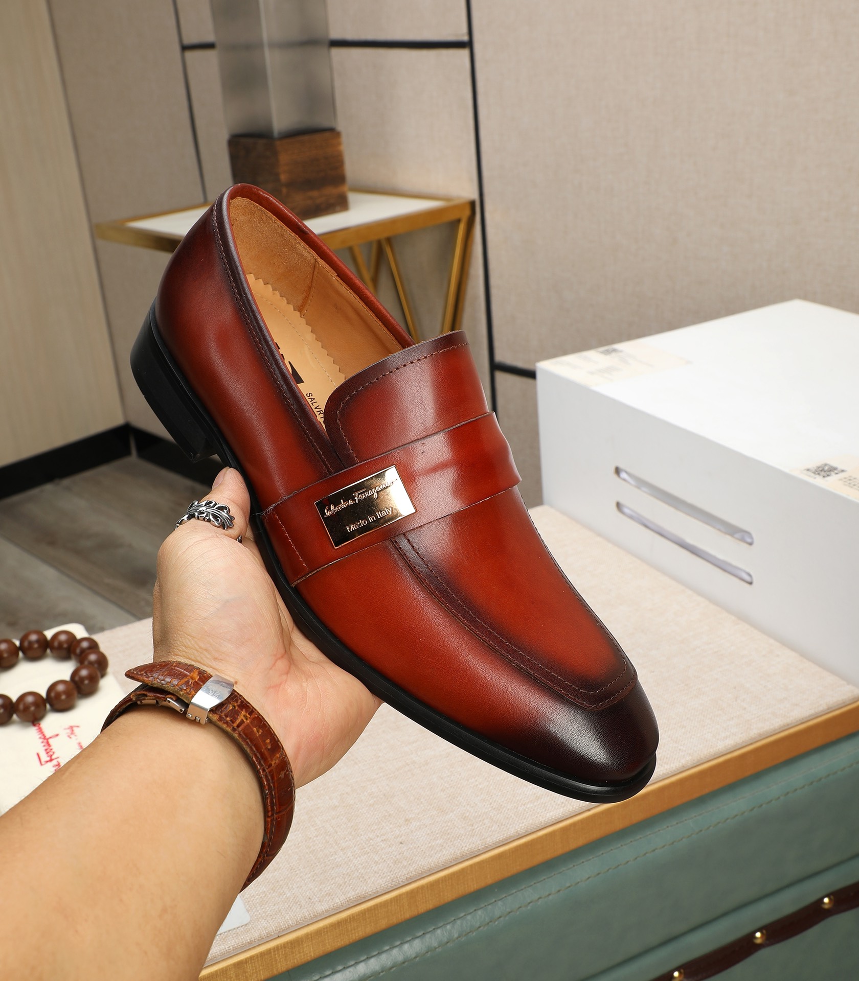 This shoes is AAAAA 1:1 quality (superb). Materials used are identical to the original ones. Salvatore Ferragamo trademark marks are indistinguishable to the authentic. Photos take by actual shoes, what you receive will be 100% same with our photos.