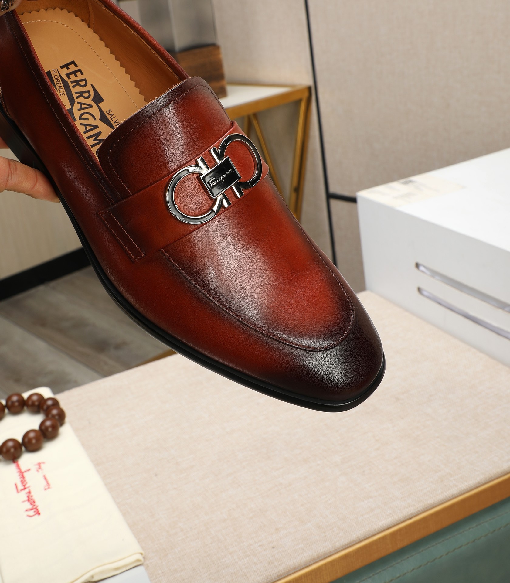 This shoes is AAAAA 1:1 quality (superb). Materials used are identical to the original ones. Salvatore Ferragamo trademark marks are indistinguishable to the authentic. Photos take by actual shoes, what you receive will be 100% same with our photos.