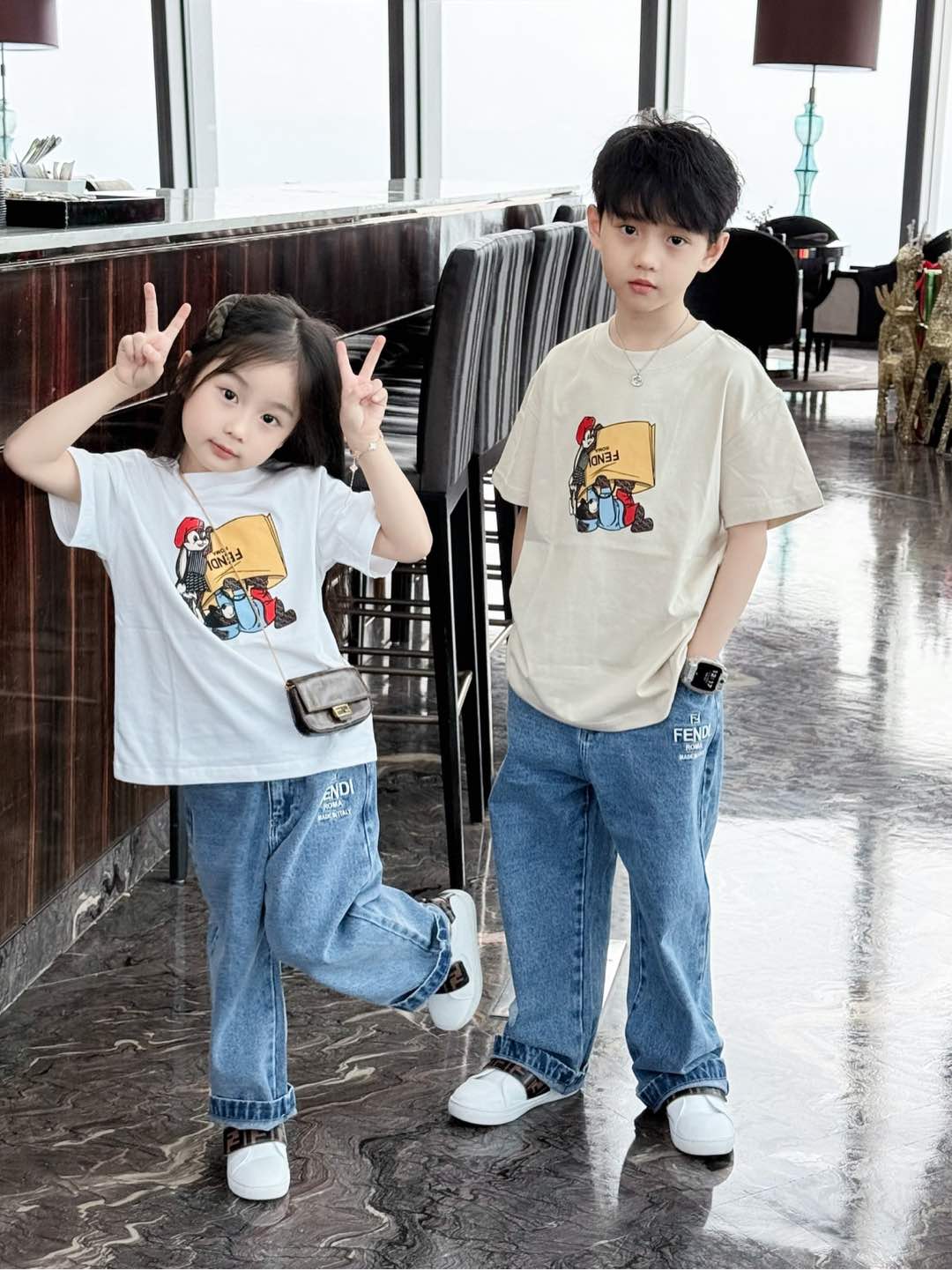 This children's clothes is AAAAA 1:1 quality (superb). Materials used are identical to the original ones. trademark marks are indistinguishable to the authentic. Photos take by actual children's clothes, what you receive will be 100% same with our photos.