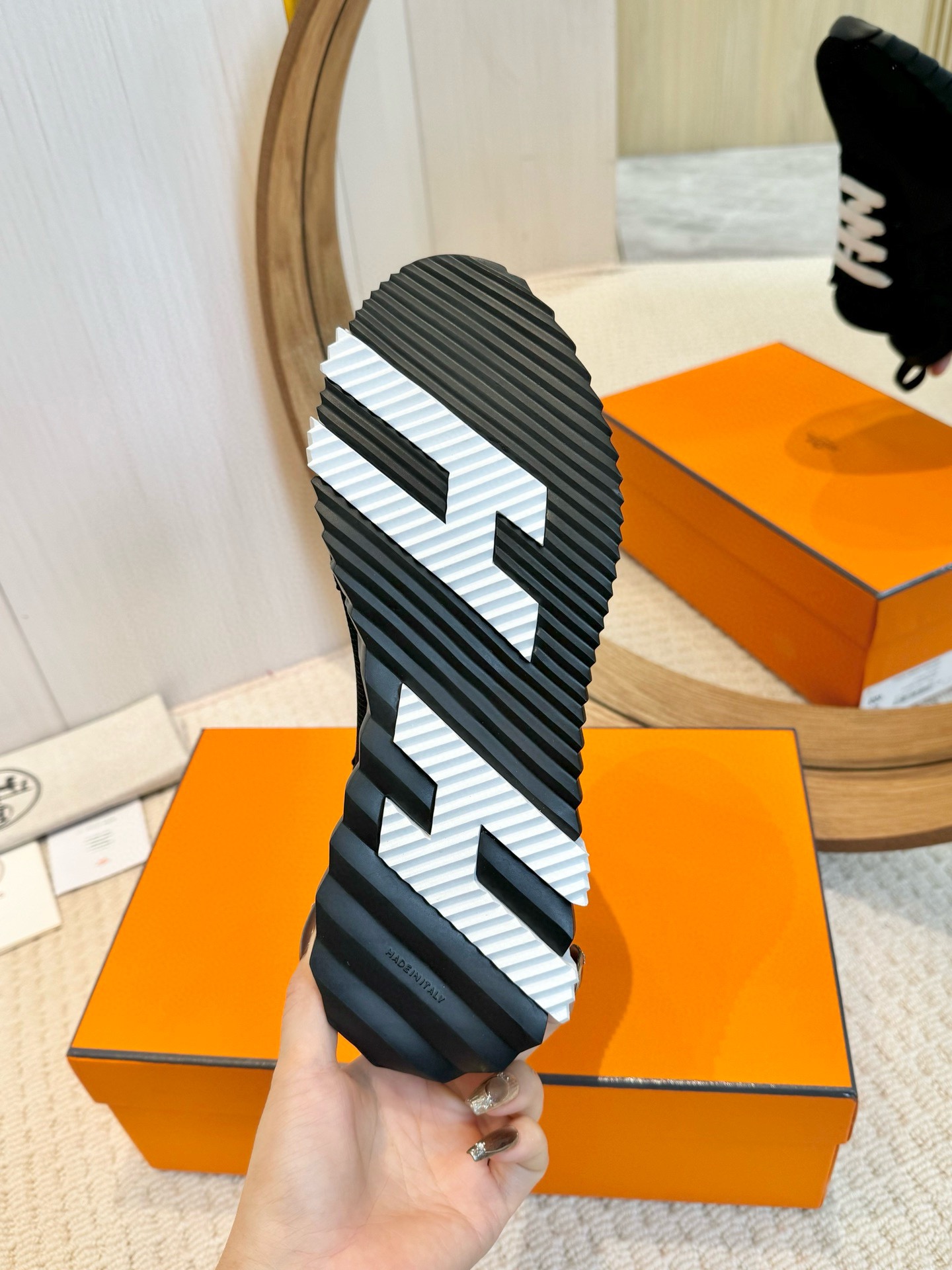 This shoes is AAAAA 1:1 quality (superb). Materials used are identical to the original ones. Hermes trademark marks are indistinguishable to the authentic. Photos take by actual shoes, what you receive will be 100% same with our photos.