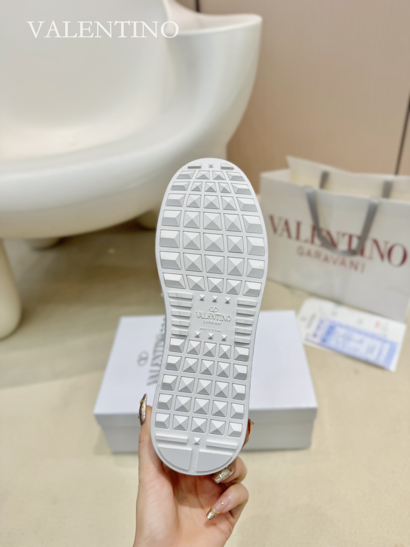 This shoes is AAAAA 1:1 quality (superb). Materials used are identical to the original ones. Valentino trademark marks are indistinguishable to the authentic. Photos take by actual shoes, what you receive will be 100% same with our photos.