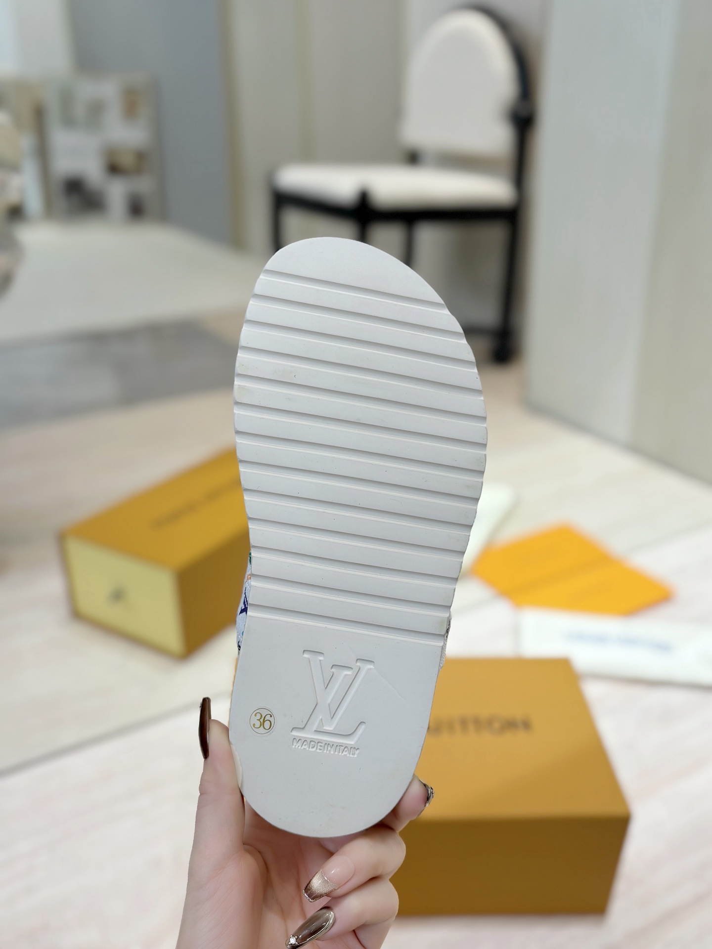This shoes is AAAAA 1:1 quality (superb). Materials used are identical to the original ones. Louis Vuitton trademark marks are indistinguishable to the authentic. Photos take by actual shoes, what you receive will be 100% same with our photos.