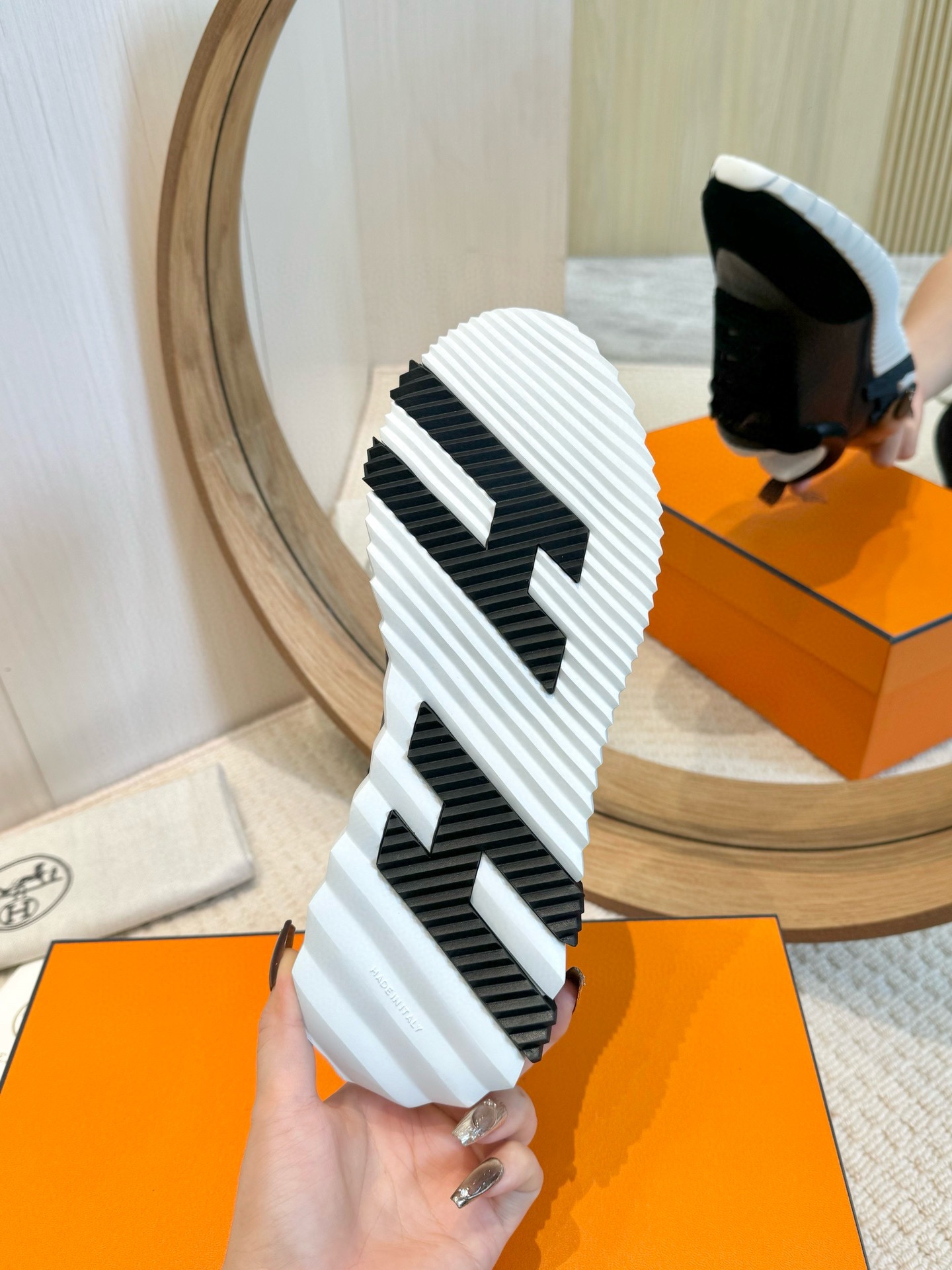 This shoes is AAAAA 1:1 quality (superb). Materials used are identical to the original ones. Hermes trademark marks are indistinguishable to the authentic. Photos take by actual shoes, what you receive will be 100% same with our photos.