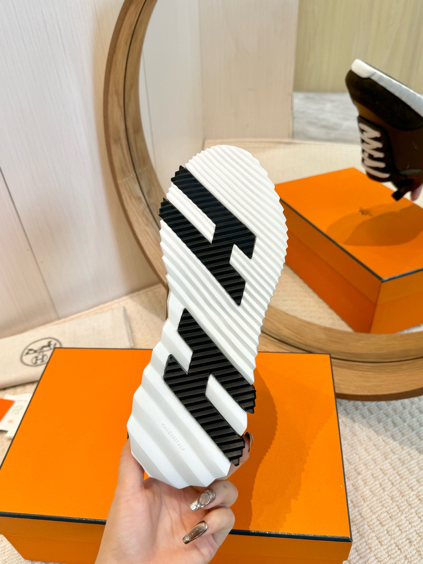 This shoes is AAAAA 1:1 quality (superb). Materials used are identical to the original ones. Hermes trademark marks are indistinguishable to the authentic. Photos take by actual shoes, what you receive will be 100% same with our photos.