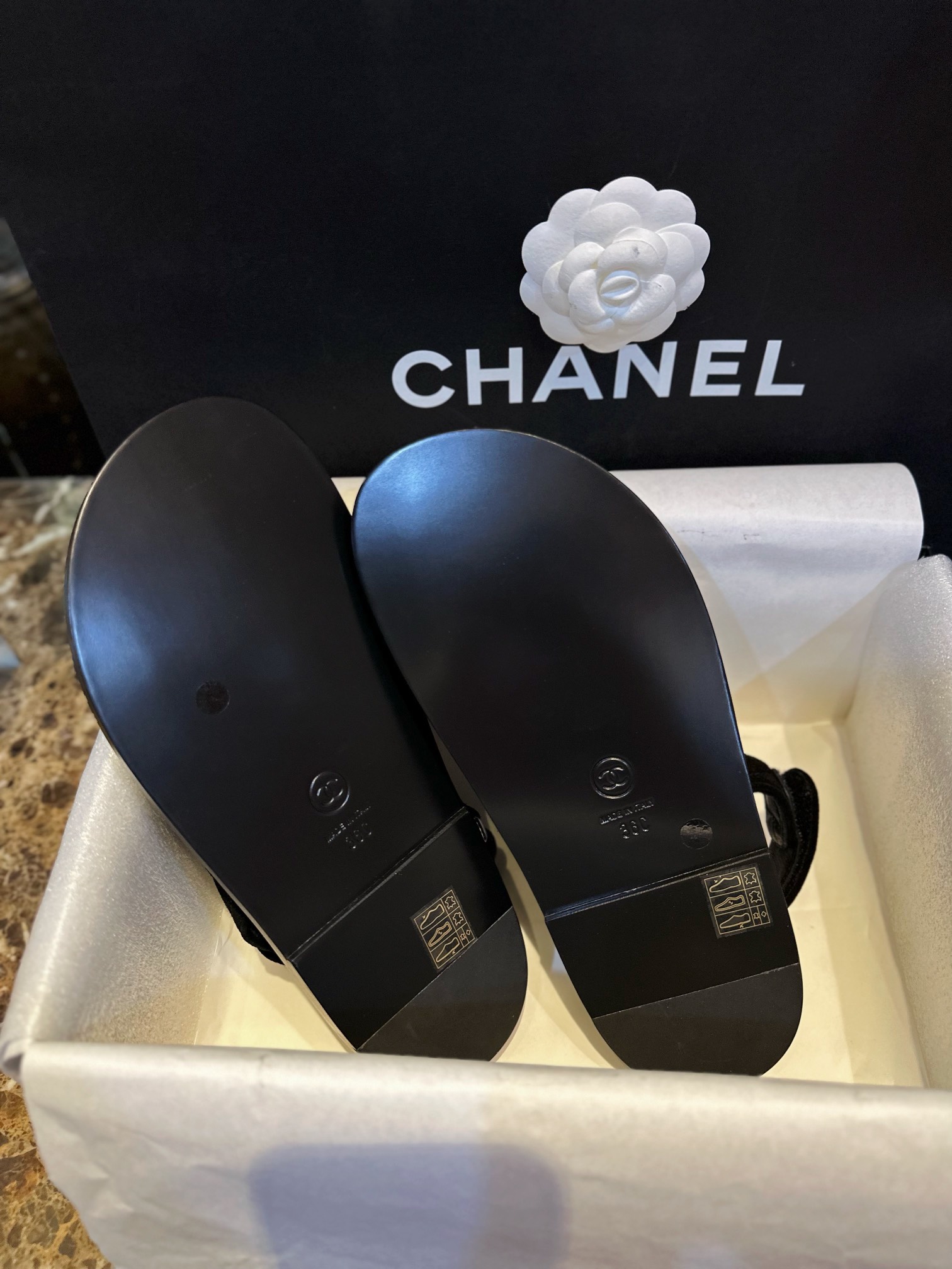 This shoes is AAAAA 1:1 quality (superb). Materials used are identical to the original ones. Chanel trademark marks are indistinguishable to the authentic. Photos take by actual shoes, what you receive will be 100% same with our photos.