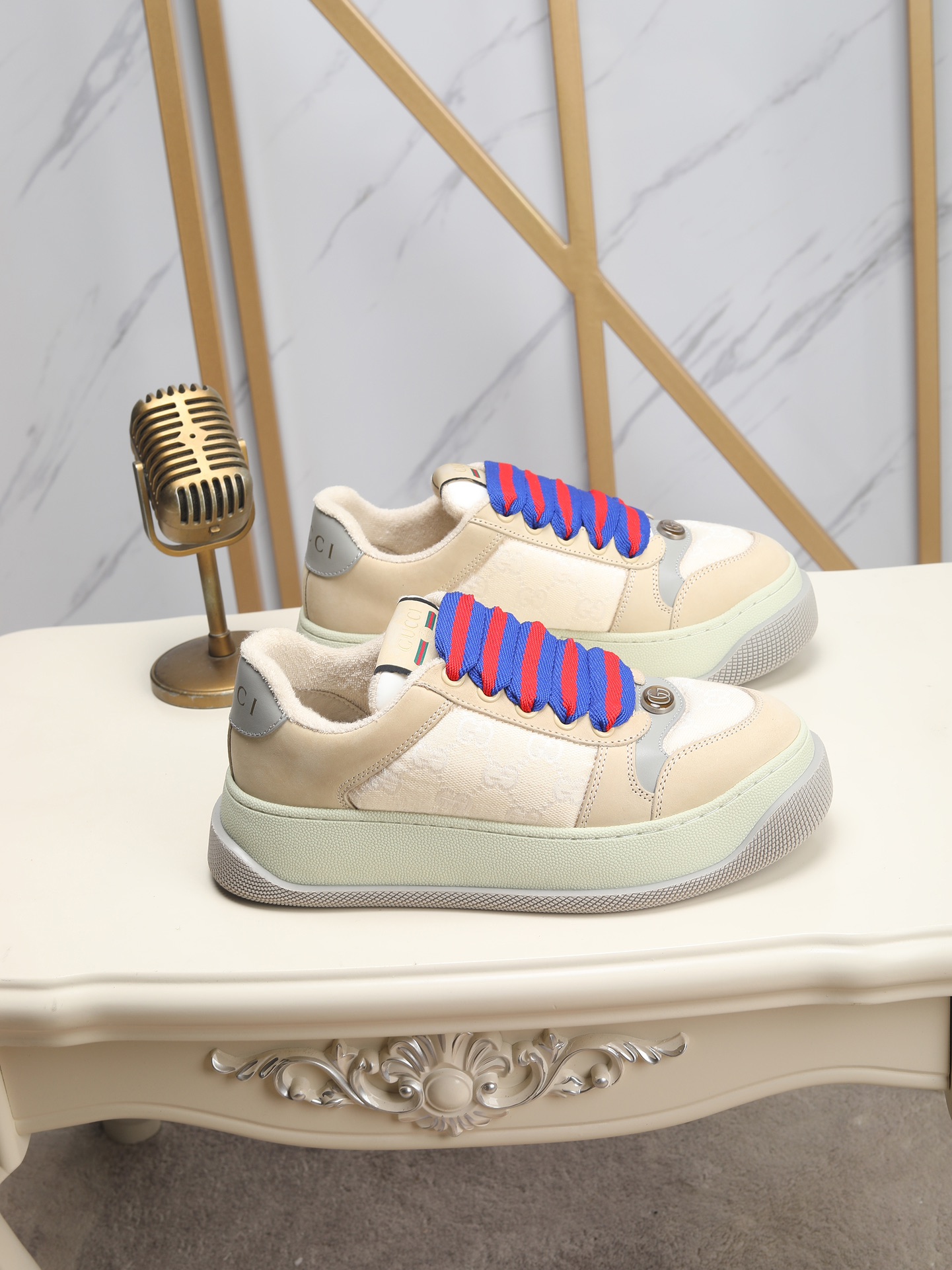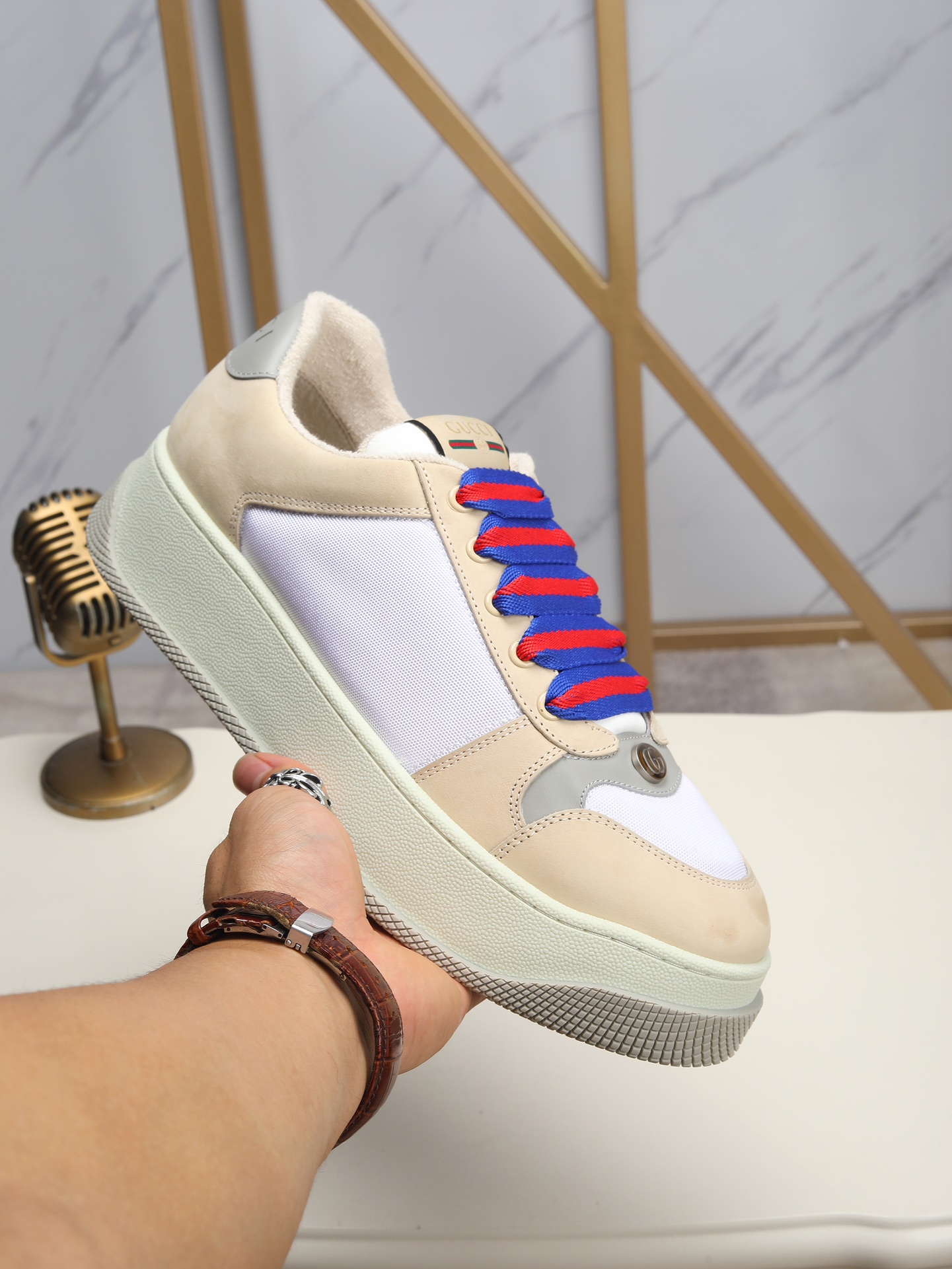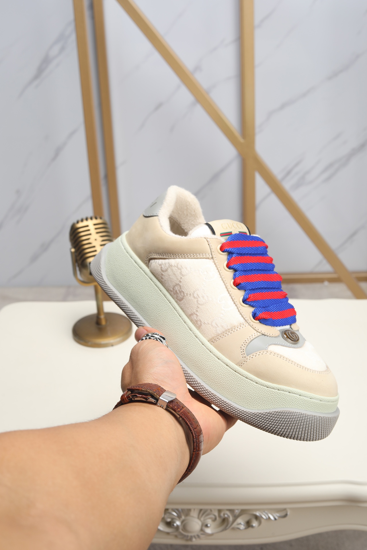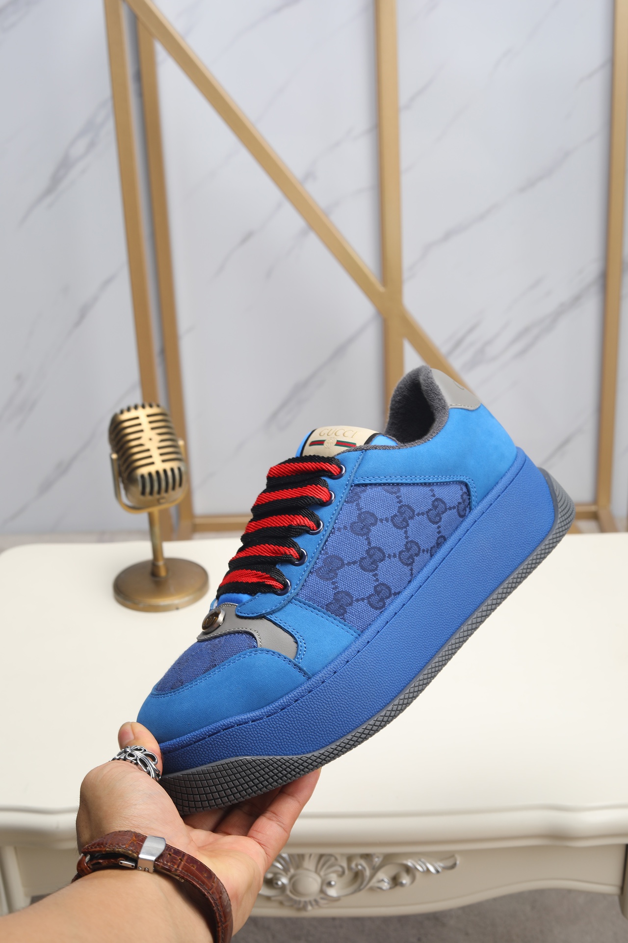This shoes is AAAAA 1:1 quality (superb). Materials used are identical to the original ones. Gucci trademark marks are indistinguishable to the authentic. Photos take by actual shoes, what you receive will be 100% same with our photos.