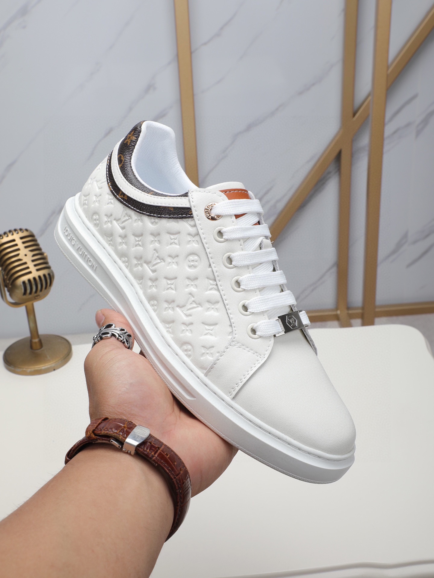 This shoes is AAAAA 1:1 quality (superb). Materials used are identical to the original ones. Louis Vuitton trademark marks are indistinguishable to the authentic. Photos take by actual shoes, what you receive will be 100% same with our photos.
