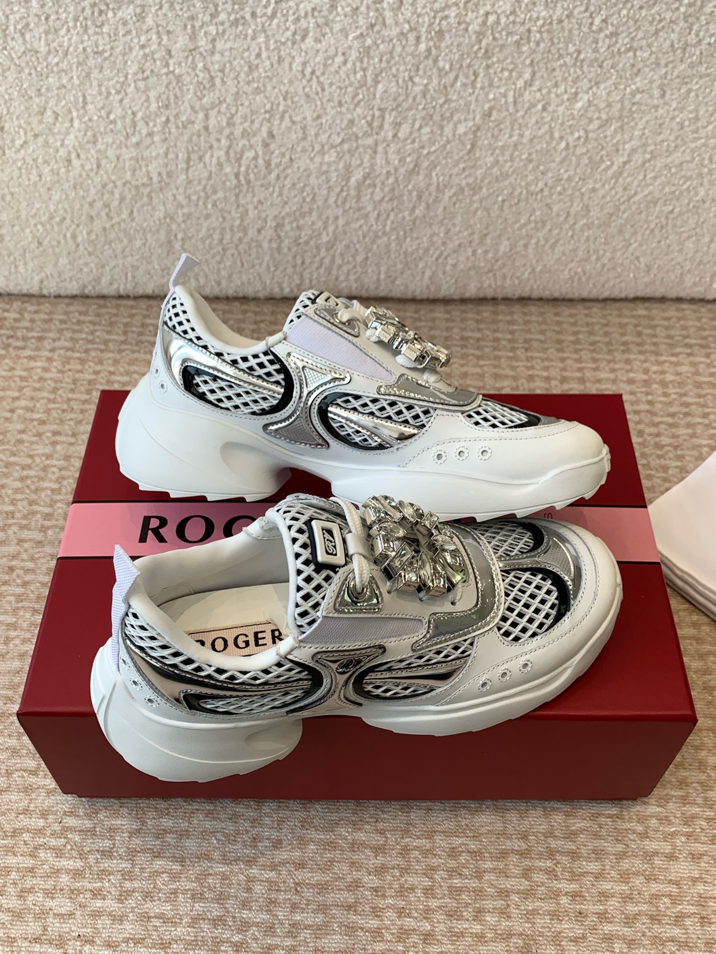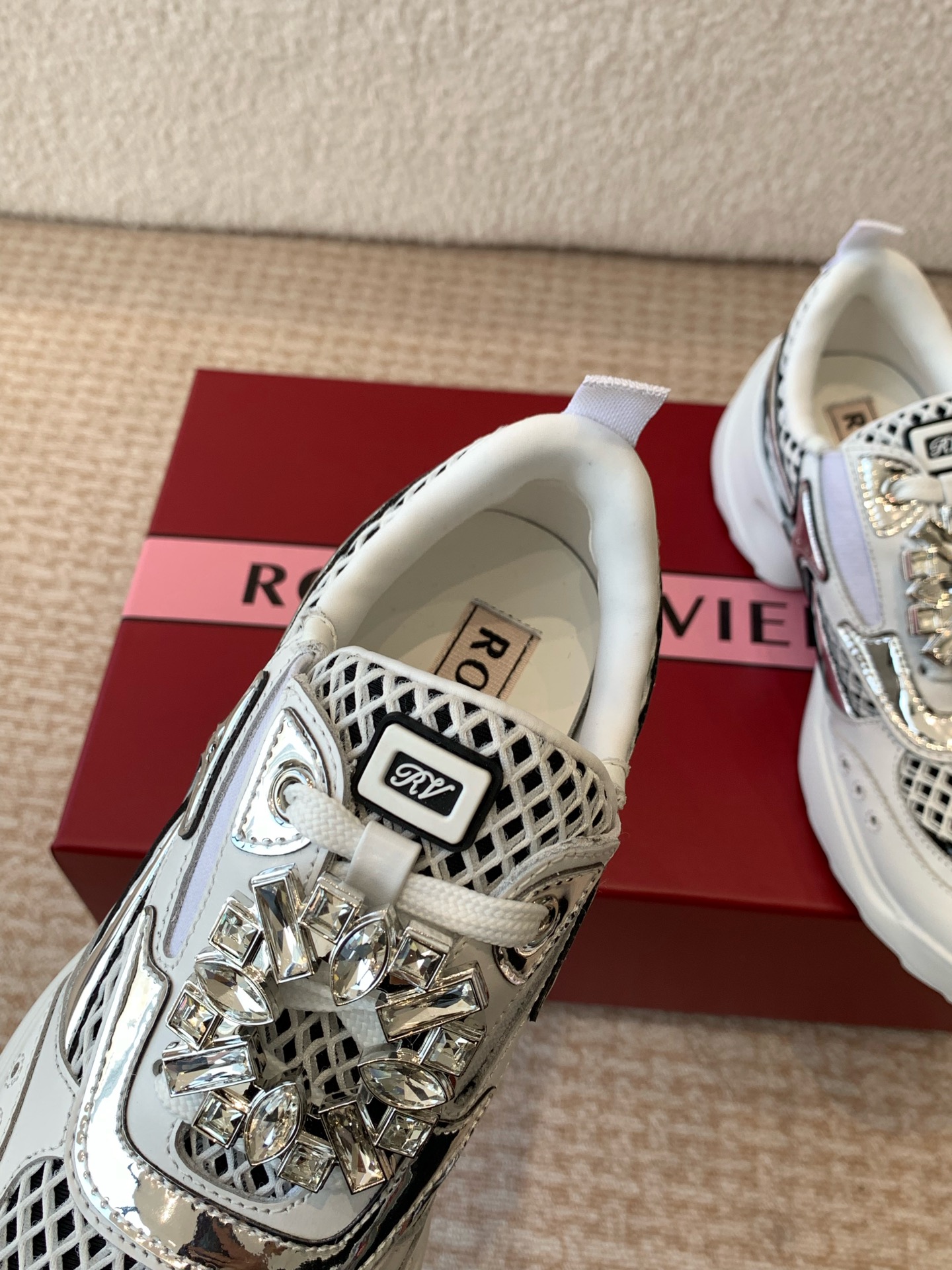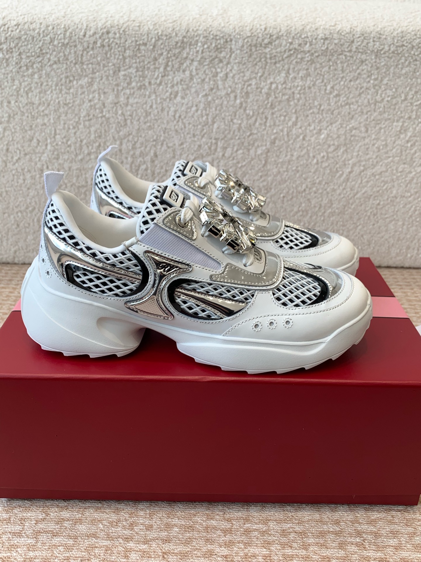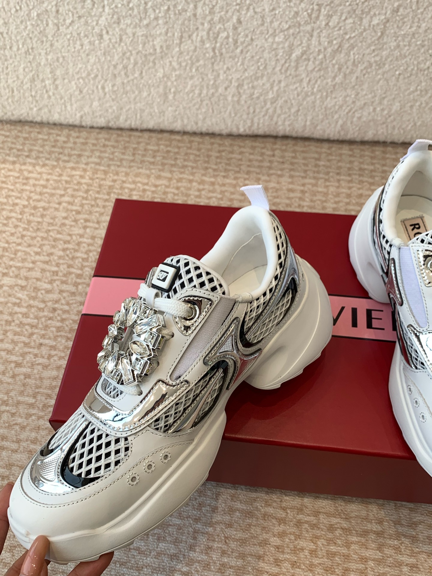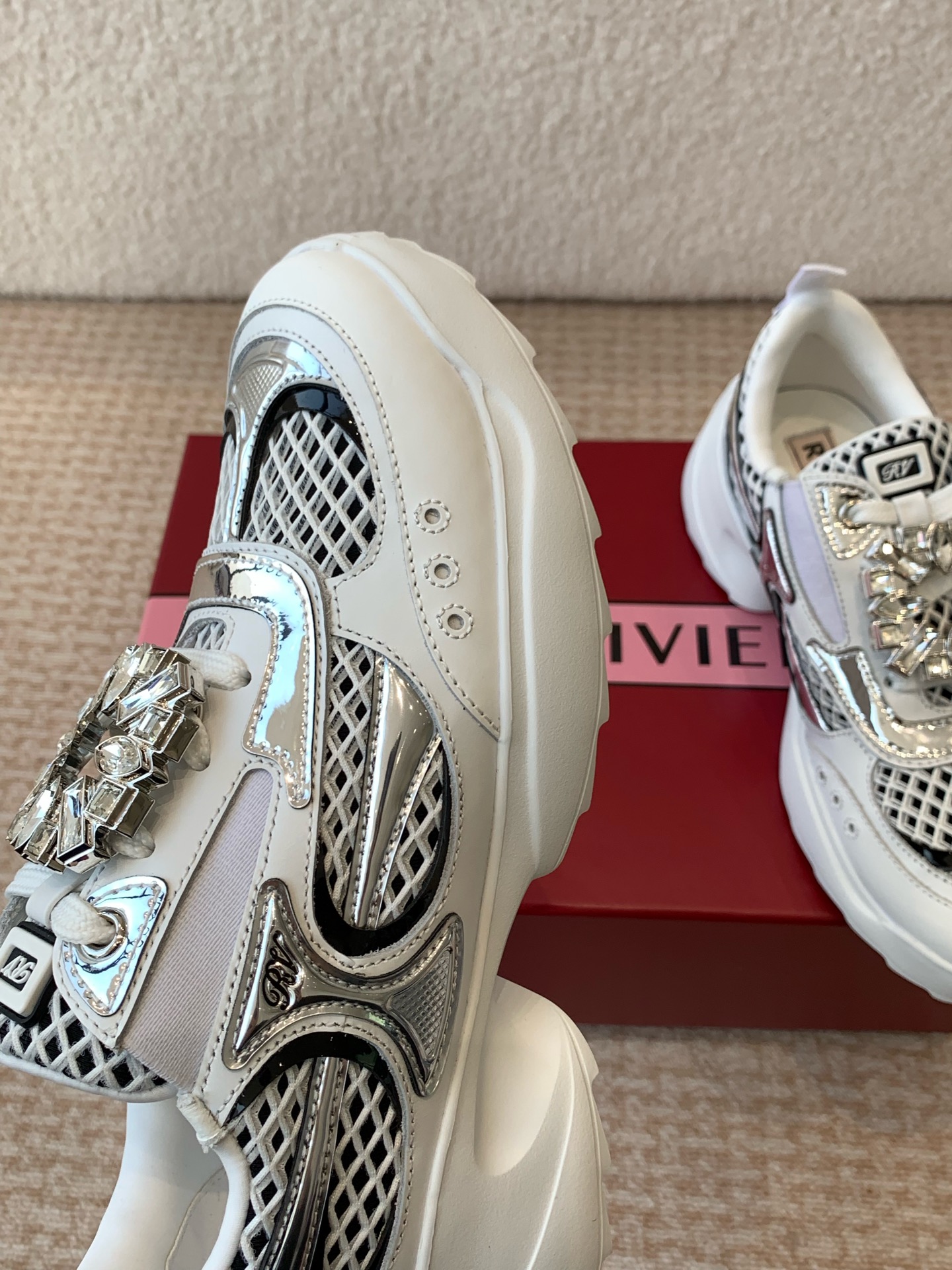 This shoes is AAAAA 1:1 quality (superb). Materials used are identical to the original ones. Roger Vivier trademark marks are indistinguishable to the authentic. Photos take by actual shoes, what you receive will be 100% same with our photos.