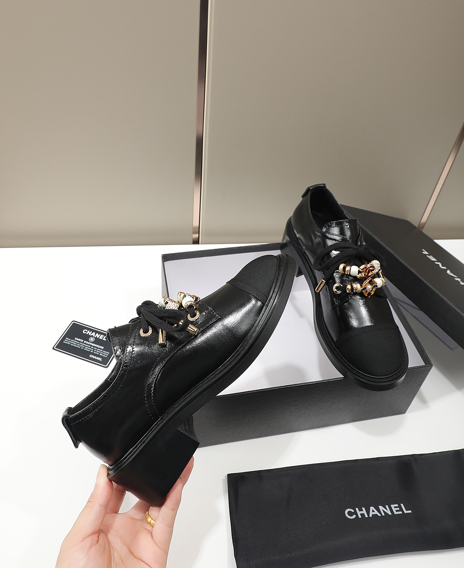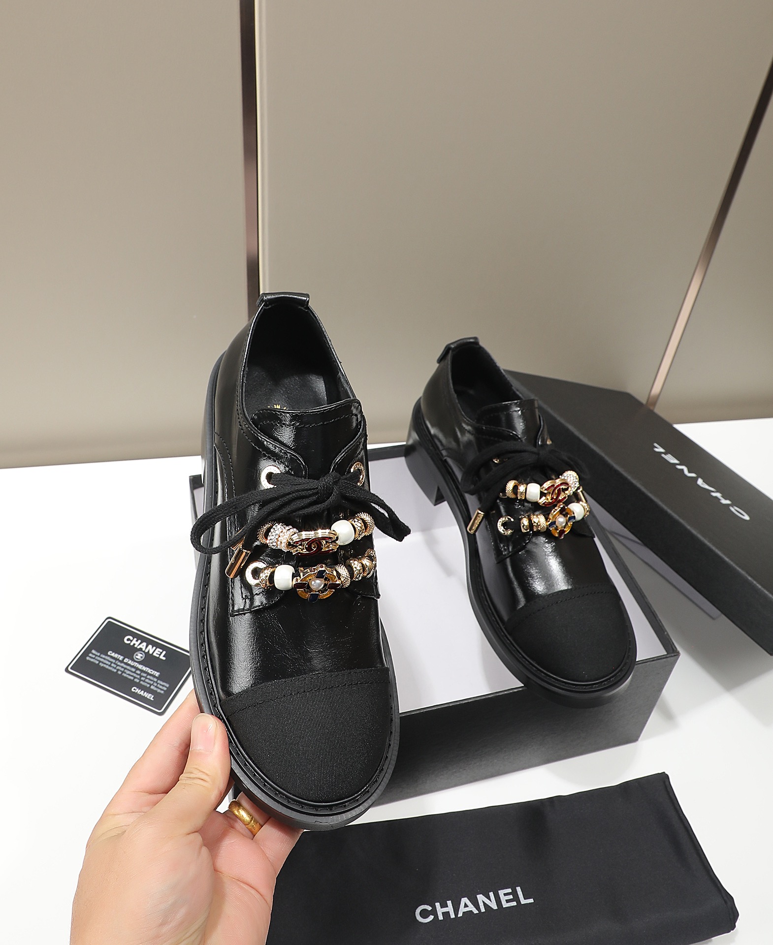 This shoes is AAAAA 1:1 quality (superb). Materials used are identical to the original ones. Chanel trademark marks are indistinguishable to the authentic. Photos take by actual shoes, what you receive will be 100% same with our photos.
