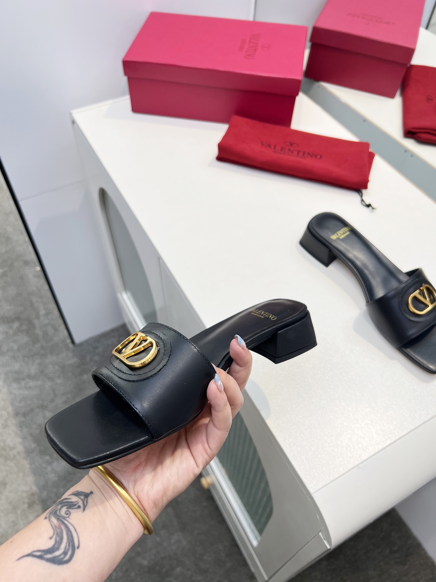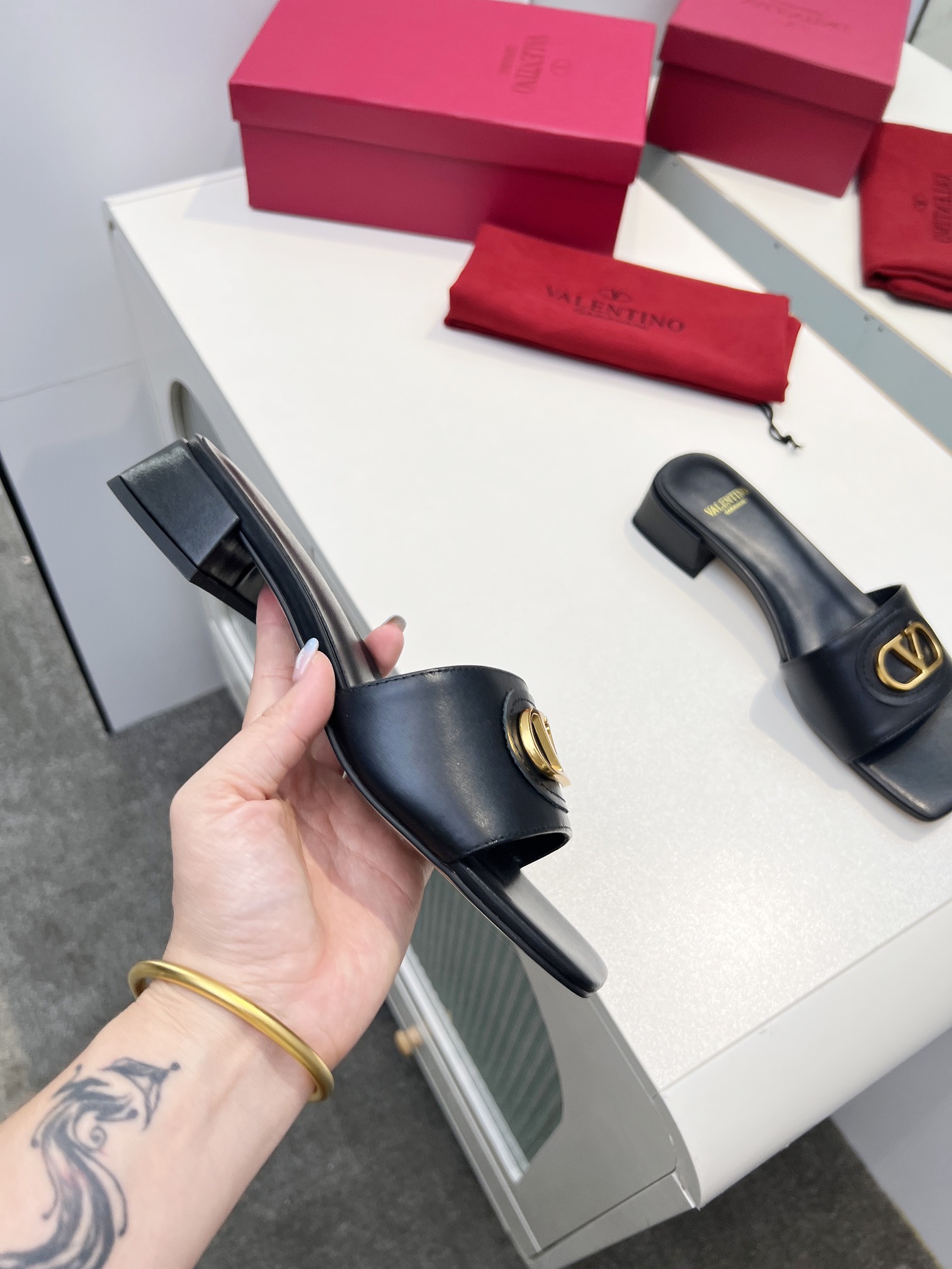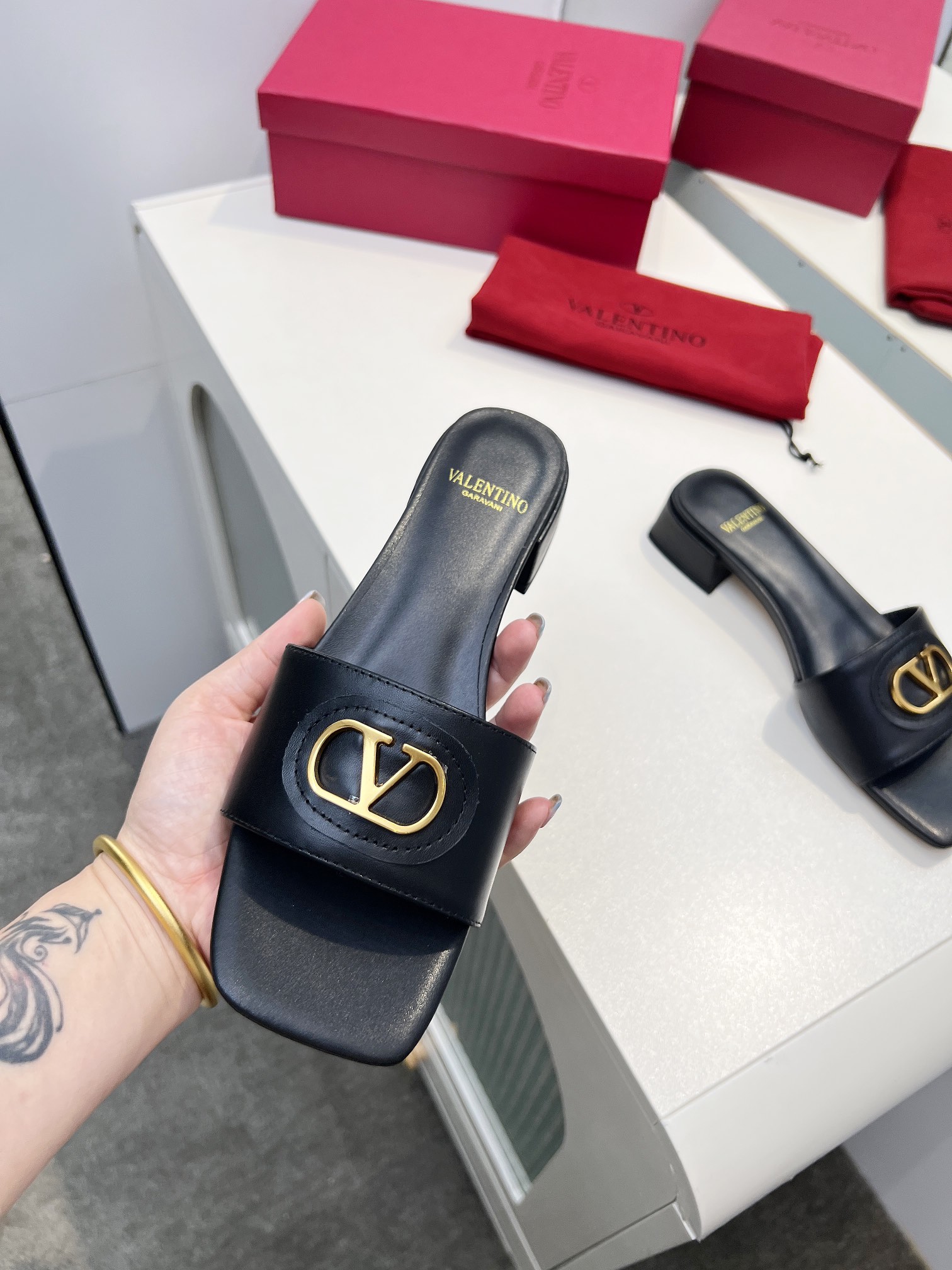 This shoes is AAAAA 1:1 quality (superb). Materials used are identical to the original ones. Valentino trademark marks are indistinguishable to the authentic. Photos take by actual shoes, what you receive will be 100% same with our photos.