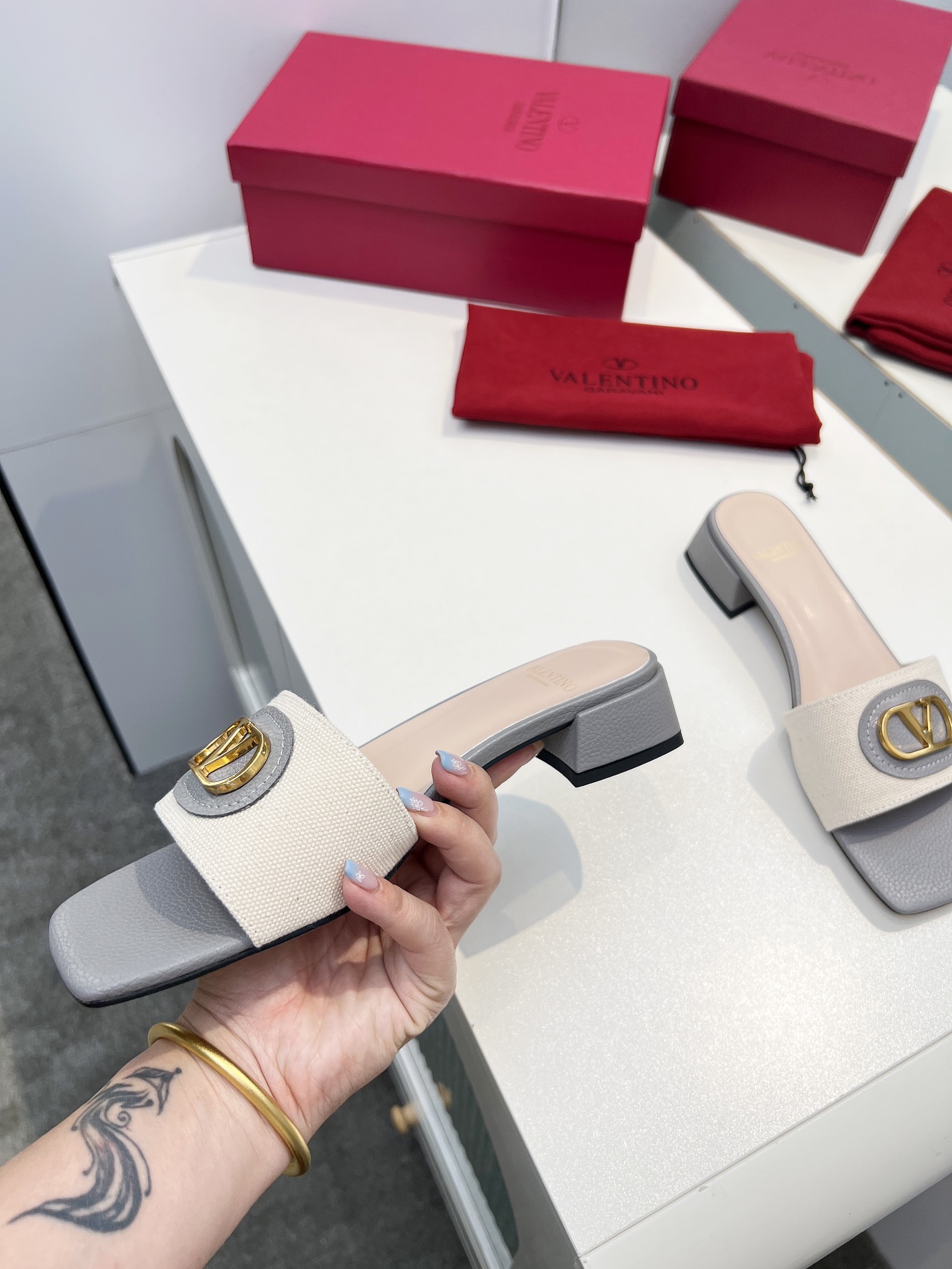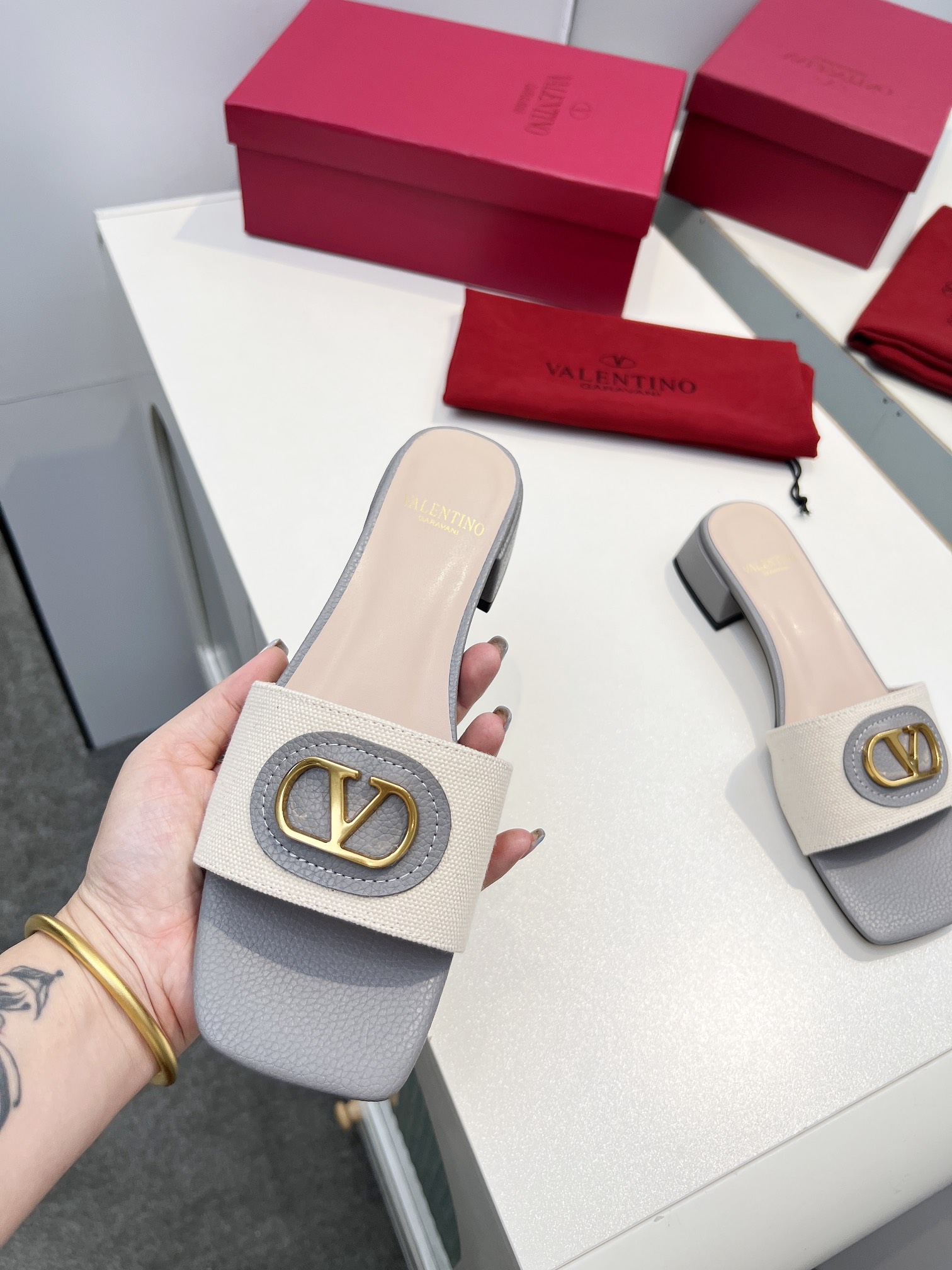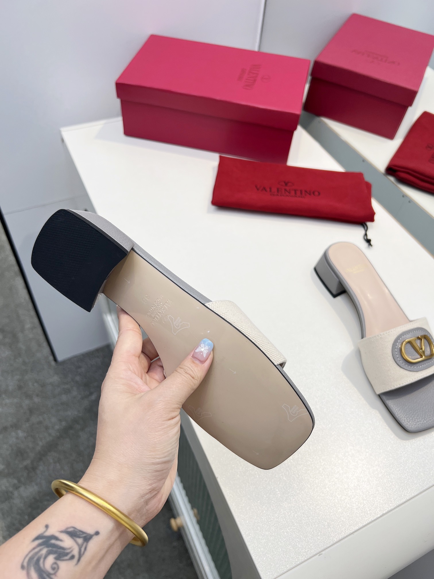 This shoes is AAAAA 1:1 quality (superb). Materials used are identical to the original ones. Valentino trademark marks are indistinguishable to the authentic. Photos take by actual shoes, what you receive will be 100% same with our photos.