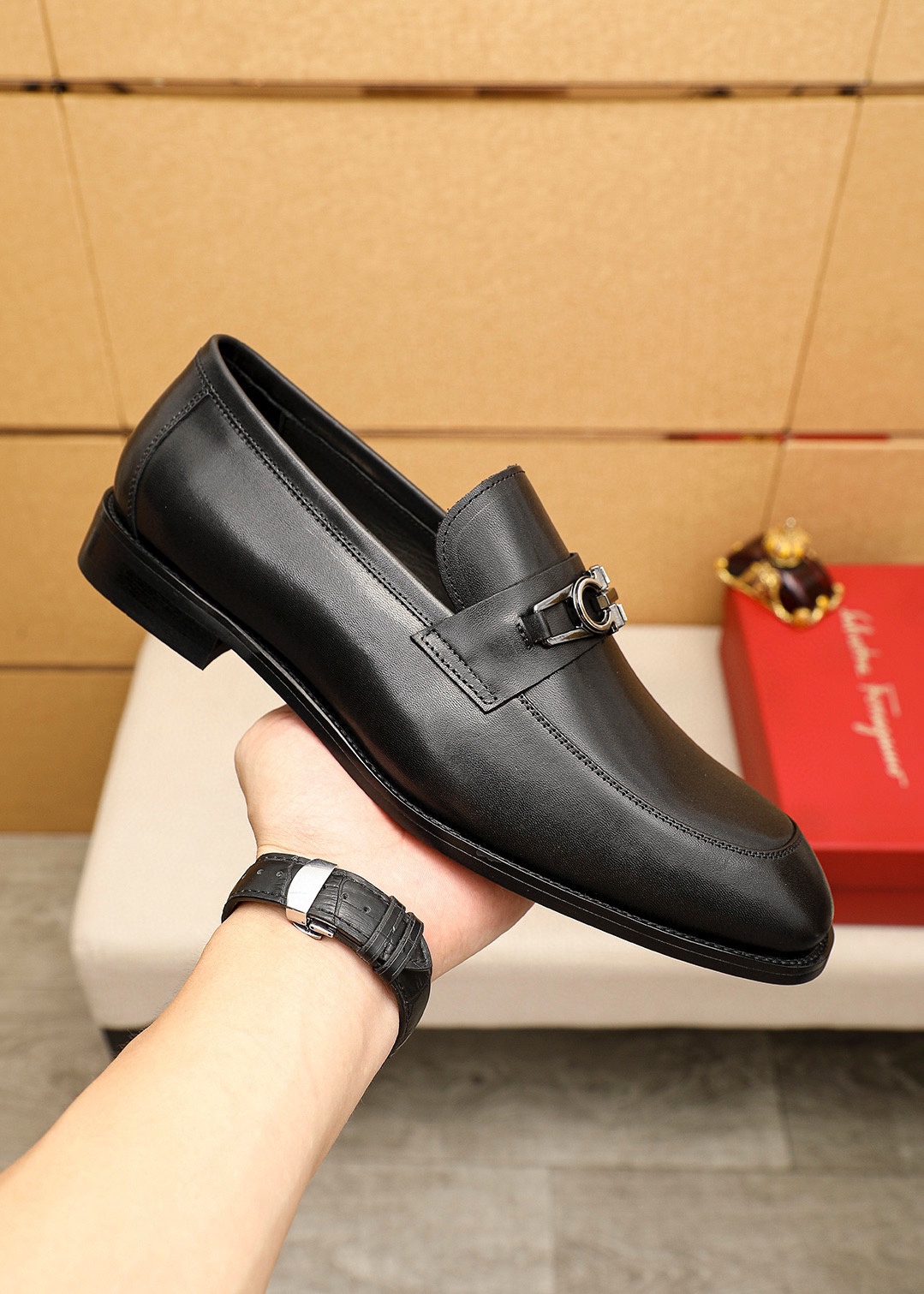 This shoes is AAAAA 1:1 quality (superb). Materials used are identical to the original ones. Salvatore Ferragamo trademark marks are indistinguishable to the authentic. Photos take by actual shoes, what you receive will be 100% same with our photos.