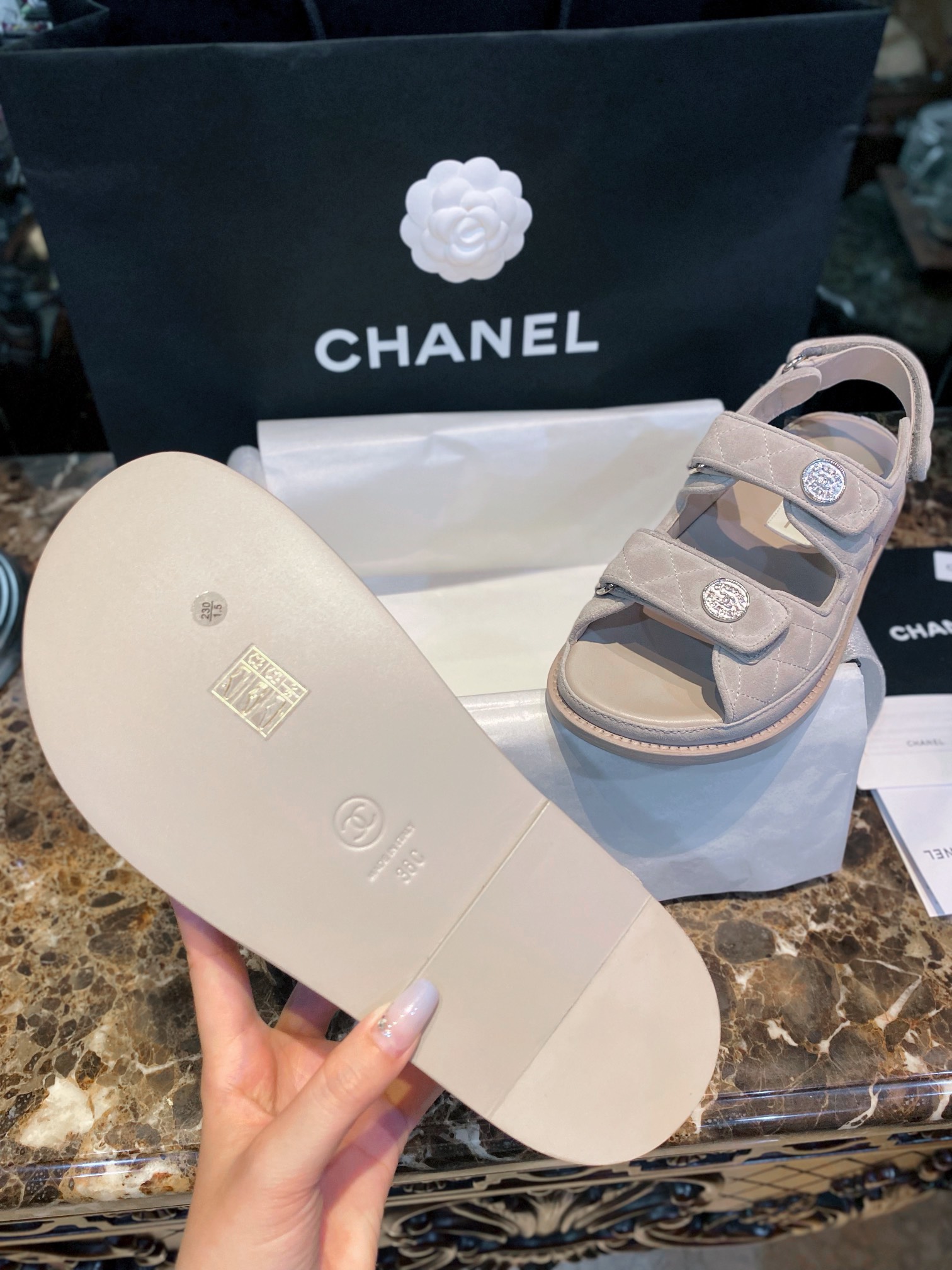 This shoes is AAAAA 1:1 quality (superb). Materials used are identical to the original ones. Chanel trademark marks are indistinguishable to the authentic. Photos take by actual shoes, what you receive will be 100% same with our photos.