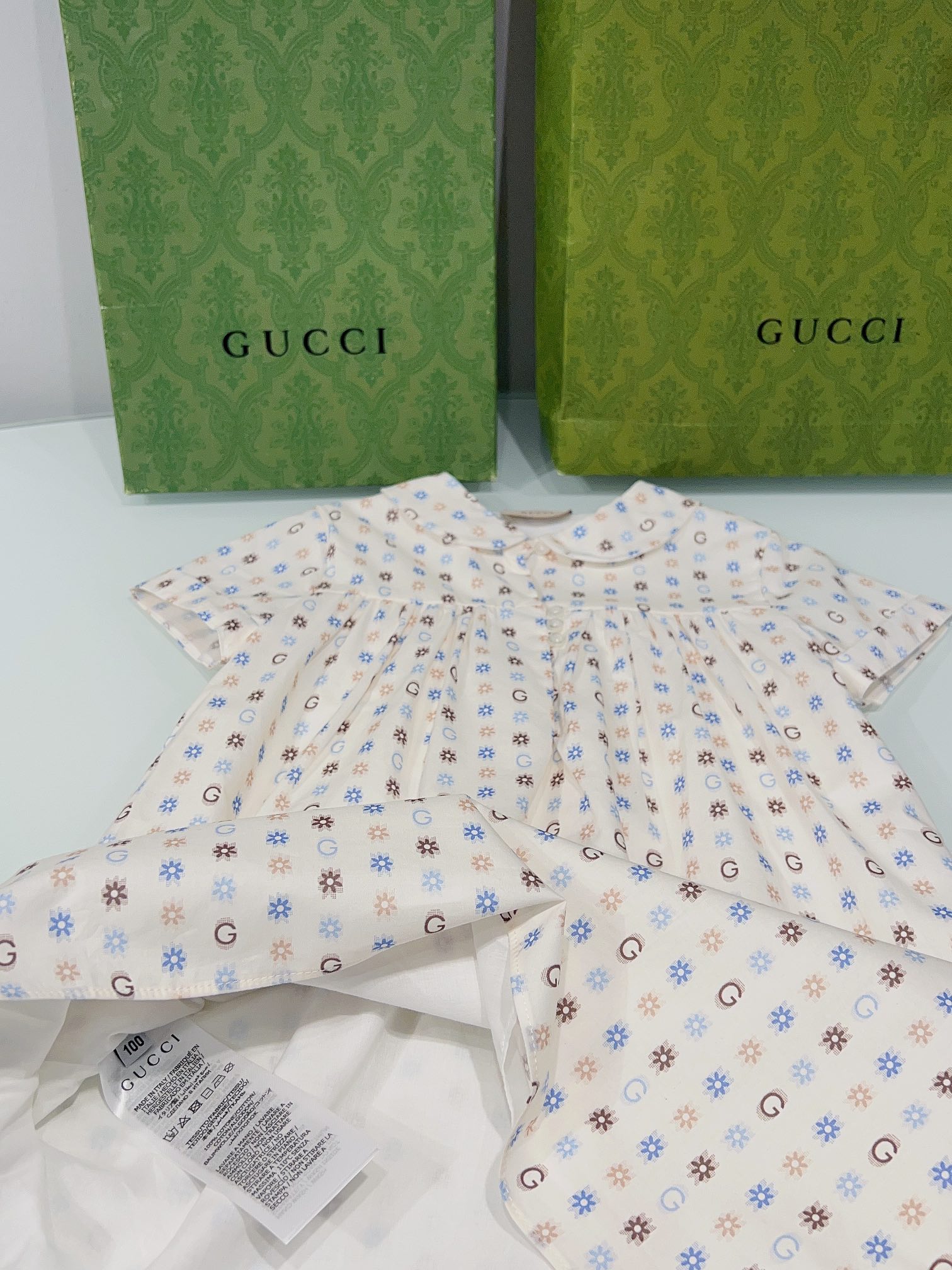 This children's clothes is AAAAA 1:1 quality (superb). Materials used are identical to the original ones. trademark marks are indistinguishable to the authentic. Photos take by actual children's clothes, what you receive will be 100% same with our photos.