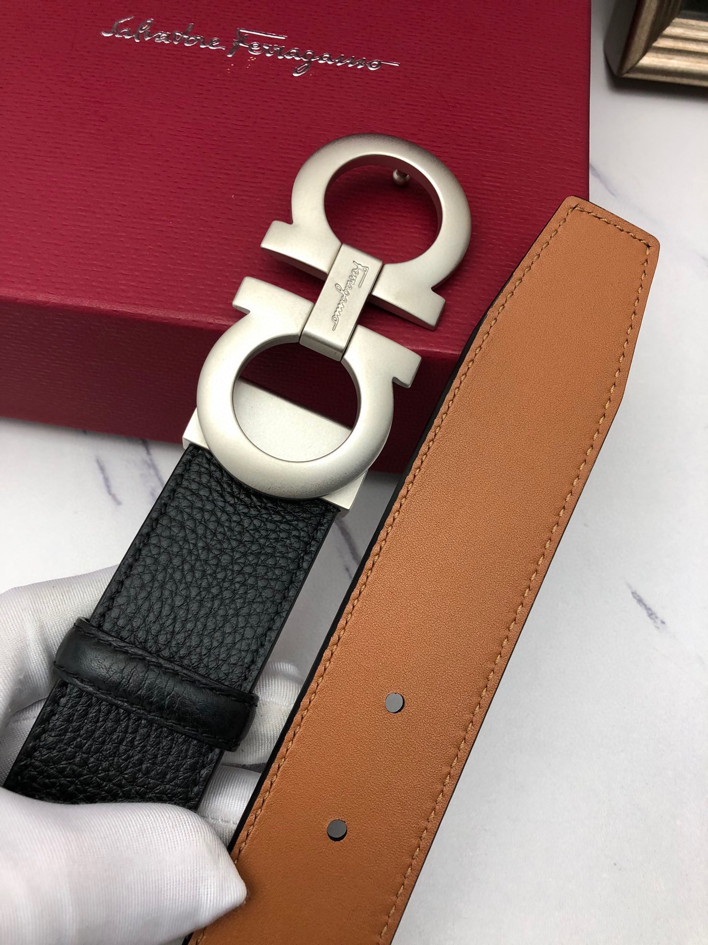 This belt is AAAAA 1:1 quality (superb). Materials used are identical to the original ones. Salvatore Ferragamo trademark marks are indistinguishable to the authentic. Photos take by actual belt, what you receive will be 100% same with our photos.