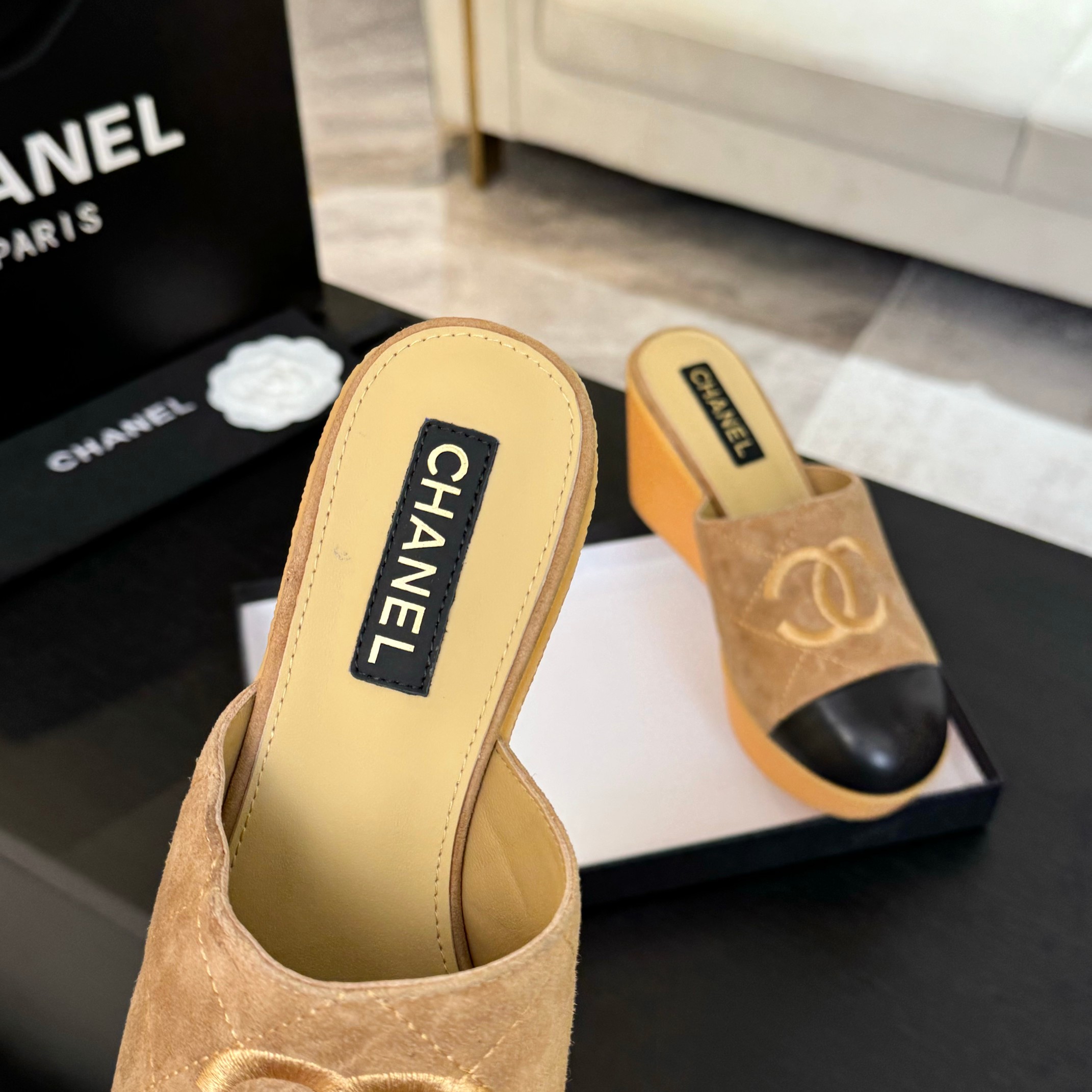 This shoes is AAAAA 1:1 quality (superb). Materials used are identical to the original ones. Chanel trademark marks are indistinguishable to the authentic. Photos take by actual shoes, what you receive will be 100% same with our photos.