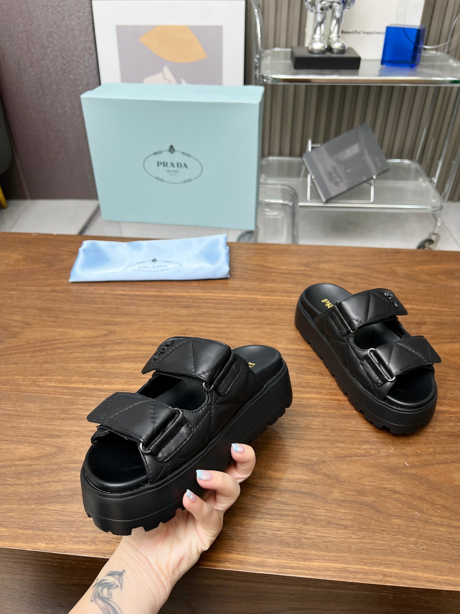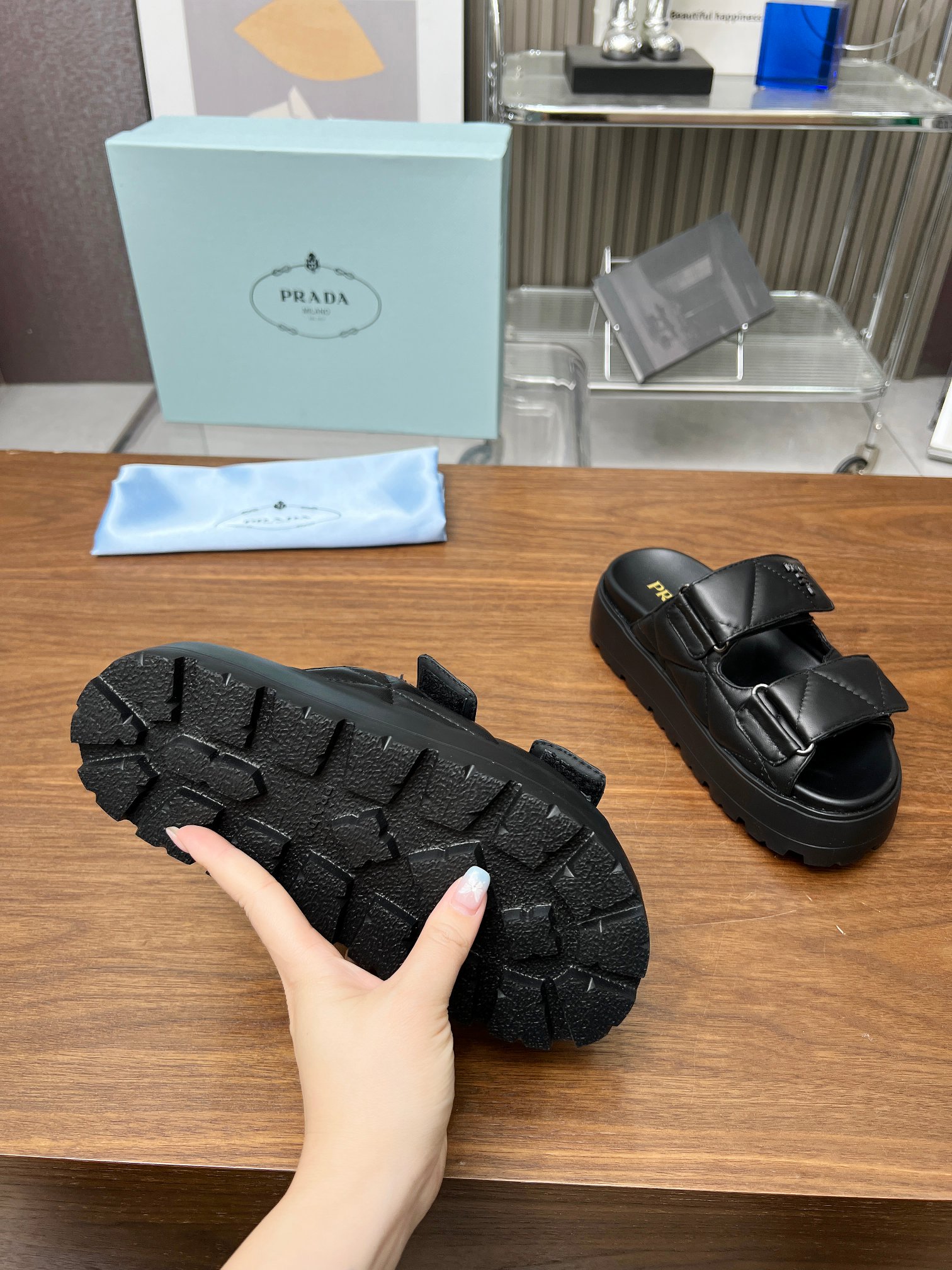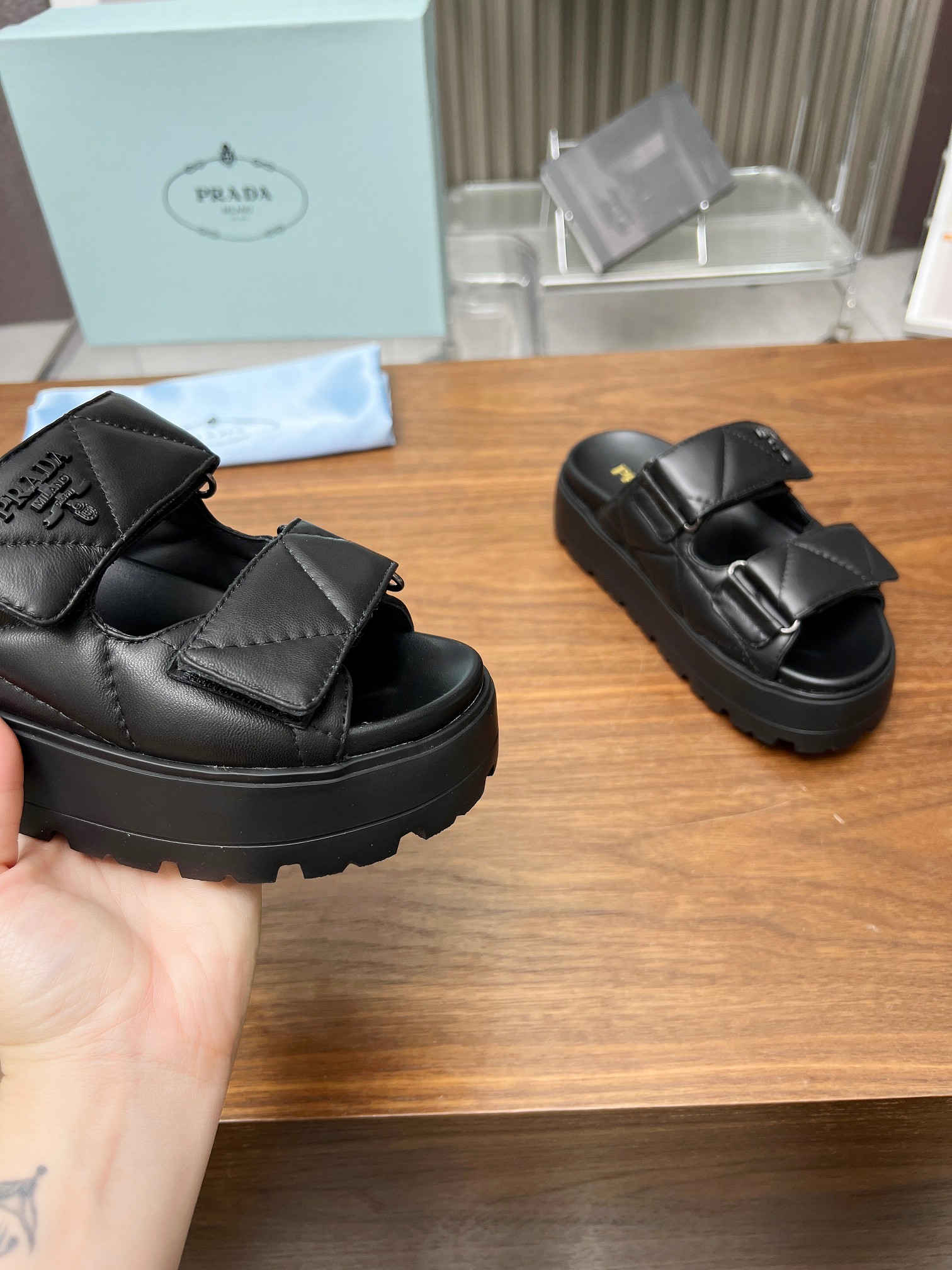 This shoes is AAAAA 1:1 quality (superb). Materials used are identical to the original ones. Prada trademark marks are indistinguishable to the authentic. Photos take by actual shoes, what you receive will be 100% same with our photos.